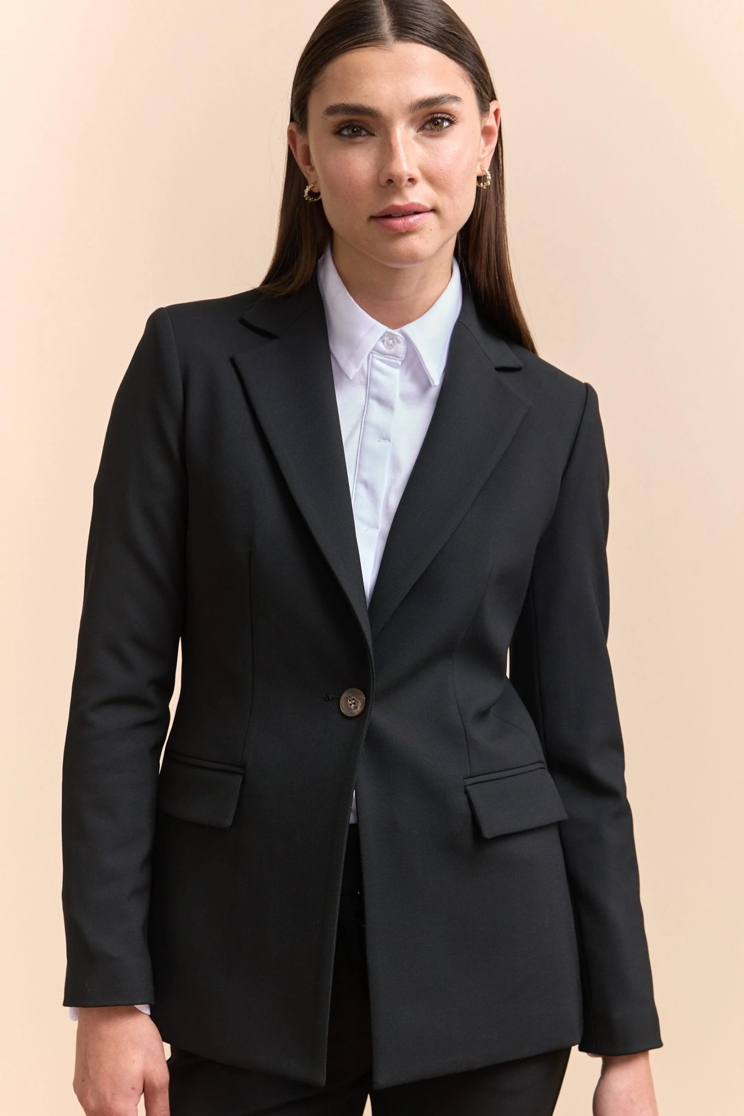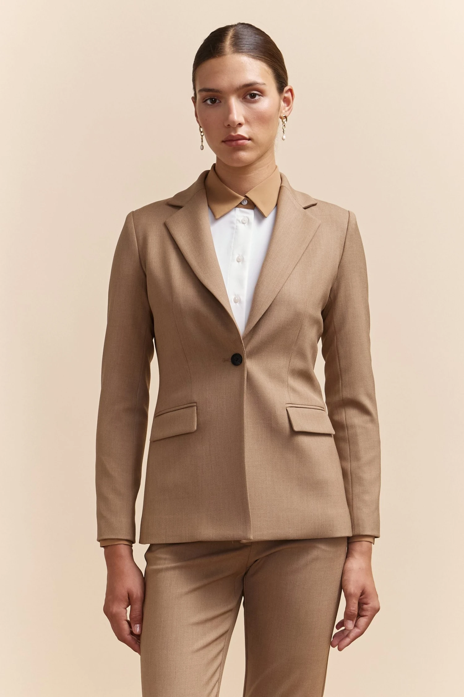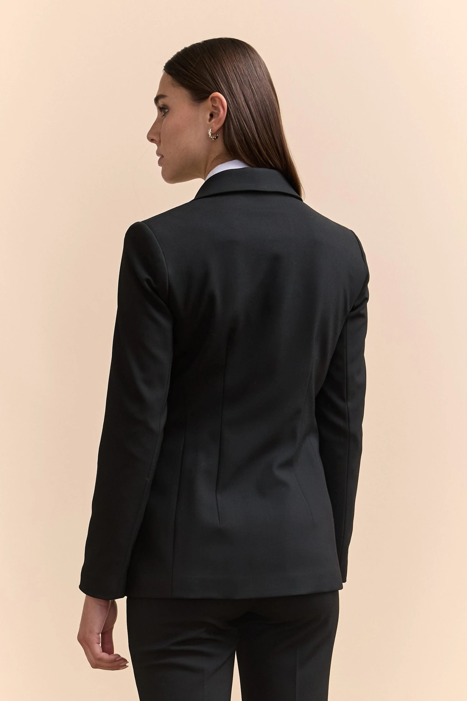 Meet your wardrobe’s new hero: this essential fitted blazer. Tailored to perfection, it exudes confidence in every meet-and-greet. Crafted from premium wool blend, it offers warmth and sophistication for your work-to-evening transitions. Standout with its timeless cut that never goes out of style.