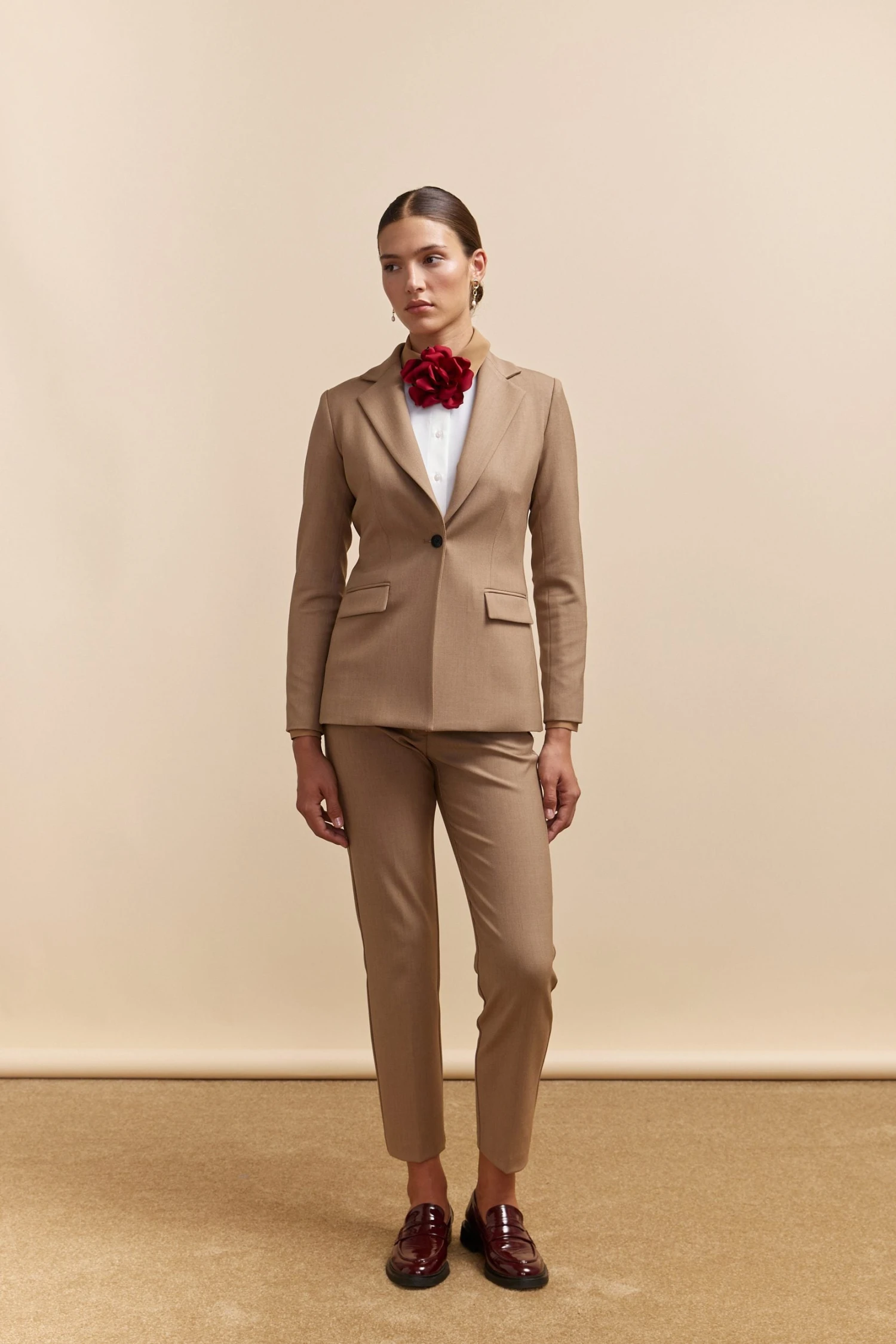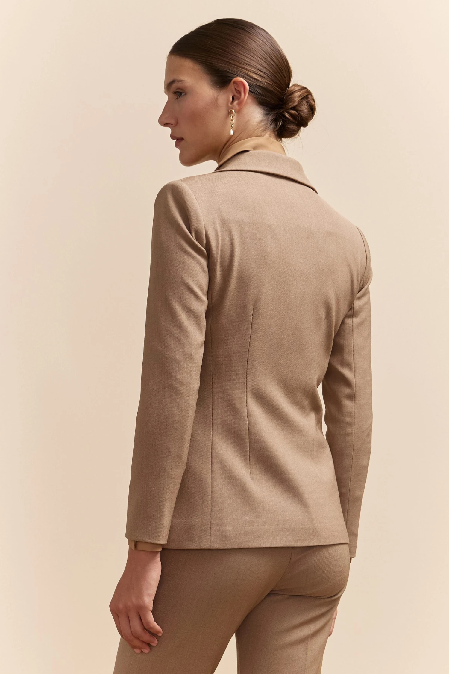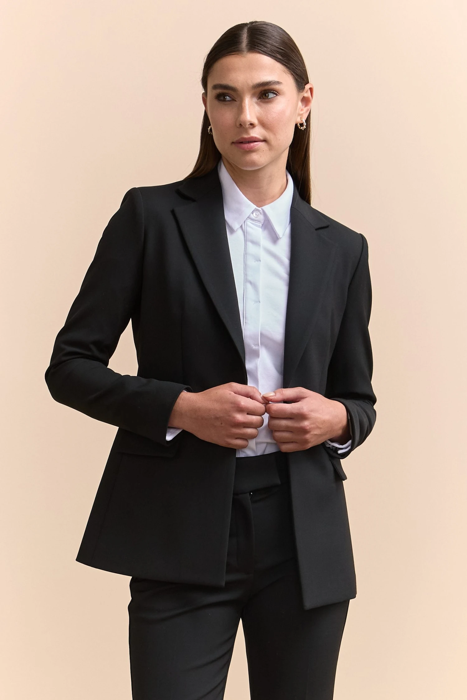 Meet your wardrobe’s new hero: this essential fitted blazer. Tailored to perfection, it exudes confidence in every meet-and-greet. Crafted from premium wool blend, it offers warmth and sophistication for your work-to-evening transitions. Standout with its timeless cut that never goes out of style.