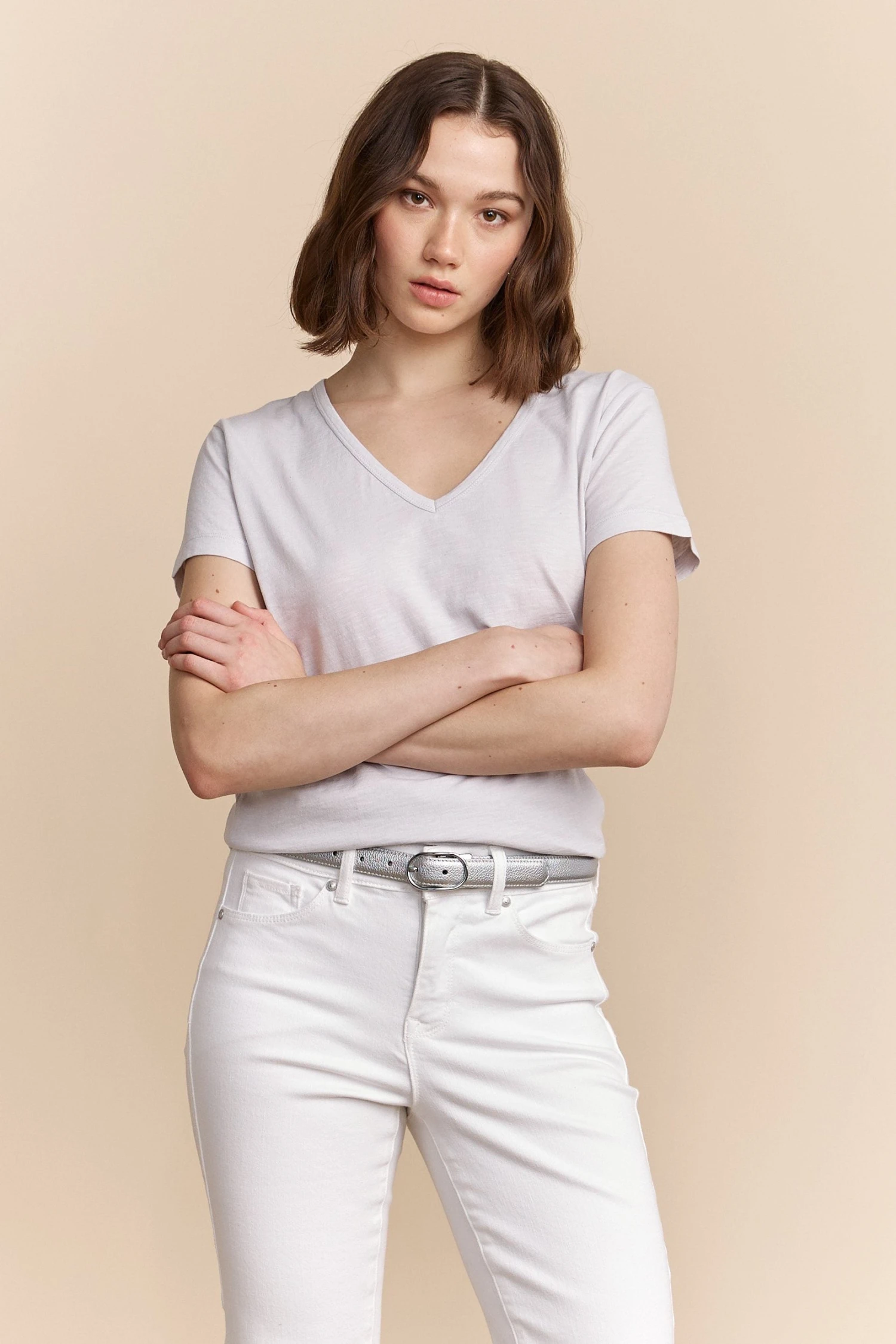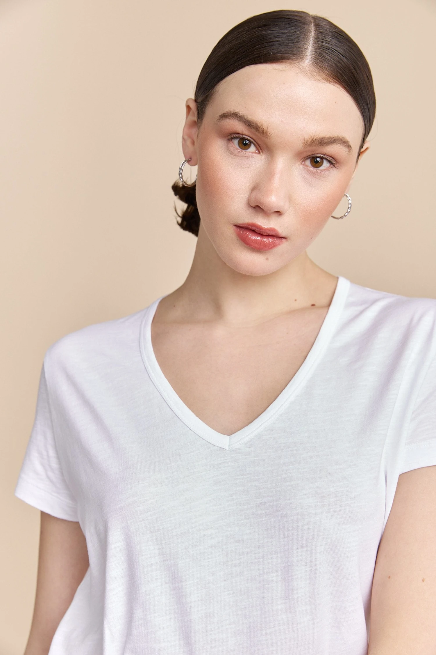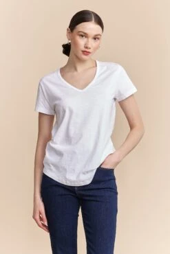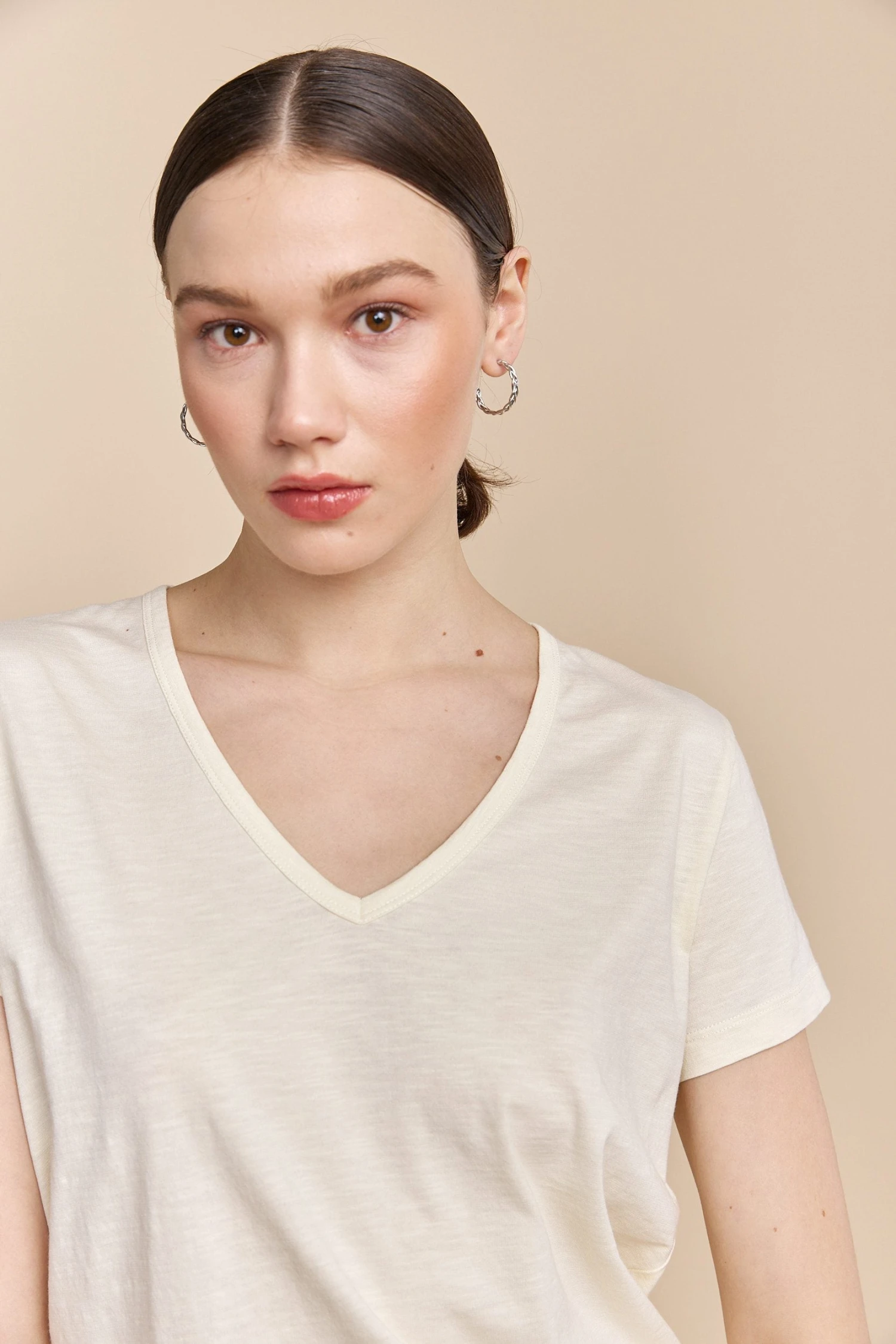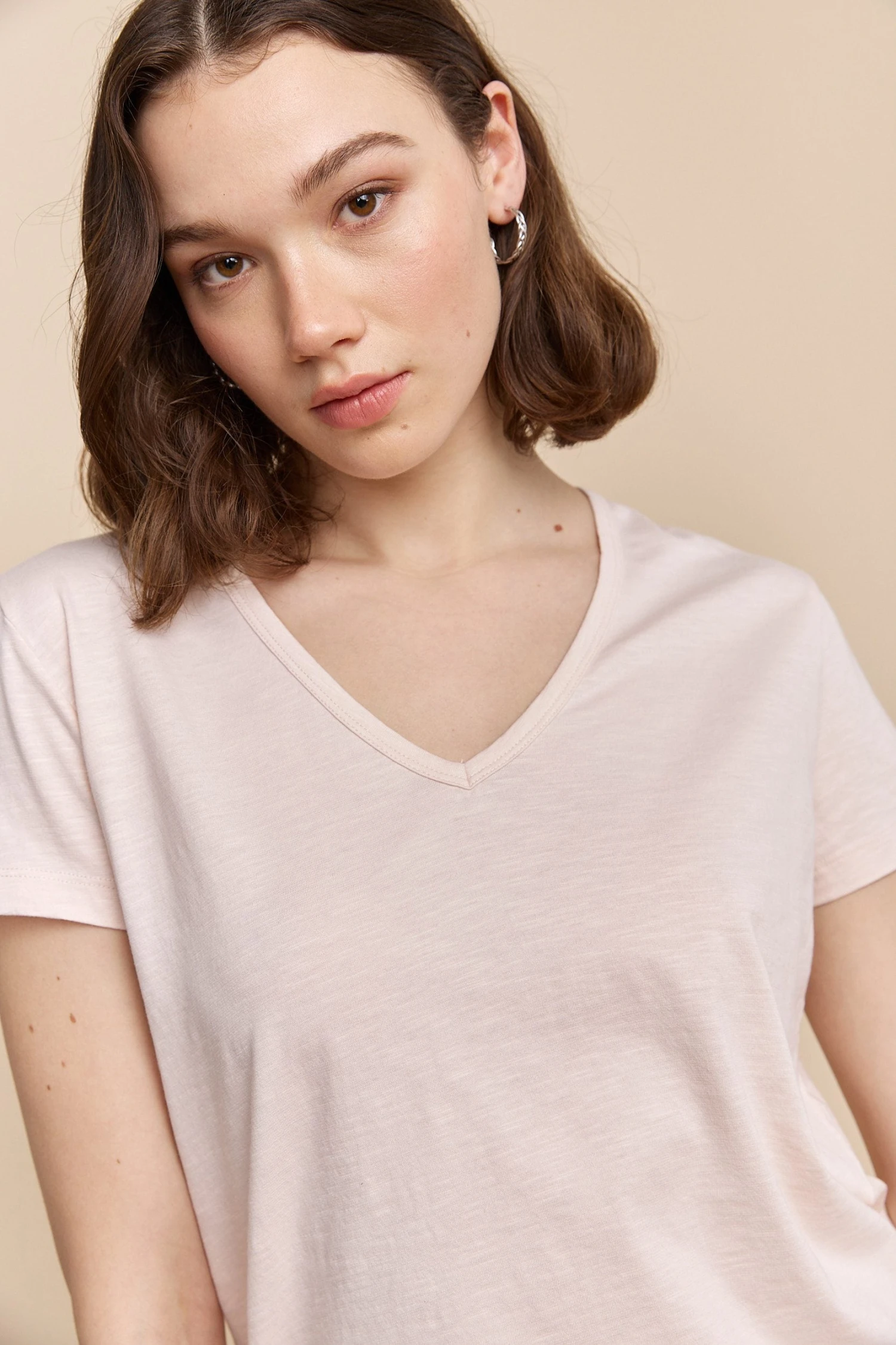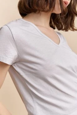 Soft and stylish, this V-neck tee redefines comfort with breathable fabric that’s perfect for layering or solo statements. A minimalist must-have for your everyday wardrobe charm.