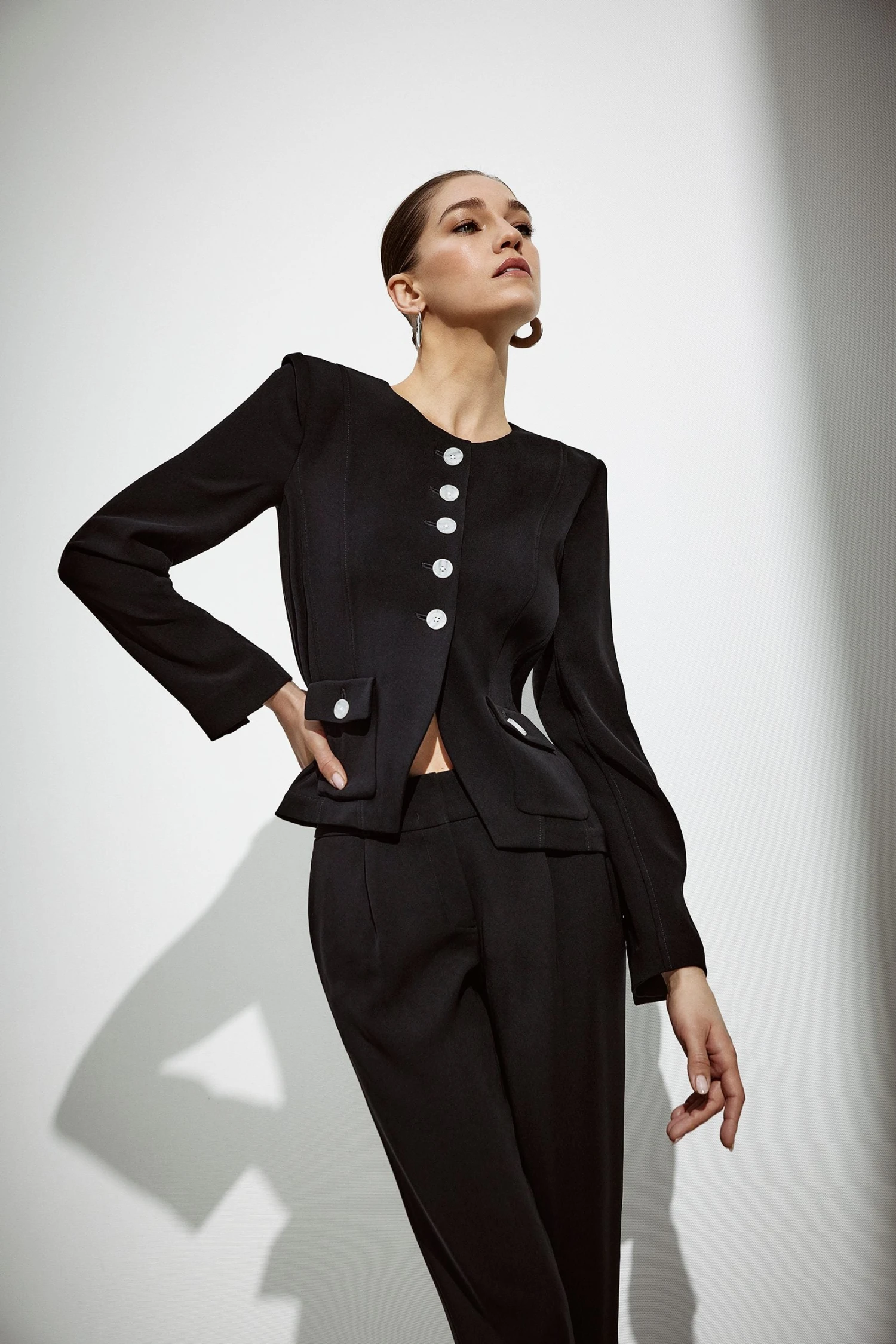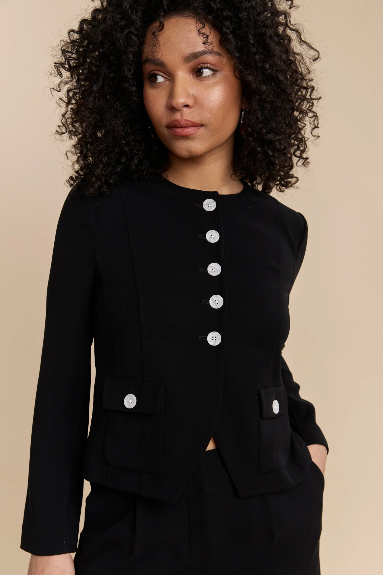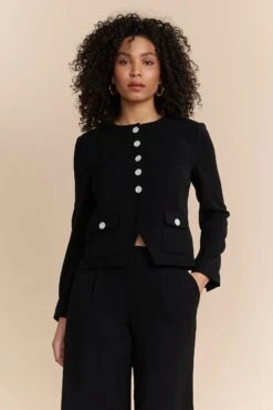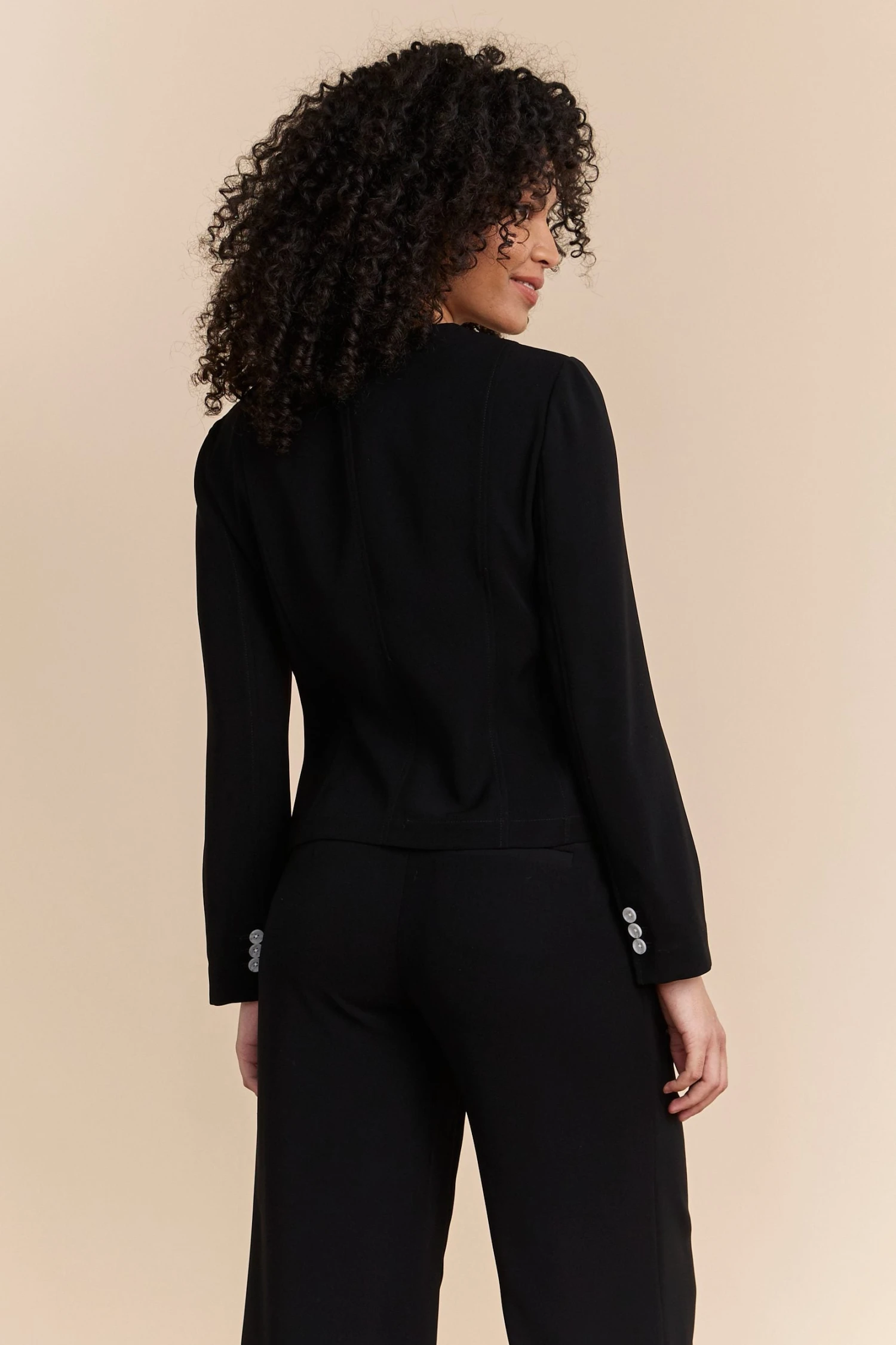 Meet your fashion staple — the cropped jacket! With its sleek design, it adds a touch of sophistication to any outfit. Pair it with high-waisted trousers for a chic silhouette. Fabricated with quality materials, it combines lasting comfort with undeniable style. Make this piece your wardrobe’s finest. It retains its colour beautifully, is easy to care for, and offers a luxurious drape.