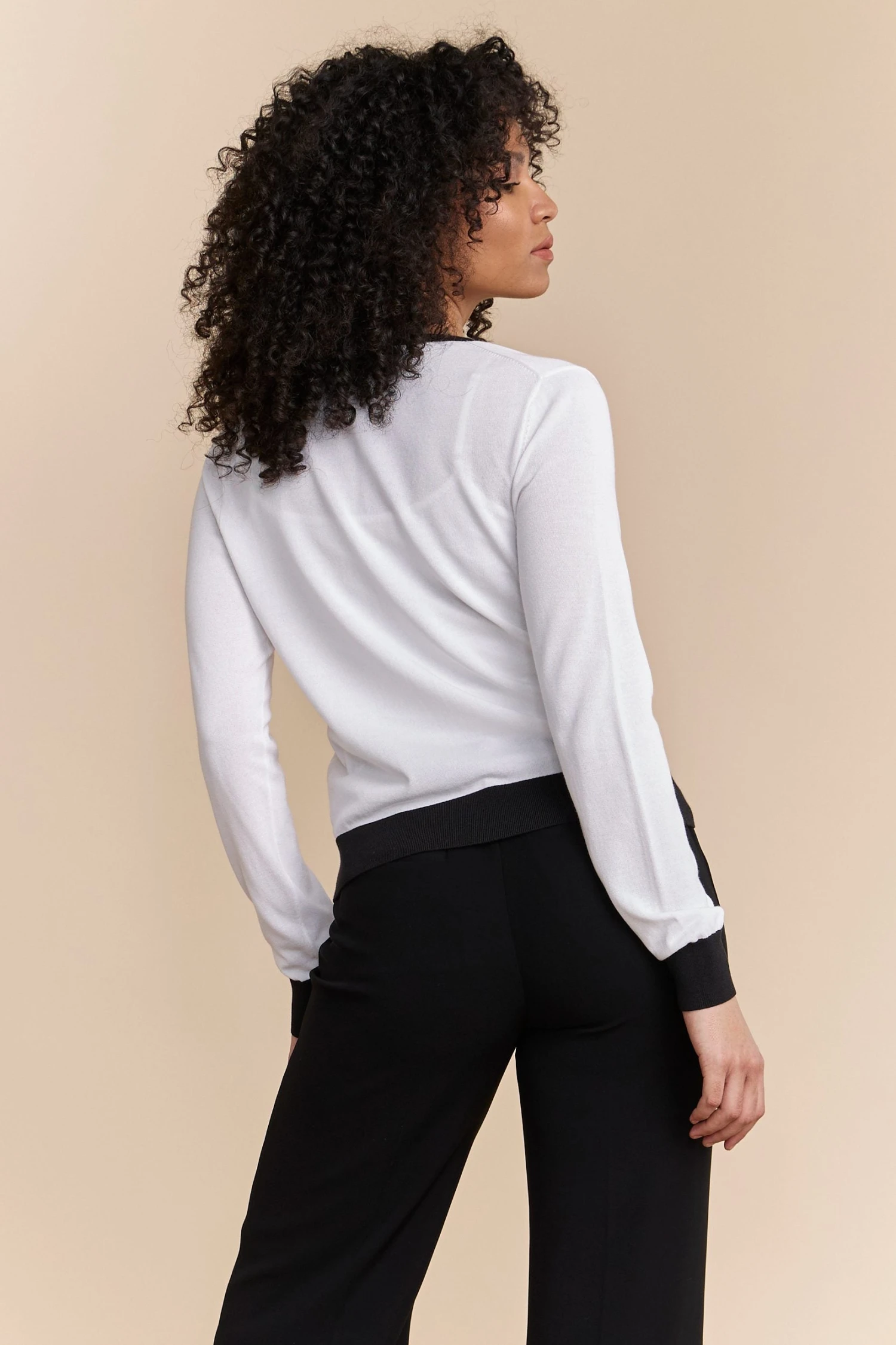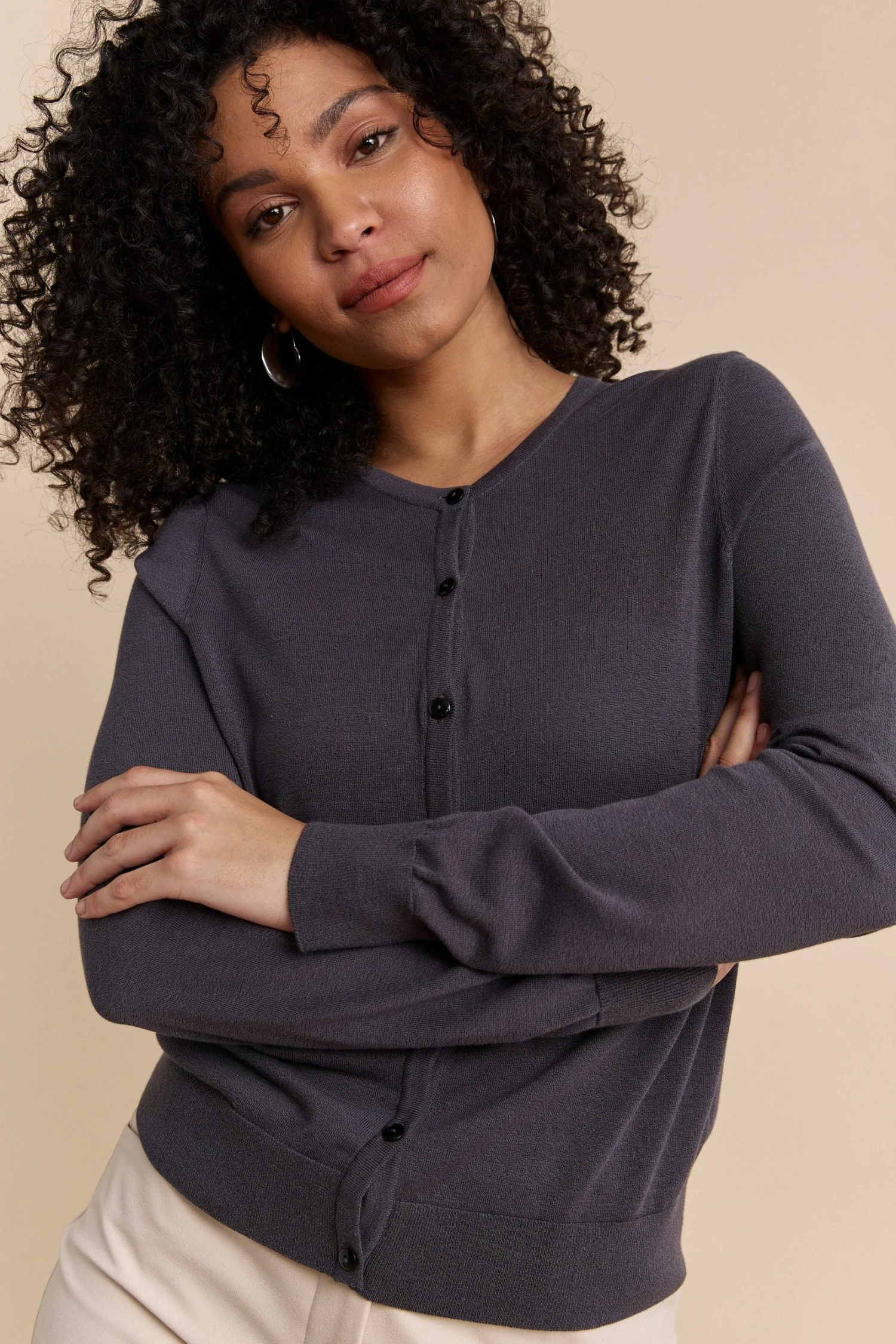 Wrap yourself in understated luxury with our fine-knit cardigan, where comfort and charm blend harmoniously! Perfectly tailored for any occasion, this must-have piece effortlessly elevates your look with elegance. Wear it on its own or paired with the matching camisole underneath (available later in the season). This cardigan is set to become a spring essential—a trend that will continue into Fall 2025.