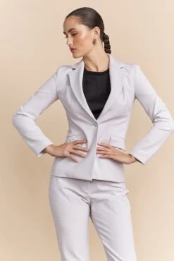 Sleek and sophisticated, this tailored jacket is your new wardrobe essential. Crafted in Canada from premium fabric, it offers a soft touch and breathable comfort ideal for all-day wear. Style it with both office attire and evening ensembles for a seamless transition. Perfect for the modern trendsetter who values elegance and versatility.