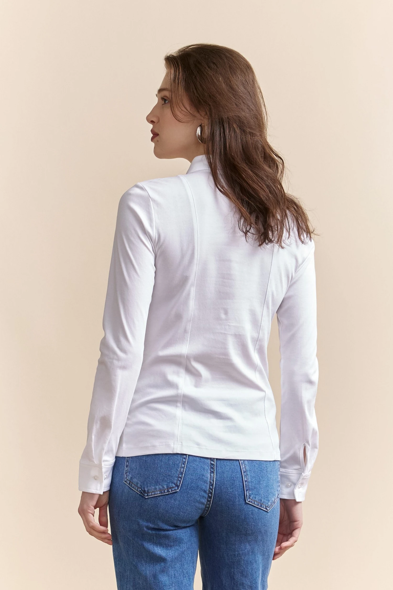 Timelessly chic and irresistibly soft, this fitted mercerized cotton shirt is your new go-to essential. Its luxurious sheen feels gentle on the skin, pairing perfectly with your favourite jeans for a touch of polished elegance. This tailored fit offers a flattering silhouette while the premium cotton ensures long-lasting comfort.