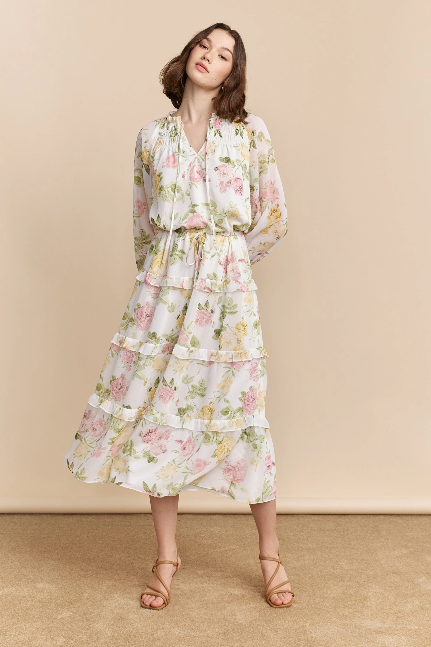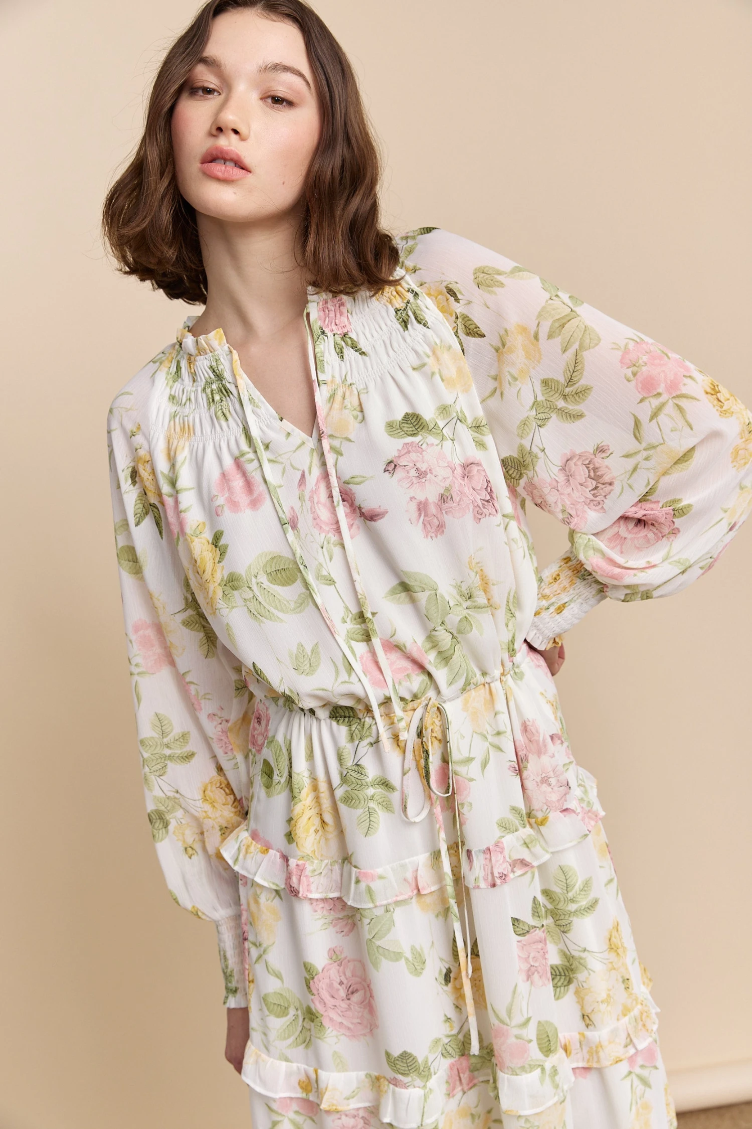 This romantic floral printed dress with frills is your perfect companion for breezy, sun-kissed days. Its gentle fabric drapes beautifully, creating a silhouette that captivates with every twirl. Thoughtfully designed for those who love to blend comfort with elegance, this dress is distinguished by its detailed floral patterns and layered frills. Imagine strolling through a garden party or a chic brunch; itβs just the statement piece your wardrobe needs.