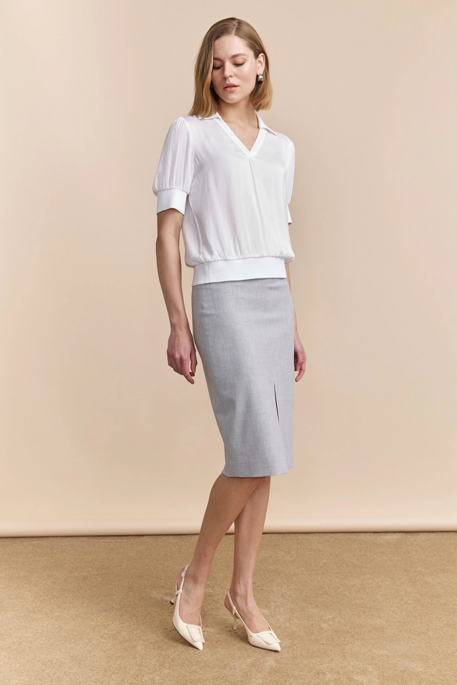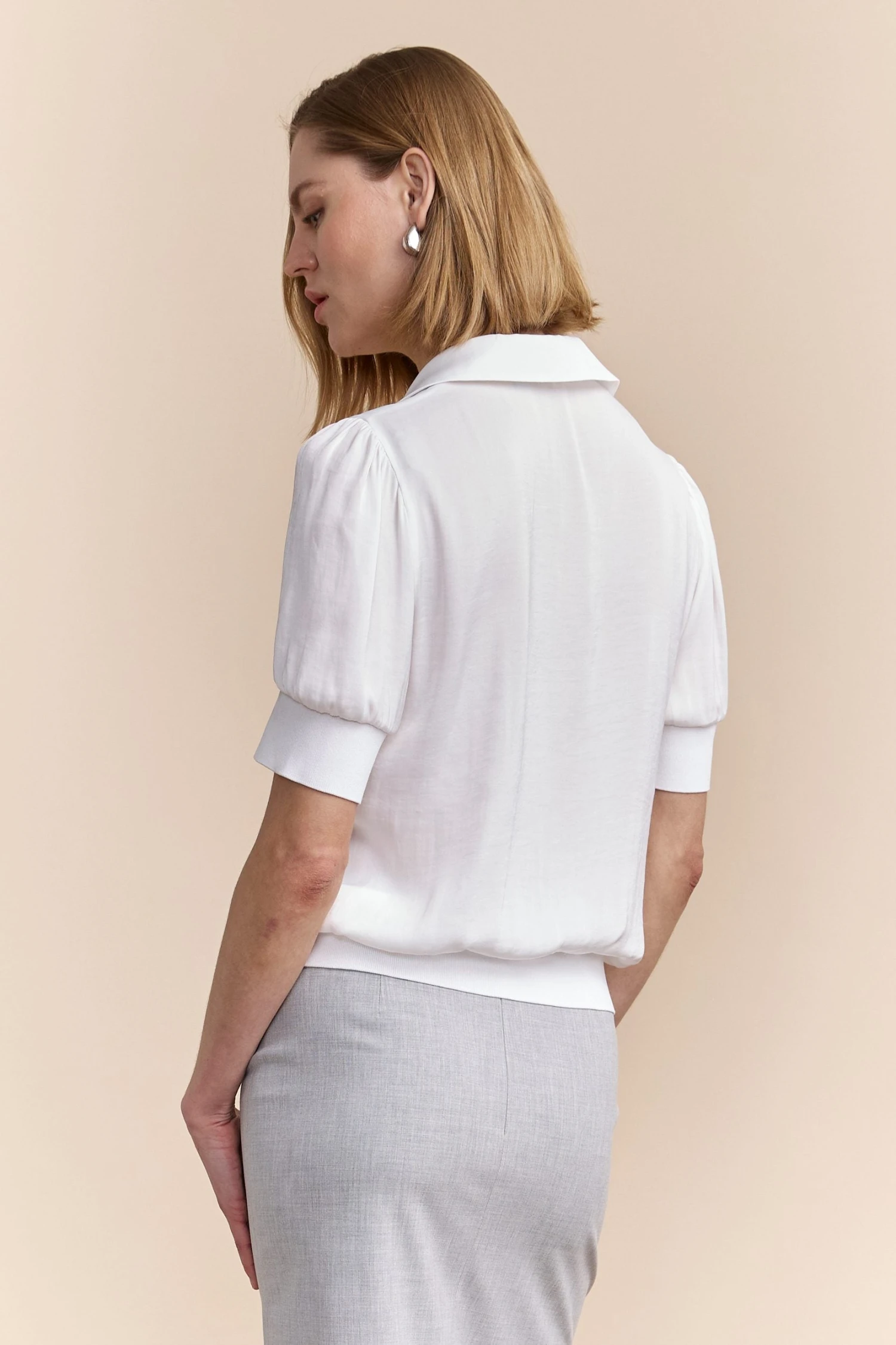 Tailored for the modern minimalist, this top balances sophistication with comfort. The light, breathable fabric offers a soft touch, while its classic collar and subtle ruching add a hint of elegant flair. Ideal for both casual outings and office settings, this piece is your perfect blend of style and grace.