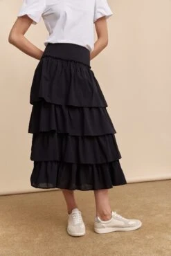 Twirl into elegance with this fluid skirt adorned with delicate frills. Perfect for the creative soul, its lightweight fabric offers supreme comfort and a graceful silhouette. Whether attending a girls’ night out or a museum day, this skirt tells a story of unrestrained style, inviting admiration at every turn. Ideal for those seeking individuality and charm in their wardrobe essentials.