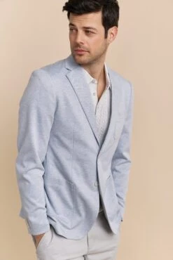 This herringbone fitted knit blazer is your go-to for polished style and ultimate comfort. Crafted with careful attention, its fit brings confidence to any occasion. Imagine pairing it with your favorite chinos or dress it down with jeans. The rich texture exudes sophistication, making it a staple in your wardrobe. Tailored for those who value quality and style in equal measure.