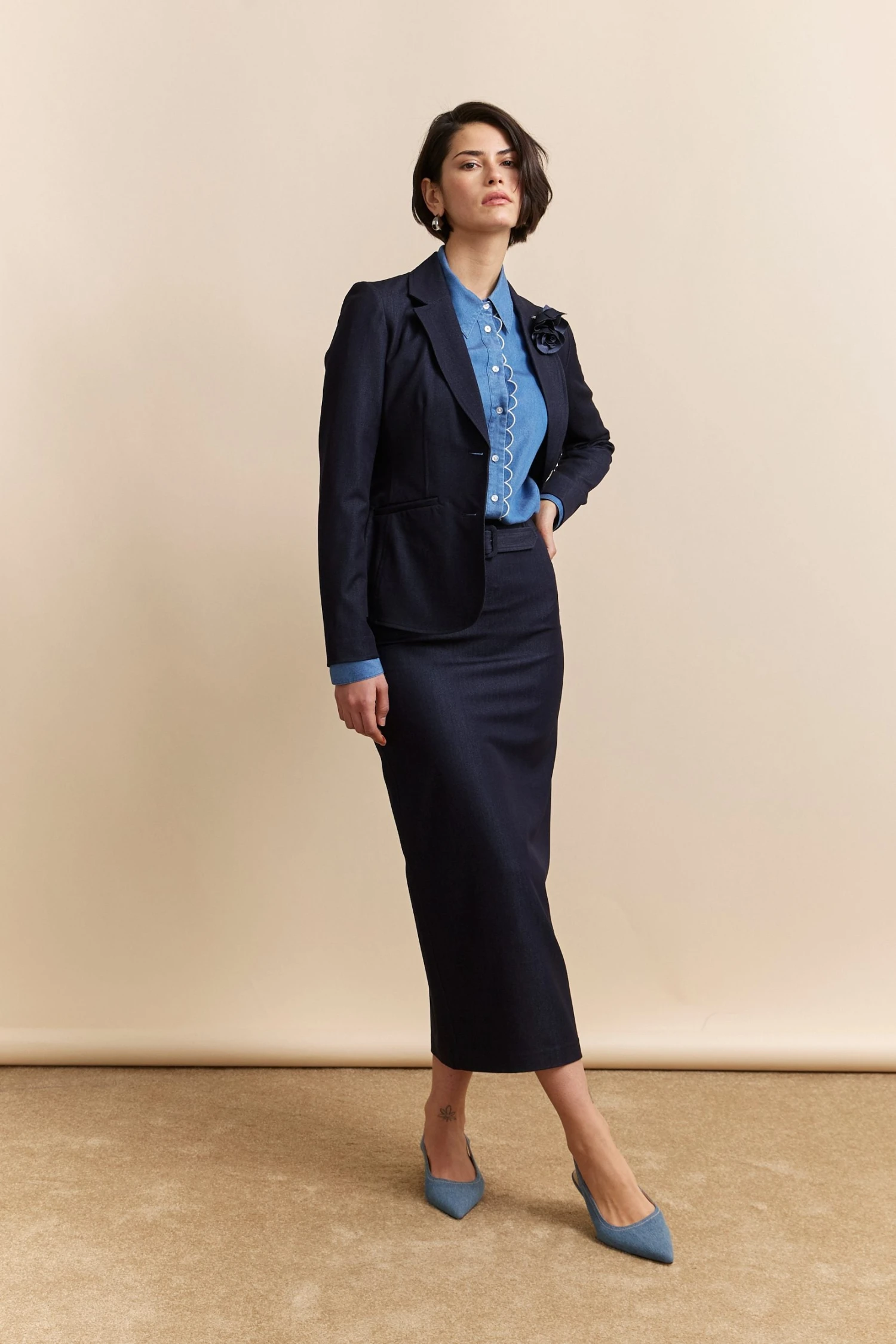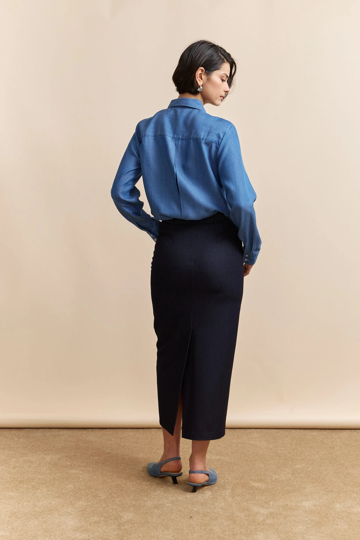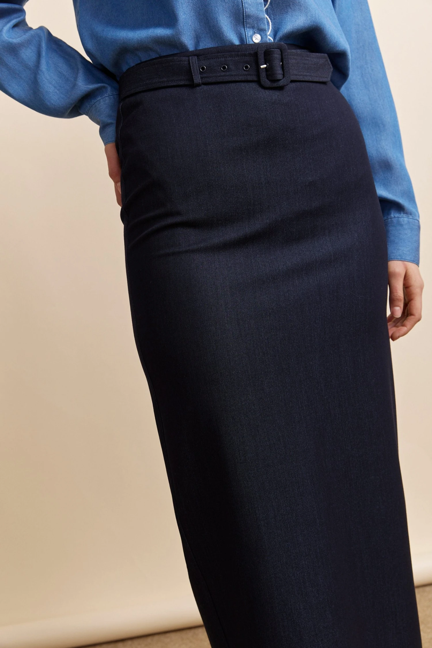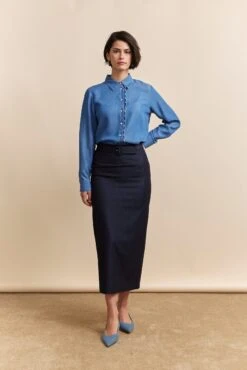 Smart elegance meets everyday ease in this timeless high waist pencil skirt, perfect for the discerning woman. This skirt (and its belt) enhances your silhouette beautifully, offering comfort and style all day long. Pair it with your favourite blouse and play with layers for both workdays and special evenings.