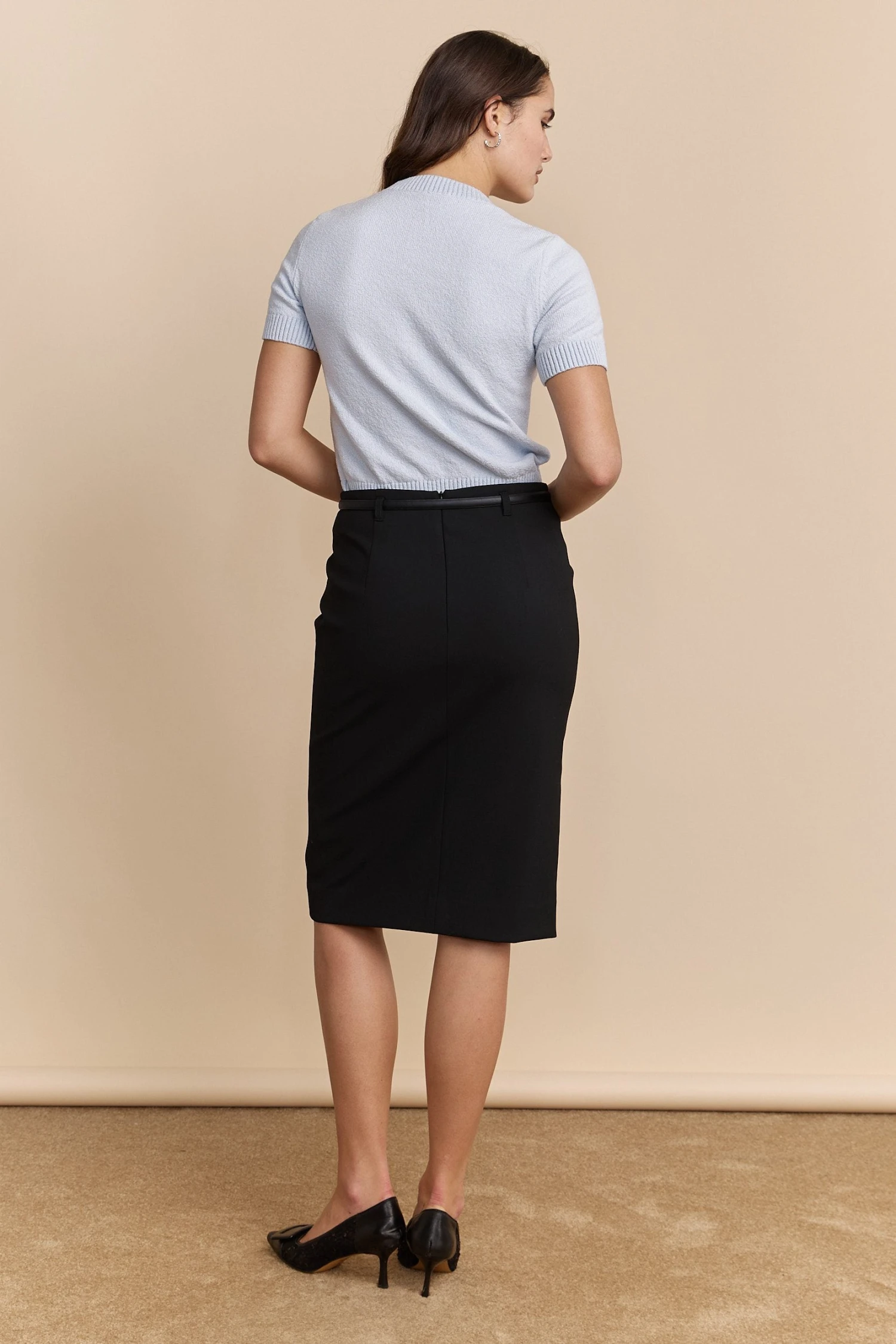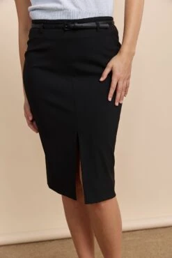 Elegance with an edge, discover this high waist skirt featuring a sleek belt and a chic front slit. Designed in luxurious fabric for a flattering fit, perfect for your day at the office or an evening out.