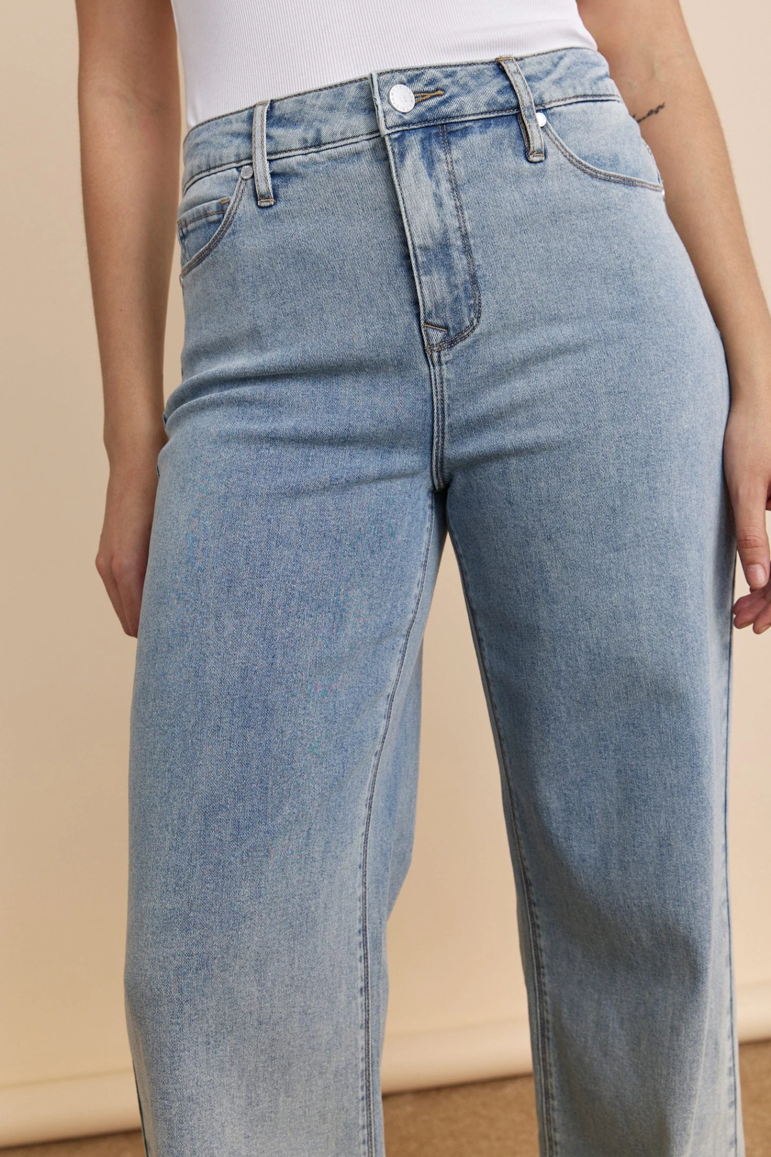 Give your wardrobe a breath of fresh air with these high-waisted jeans—the perfect blend of modern style and elegance. Their flattering straight cut enhances every silhouette, while the premium denim ensures exceptional softness and comfort. Easy to style, they pair effortlessly with a sophisticated blouse for a chic brunch or a cozy sweater for a trendy, laid-back look. A must-have piece you’ll want to wear on repeat!