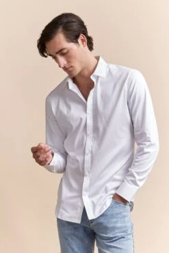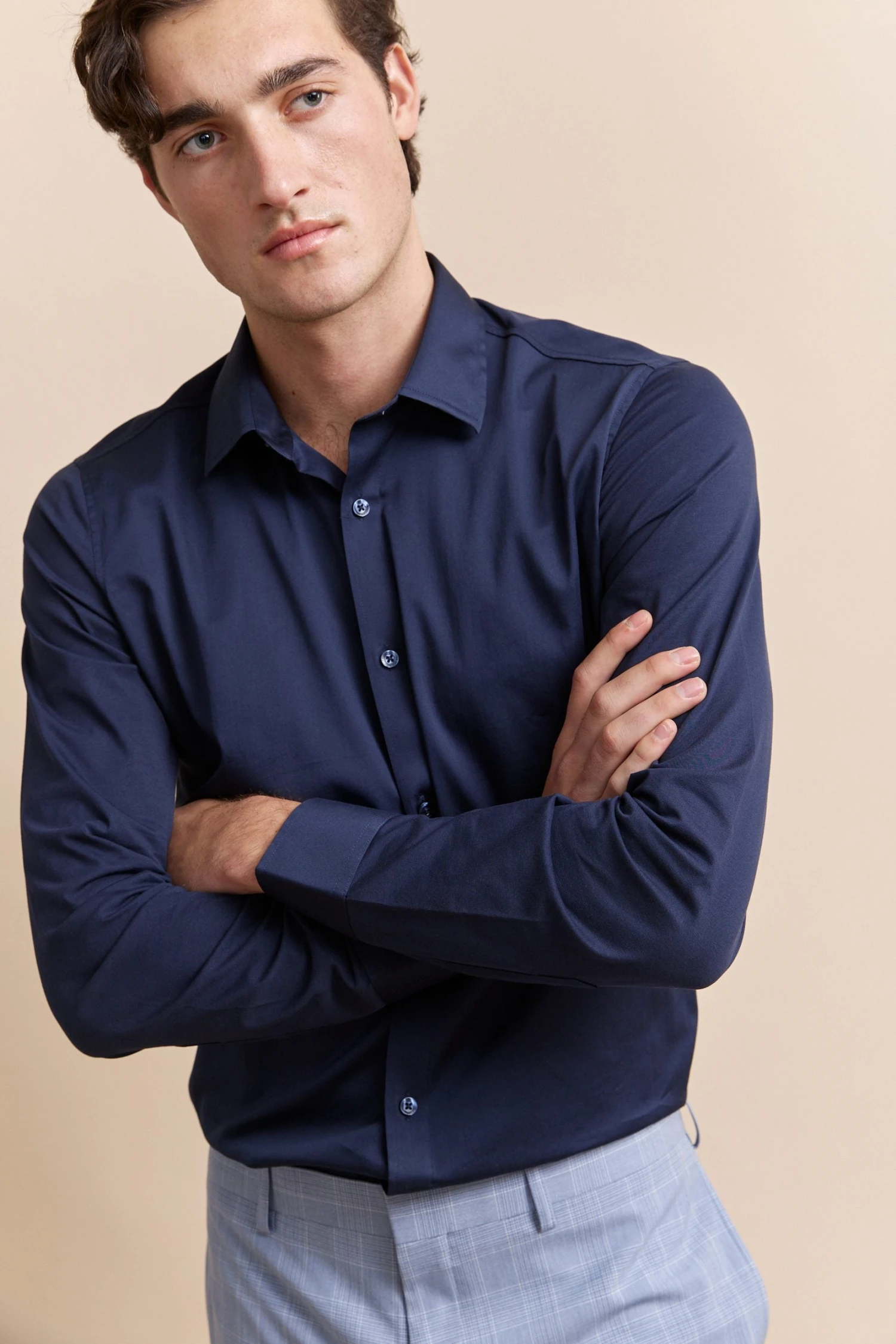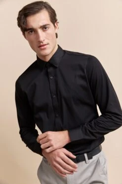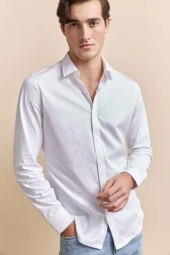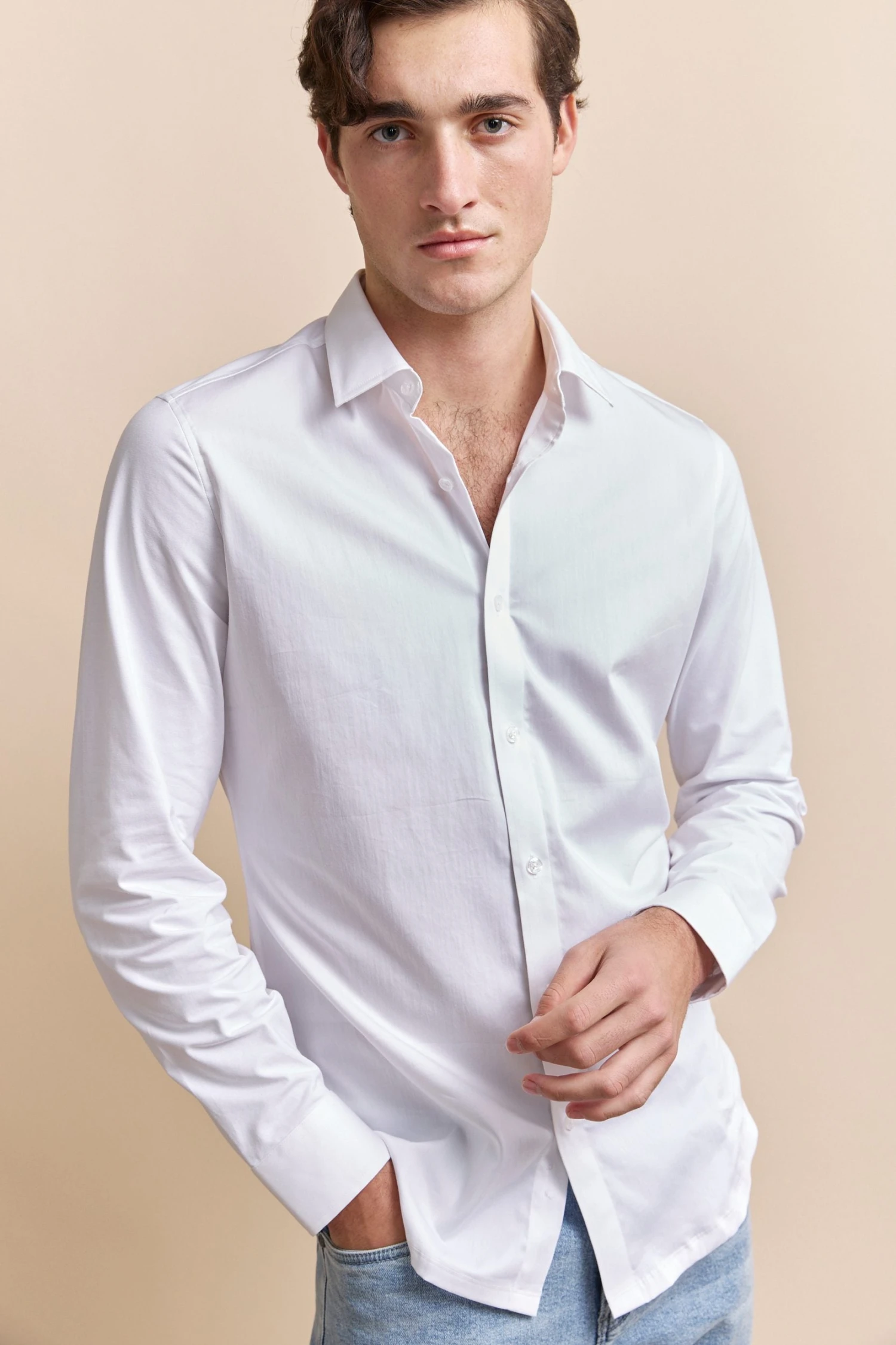 Discover sophistication with our fitted jersey back and sleeve shirt, perfect for the modern wardrobe. This piece offers unparalleled comfort with just the right stretch, making it ideal for any setting.