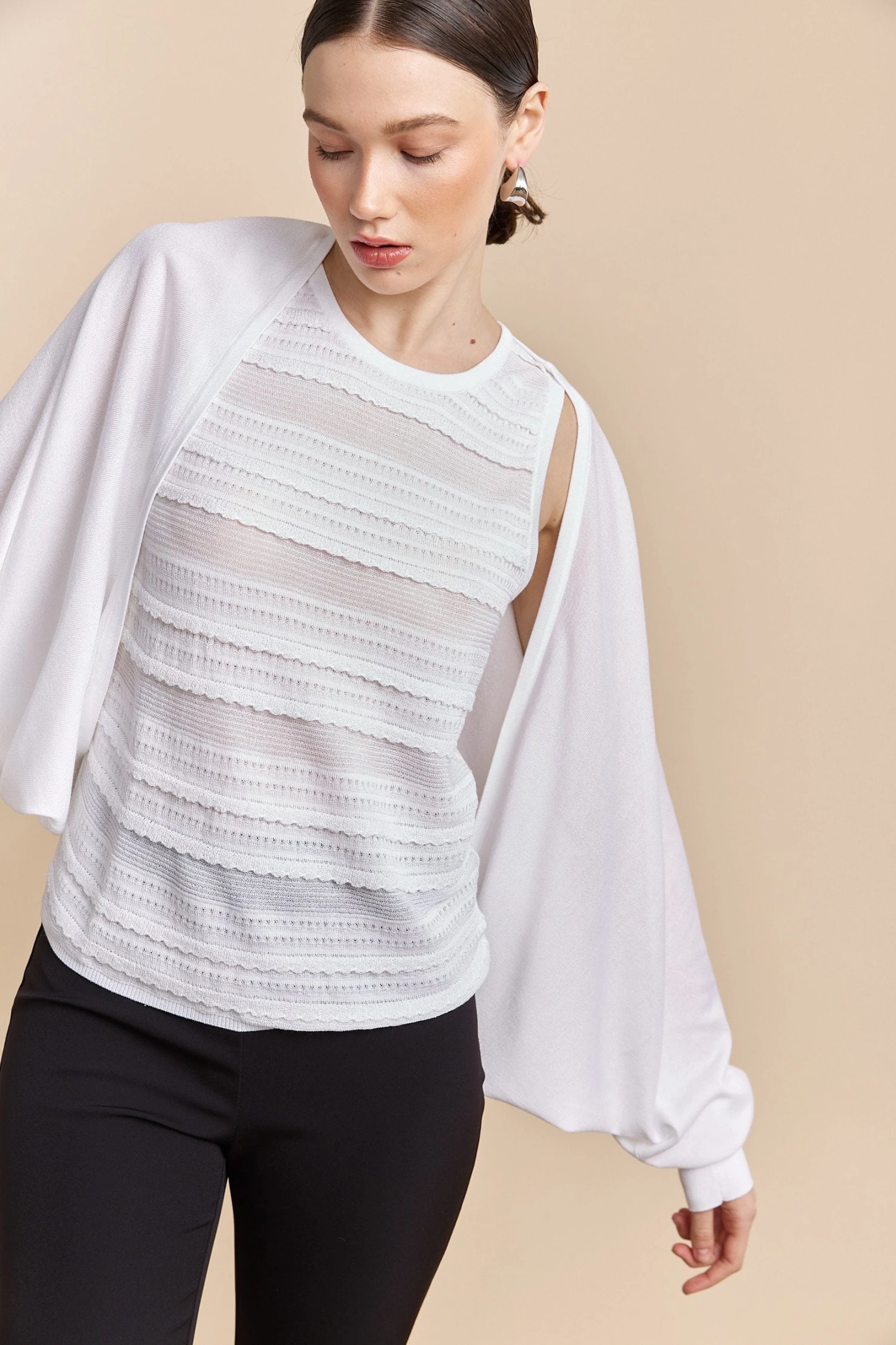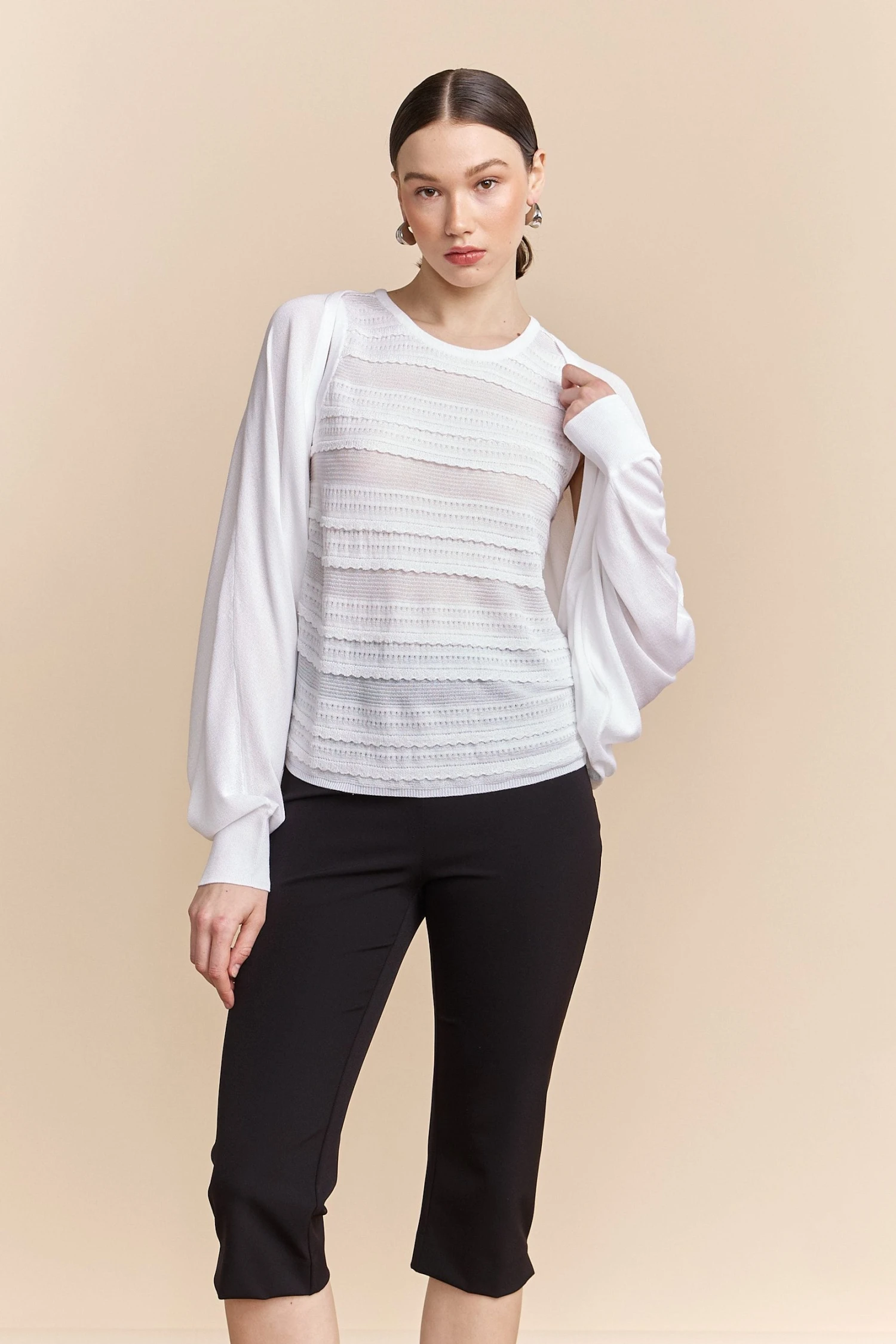 Layer your look with confidence in our knit shrug! Perfect for crisp mornings or cool evenings, this cozy piece is crafted from soft, breathable fabric that ensures all-day comfort. The shrug drapes elegantly over your shoulders, adding a touch of sophistication to any outfit. Pair it with tailored trousers or your favorite dress for a chic, layered effect.