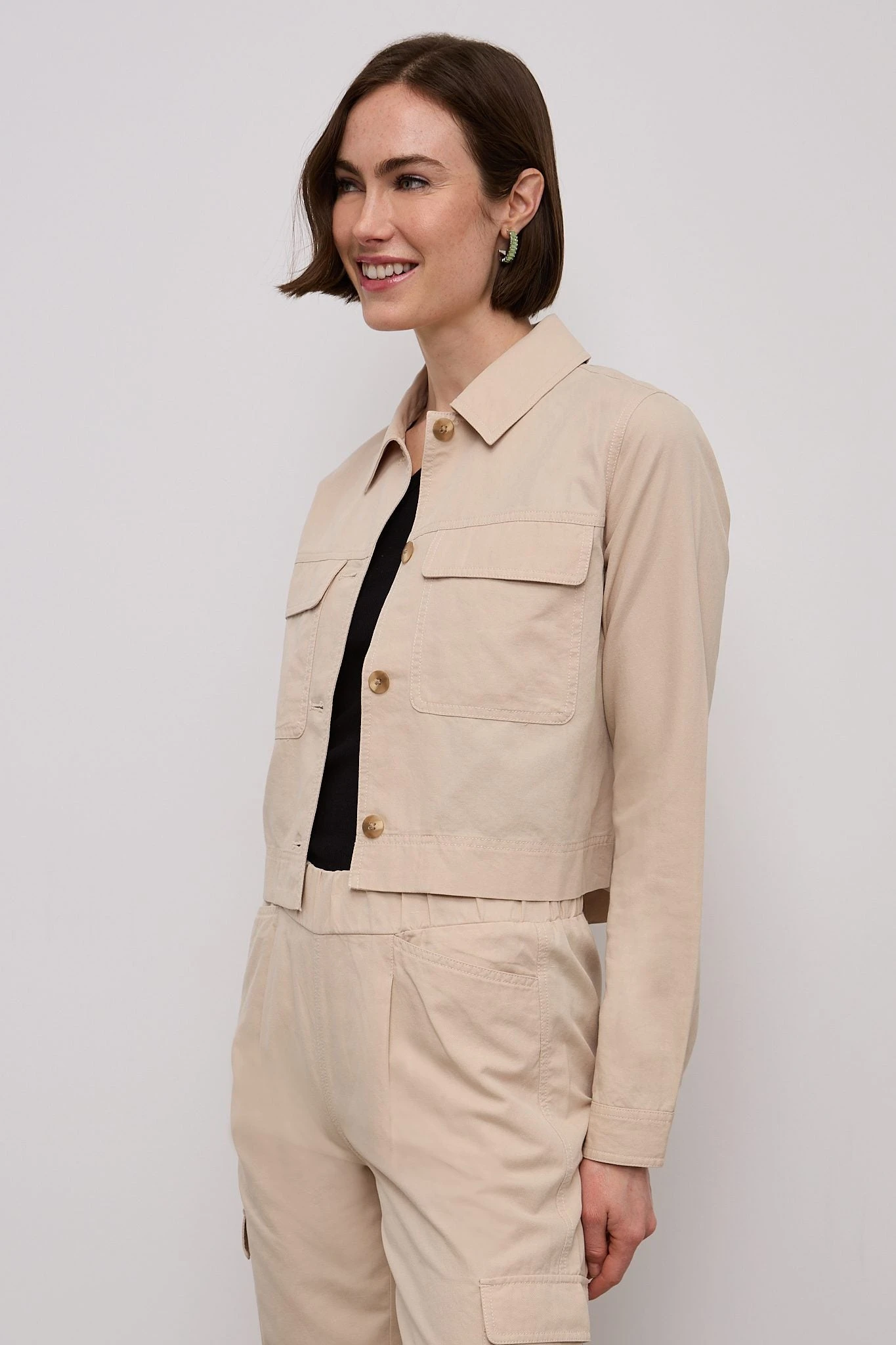 Linen Blend Crop Utility Jacket