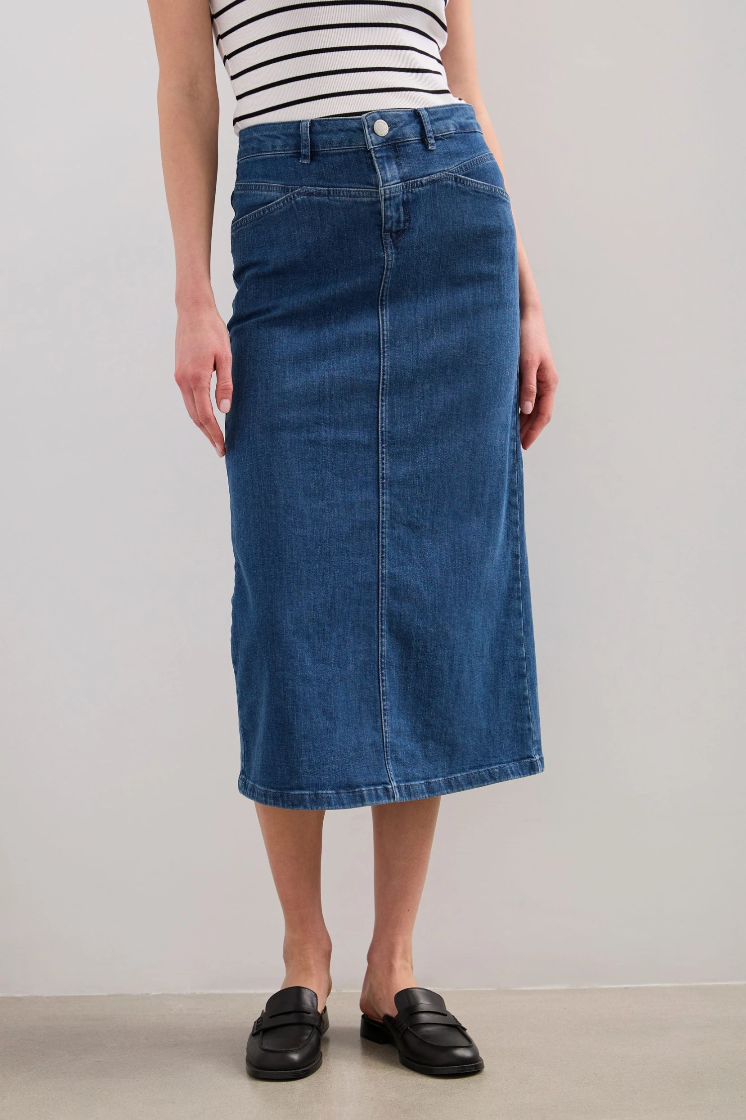 Long Denim Skirt With Slit