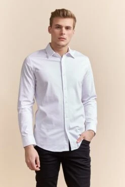 Immerse yourself in the luxe comfort of our shirt, crafted from mercerized cotton for a sleek, breathable feel that lasts all day. Enjoy an extra-fitted design that hugs your form, creating a sharp silhouette perfect for any occasion. Feel the elegance without sacrificing comfort, and make a statement with every wear.