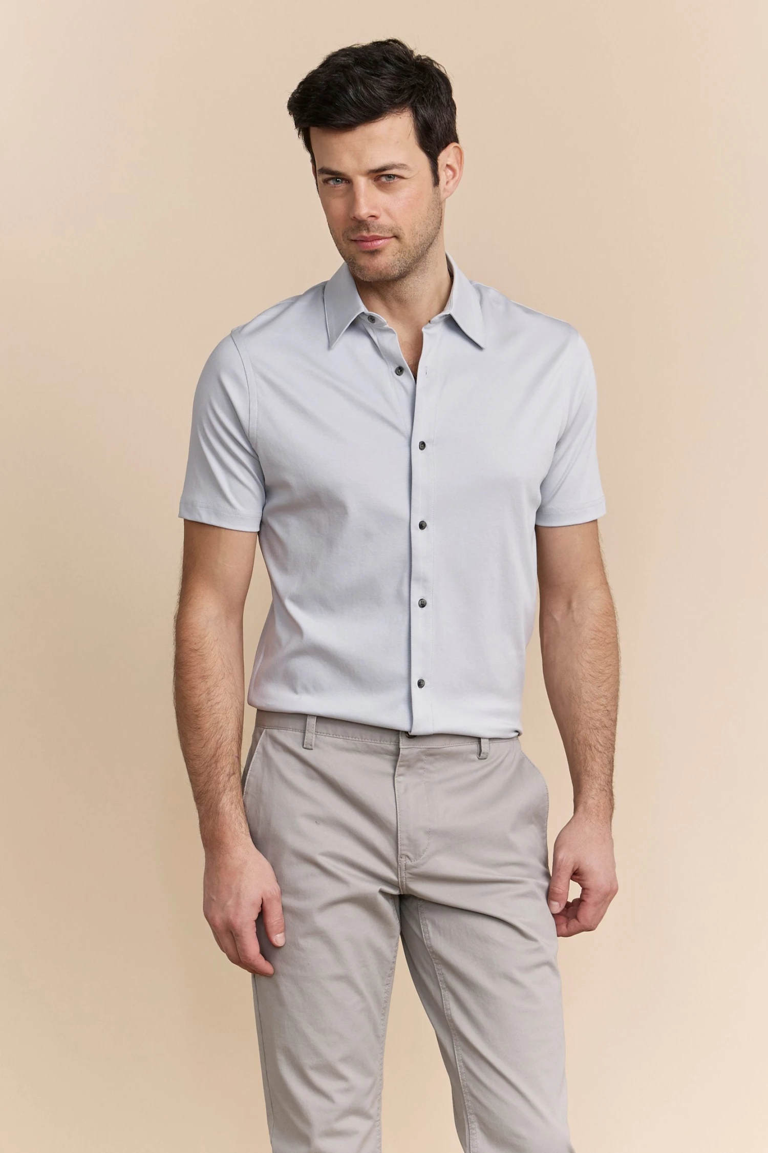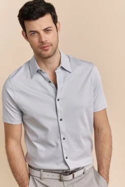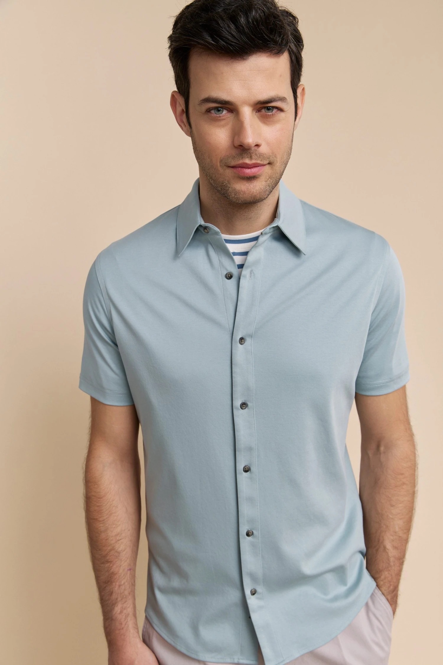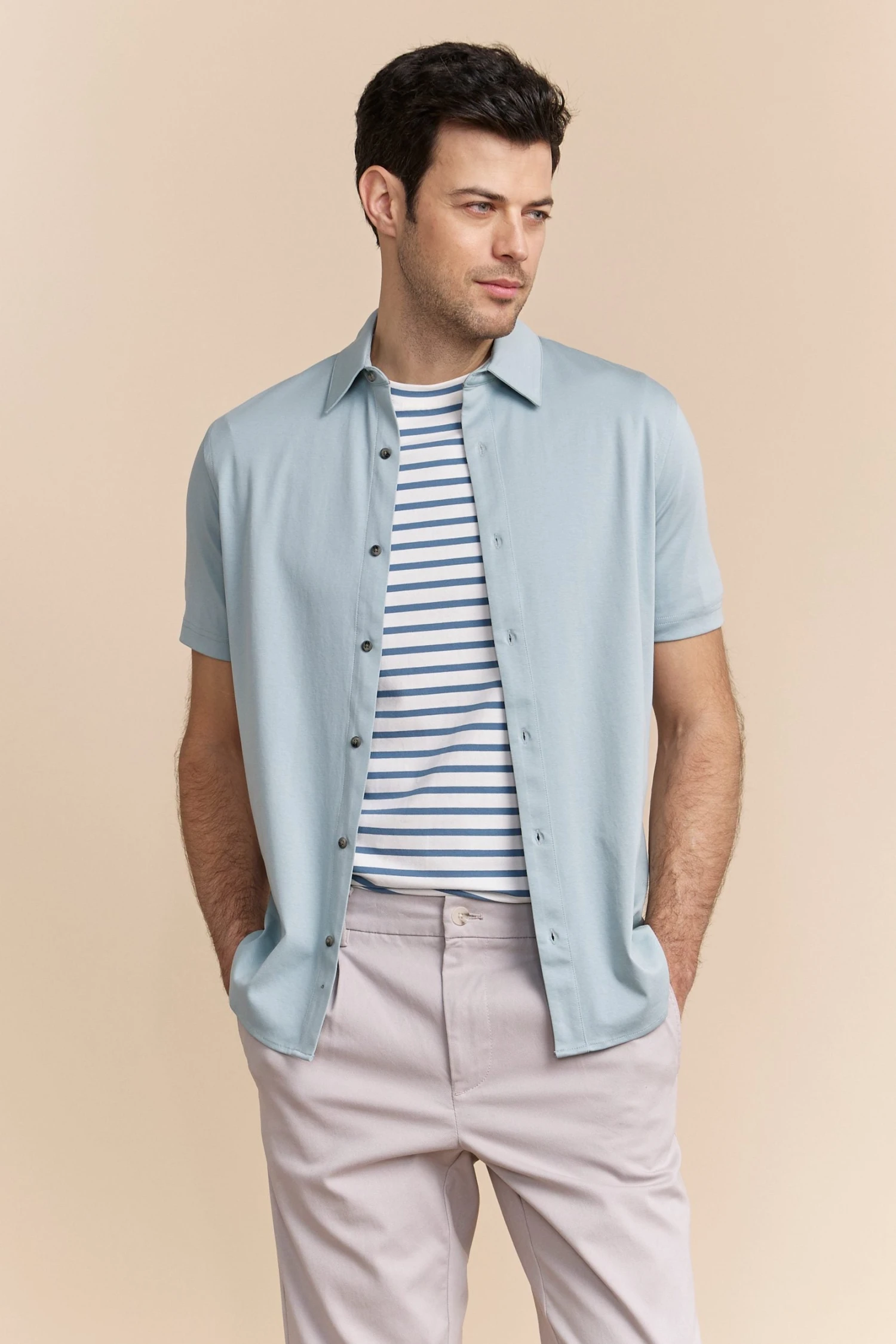 Unveil sophistication with this mercerized cotton jersey shirt. Ideal for breezy summer evenings or casual business settings, its smooth finish offers a luxurious touch to your skin. Pair it with tailored trousers for a refined edge, making every glance a testament to refined taste.