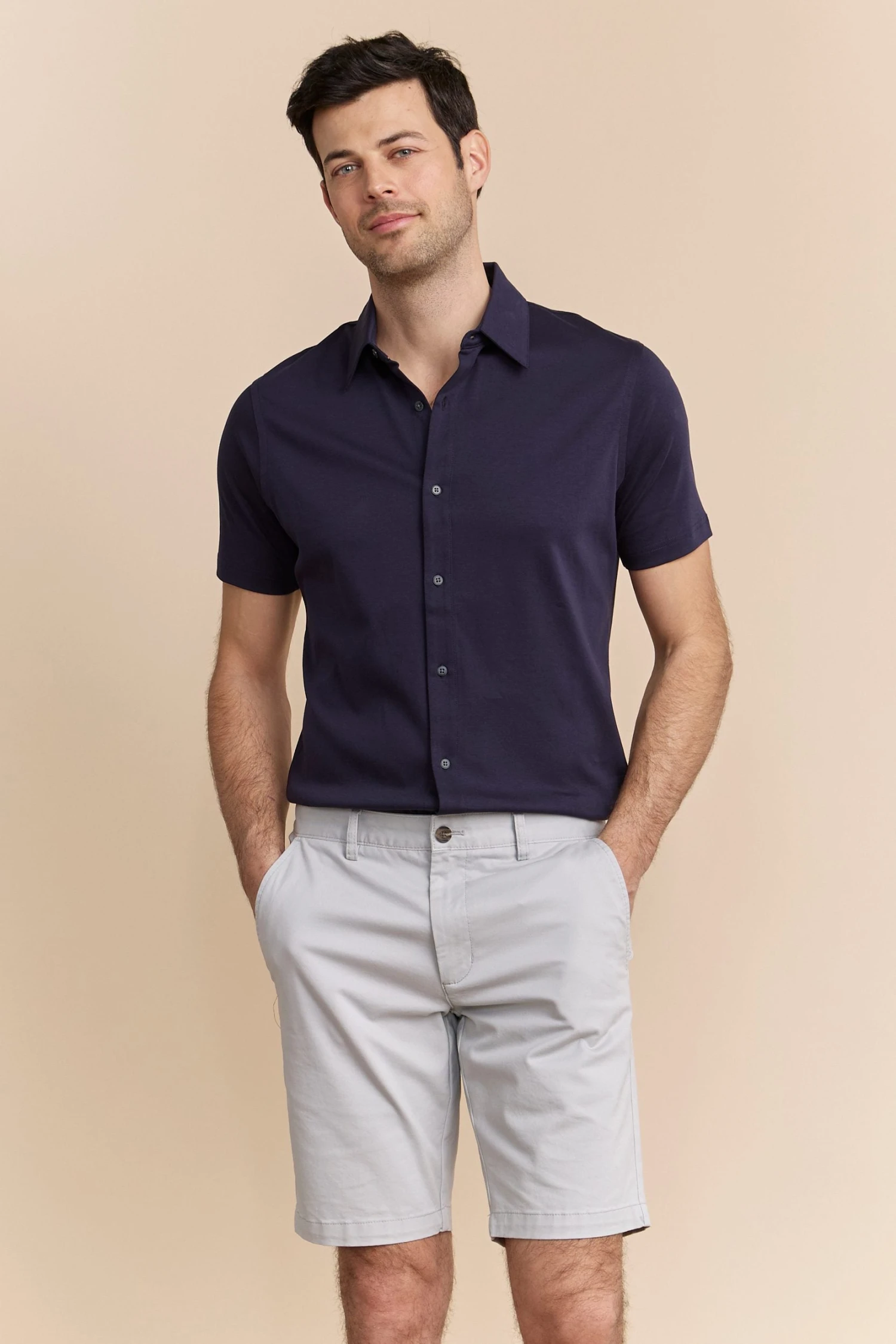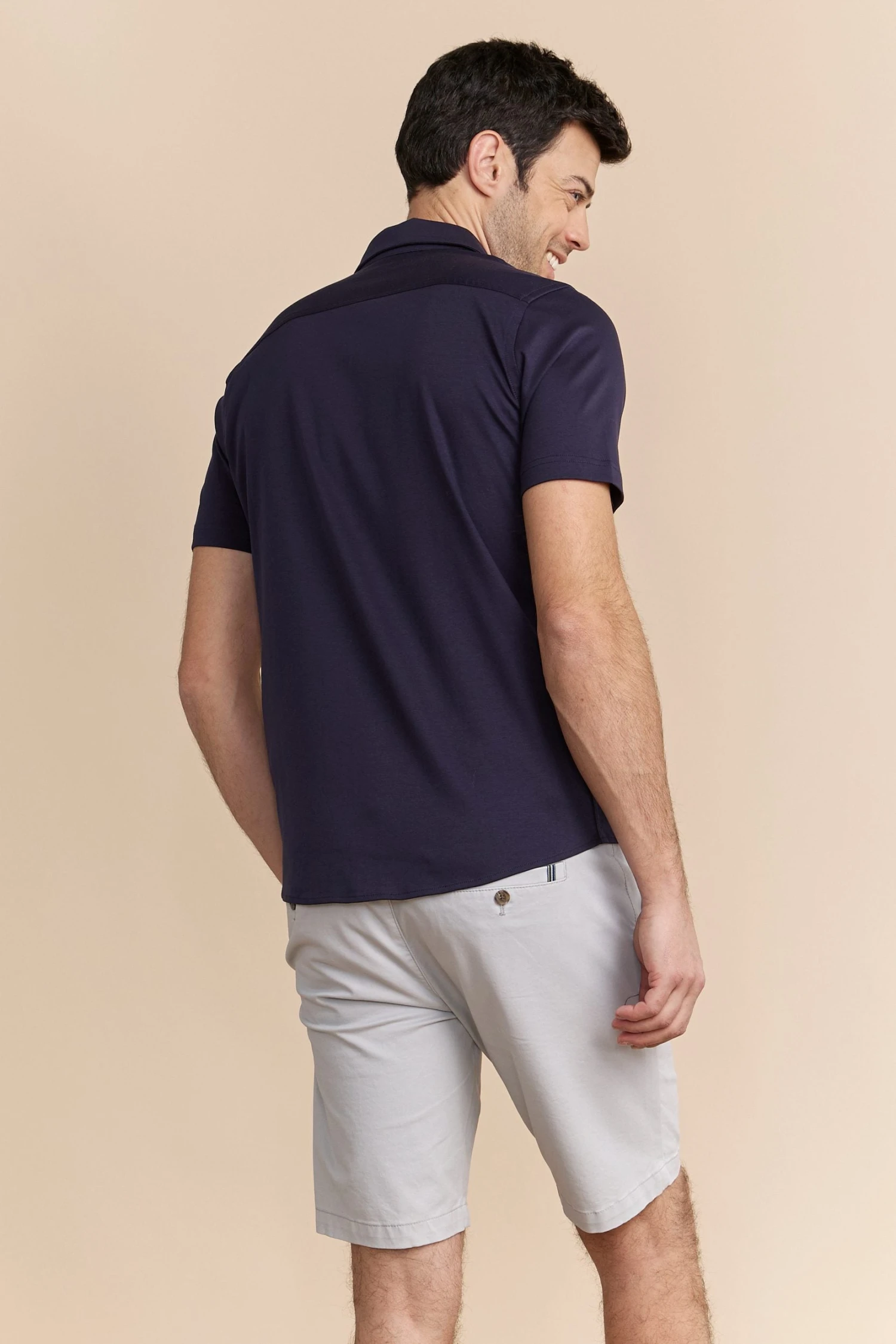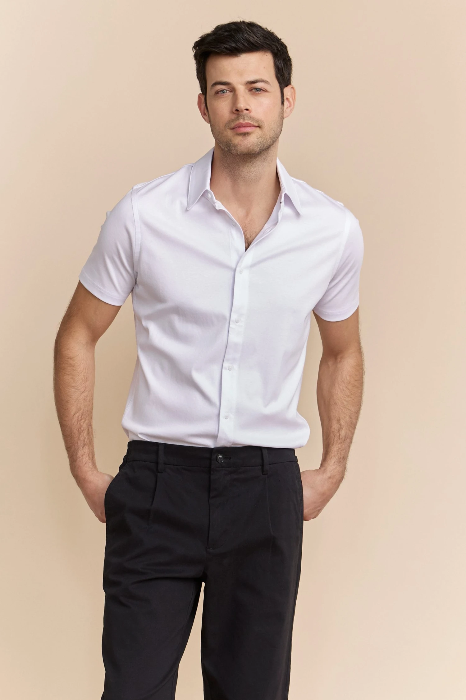 Unveil sophistication with this mercerized cotton jersey shirt. Ideal for breezy summer evenings or casual business settings, its smooth finish offers a luxurious touch to your skin. Pair it with tailored trousers for a refined edge, making every glance a testament to refined taste.