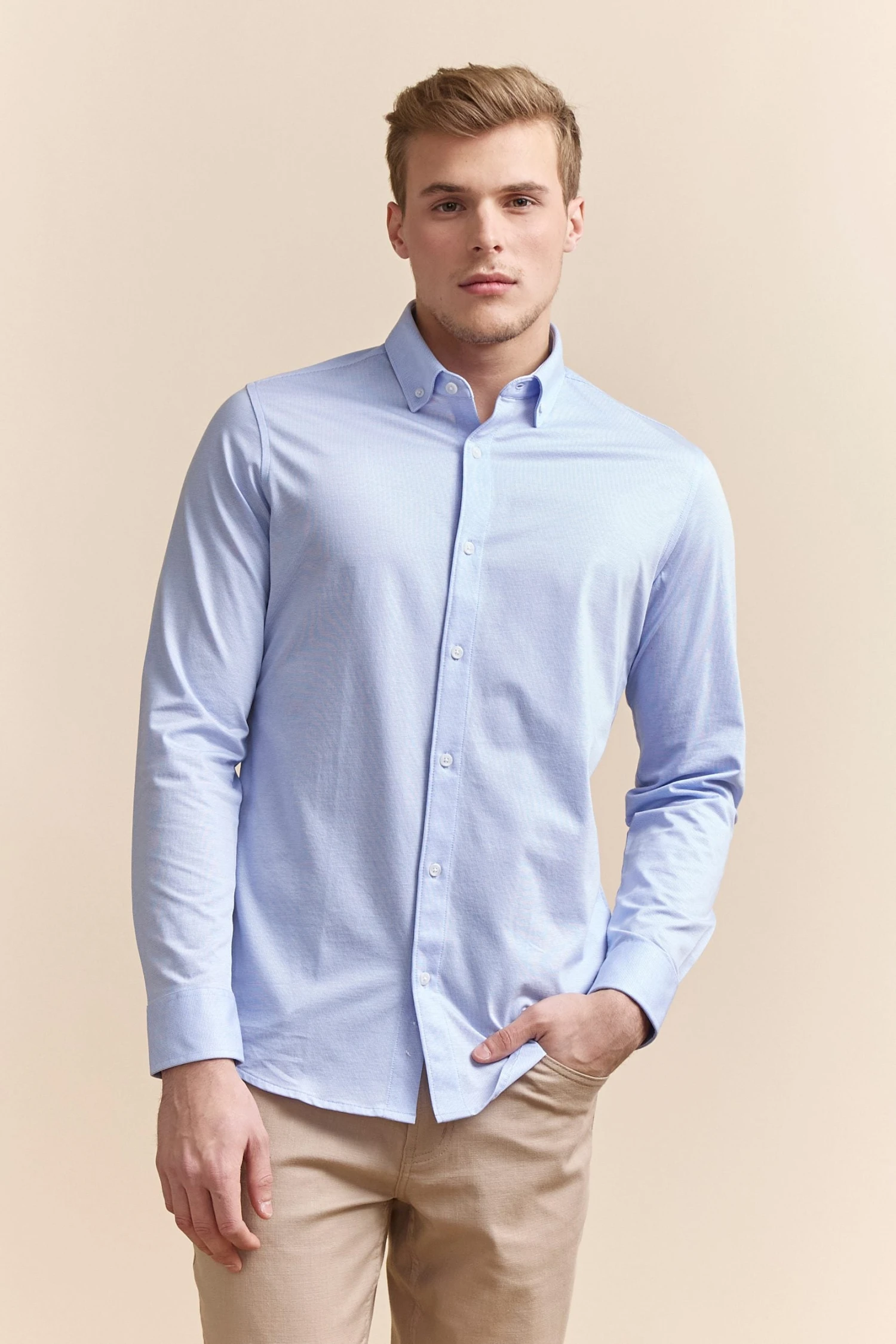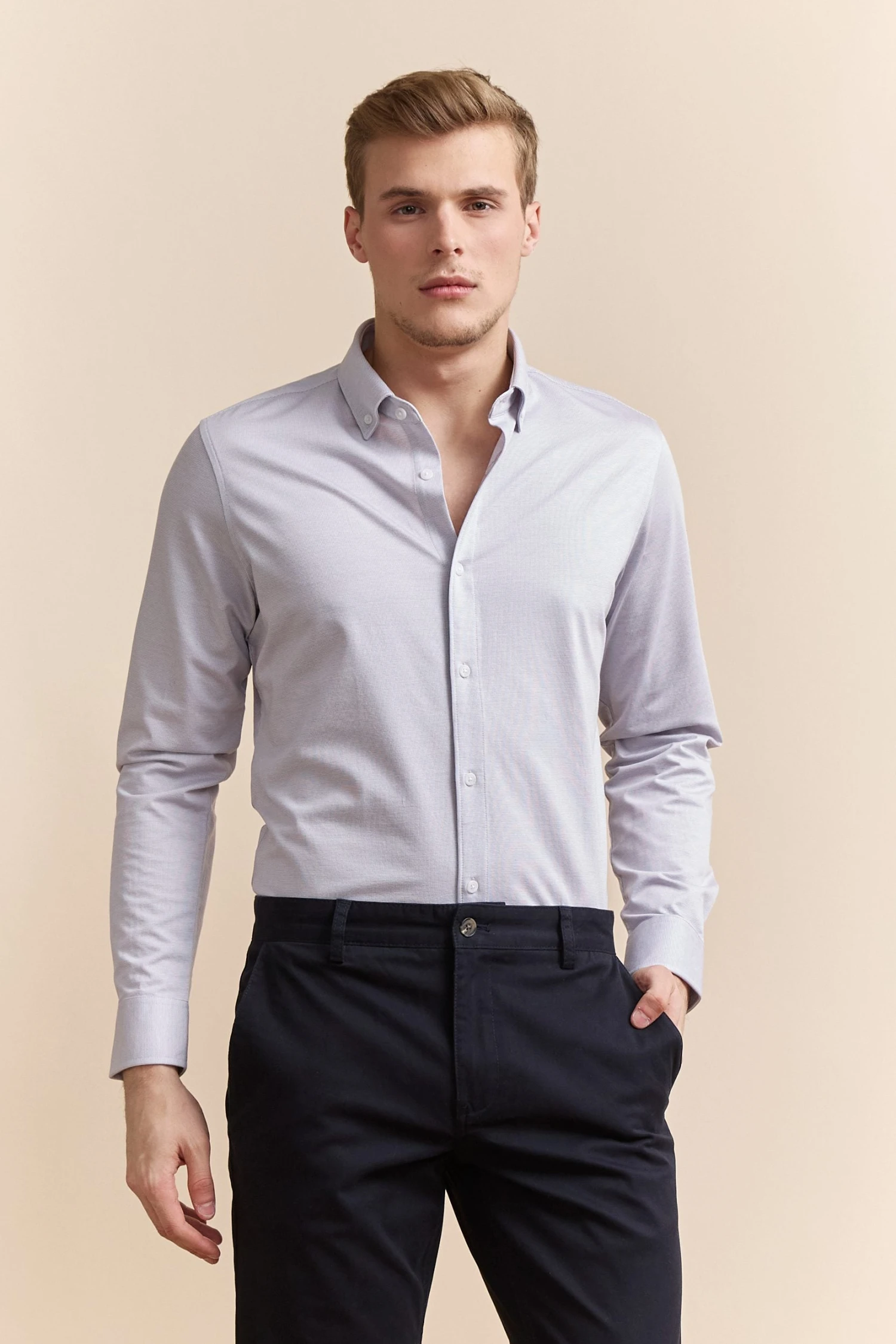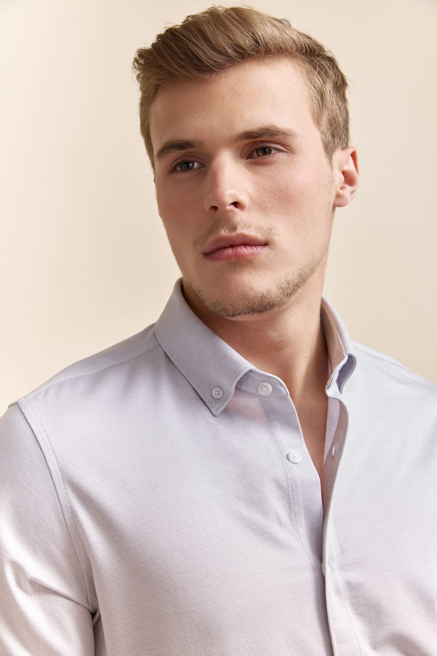 Strike the perfect balance between style and comfort with this micro check jersey fitted shirt. Designed for the modern man who values both elegance and ease, its soft fabric offers day-long comfort and flexibility, all while keeping you looking sharply dressed. Ideal for both casual Fridays and weekend gatherings, this shirt becomes an indispensable part of your wardrobe, ensuring you feel confident on any occasion.