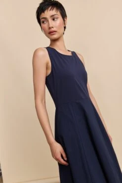 This mixed-fabric balloon dress is a dreamy blend of comfort and style. Crafted to gently flow with every step, its lightweight material ensures a graceful silhouette while keeping you cool. The deep navy hue adds a touch of sophistication, perfect for both day-to-night transitions. Pair with your favourite flats for a casual day out or dress it up with statement accessories for an evening soiree. Feel the luxurious texture against your skin—an essential piece for the modern wardrobe.