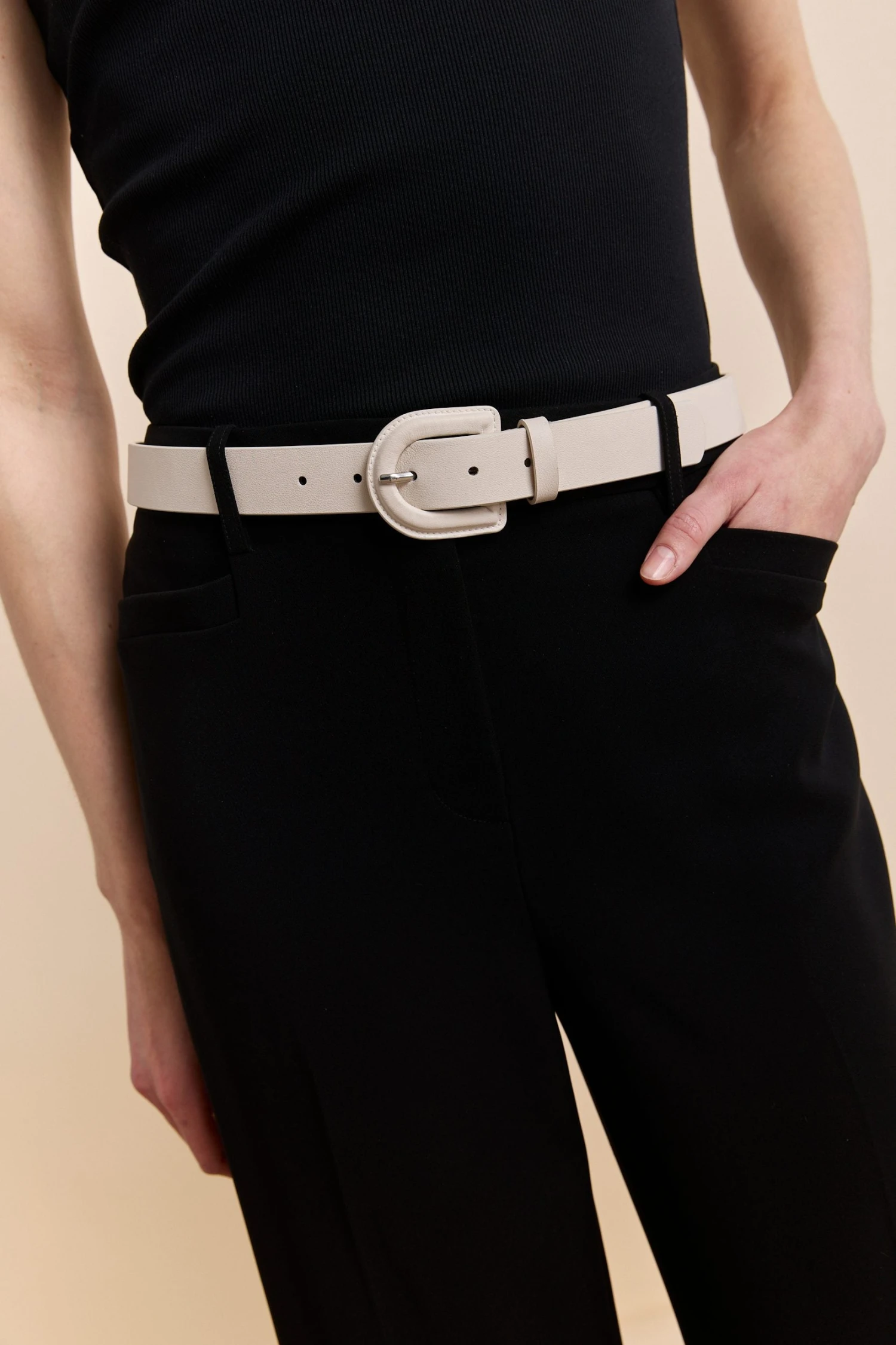 Timeless sophistication meets everyday functionality. This monochrome classic belt offers a sleek accent to any outfit, crafted from high-quality material. A statement buckle adds flair, making it the perfect companion for work or weekends. Its neutral hue complements your style seamlessly, proving that true elegance lies in simplicity.