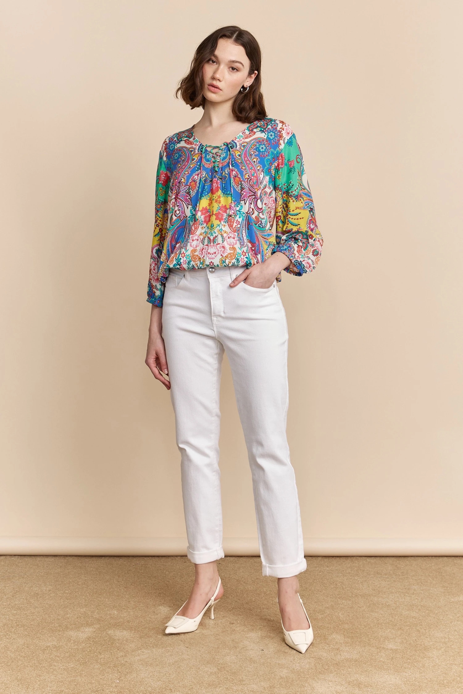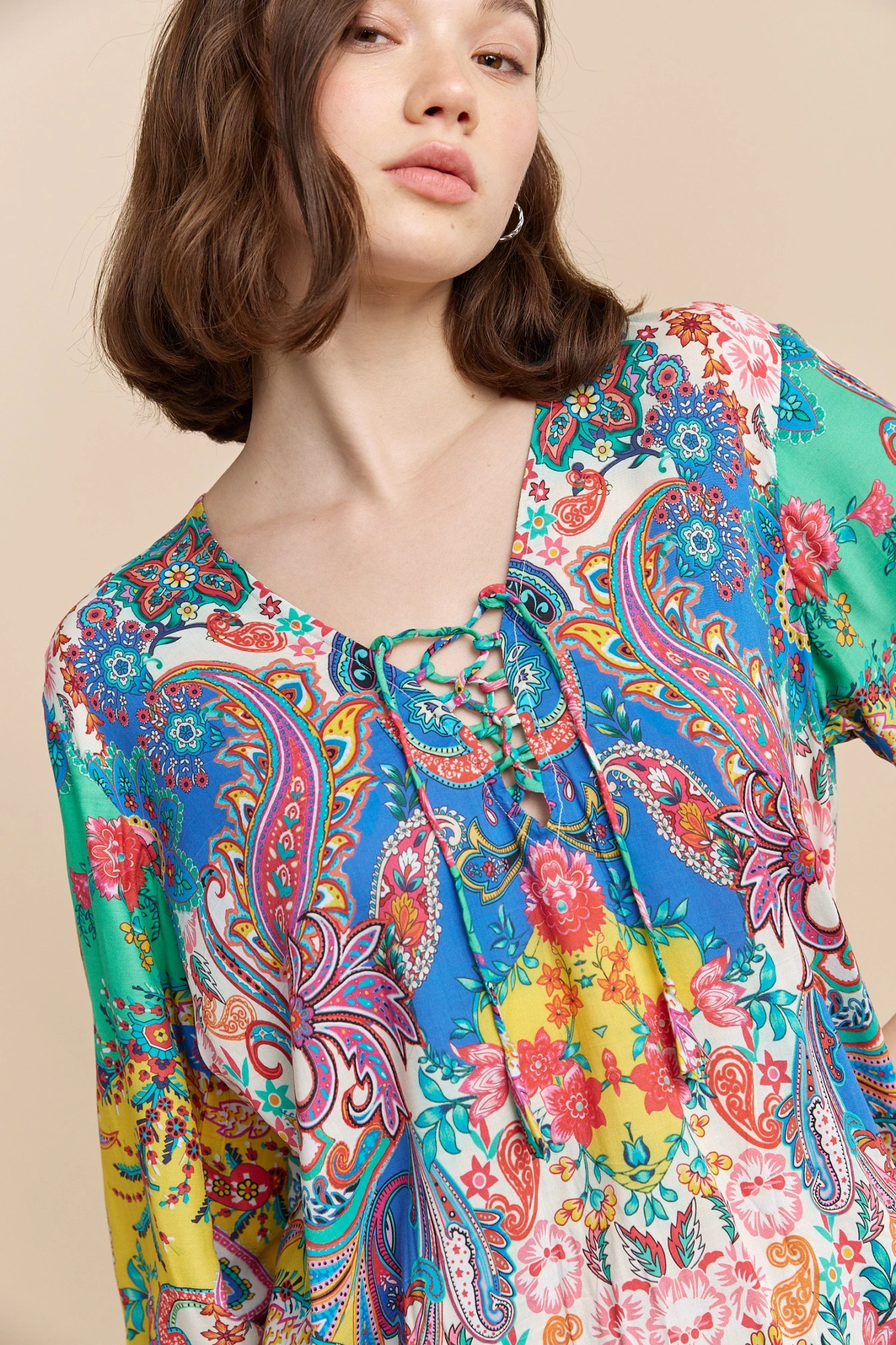 Be the first to review “Paisley Print Lace-up Blouse” Cancel reply