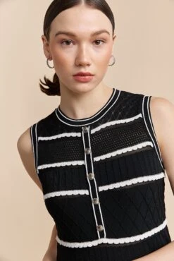 Timelessly sophisticated, this pointelle dress marries classic charm with modern flair. The intricate knit patterns whisper elegance, while the lightweight fabric ensures all-day comfort. Perfect for afternoon outings or evening soirees, its flattering silhouette pairs seamlessly with your favourite sneakers or a chic pair of heels. Let its unique textures captivate and inspire every step of your day.
