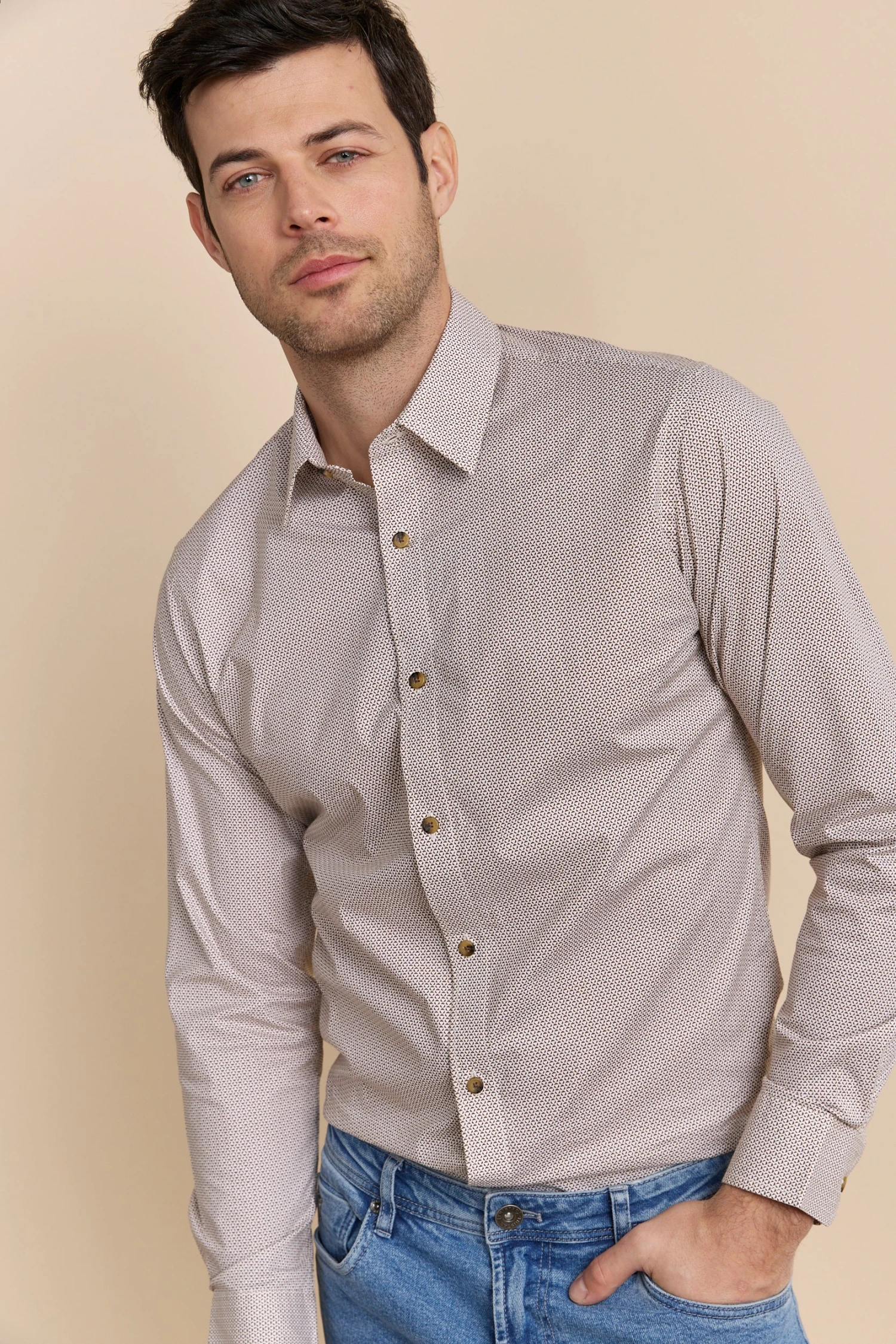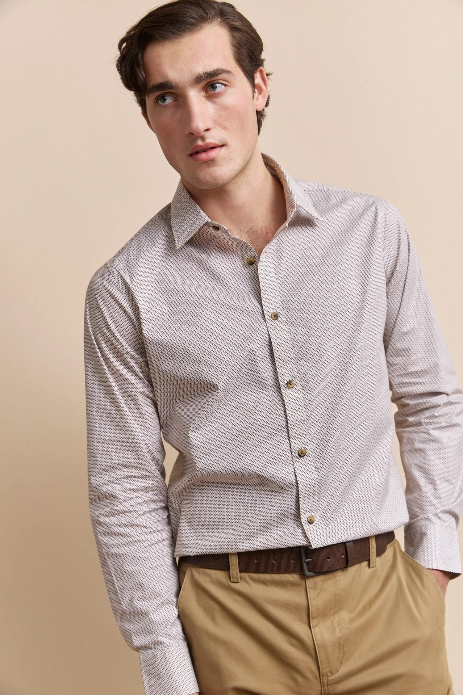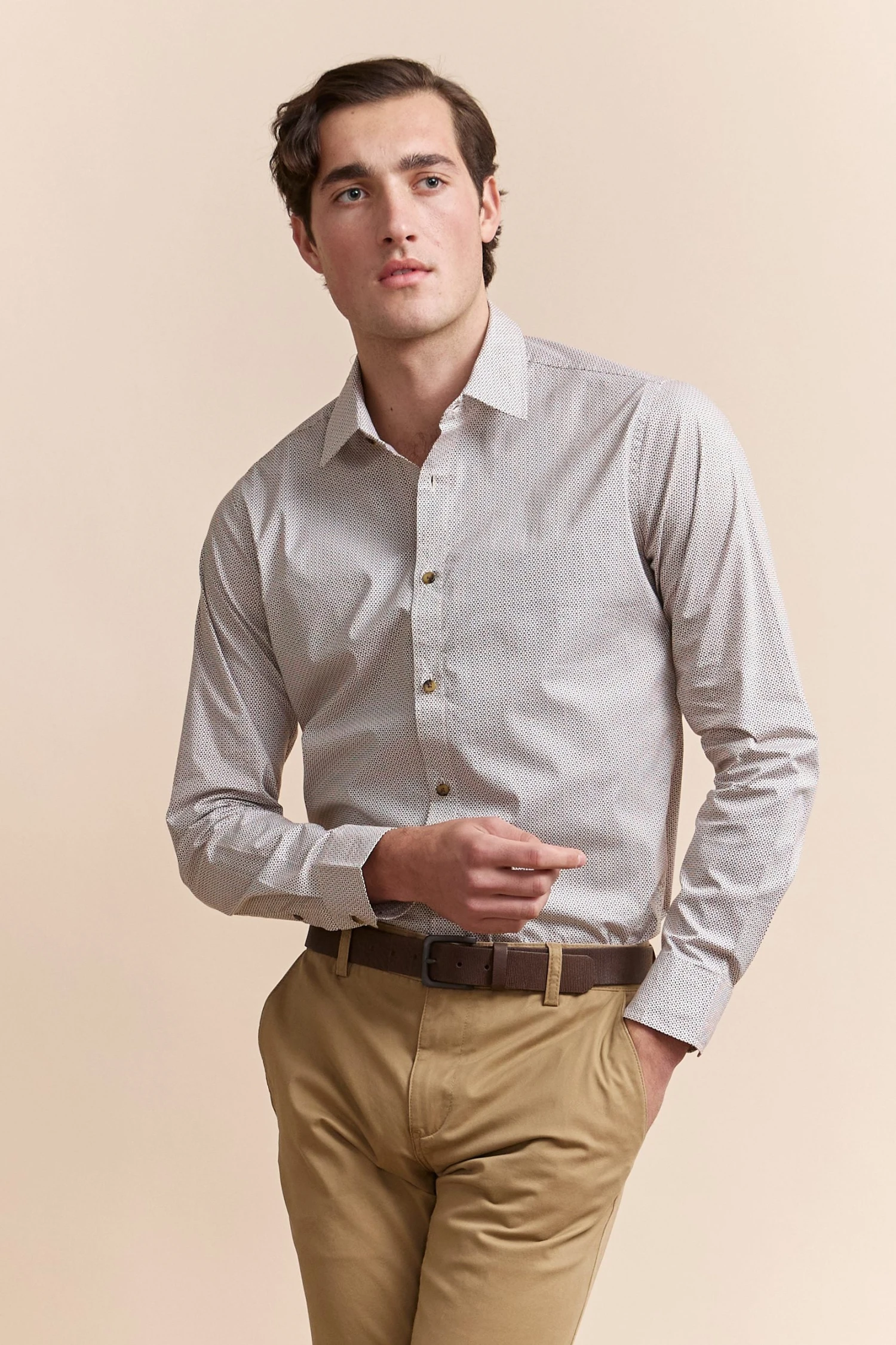 Discover your new favorite shirt, crafted from soft stretch fabric for all-day comfort. This fitted design features a subtle print, perfect for office and casual outings. Pair it with chinos for a classically cool style.