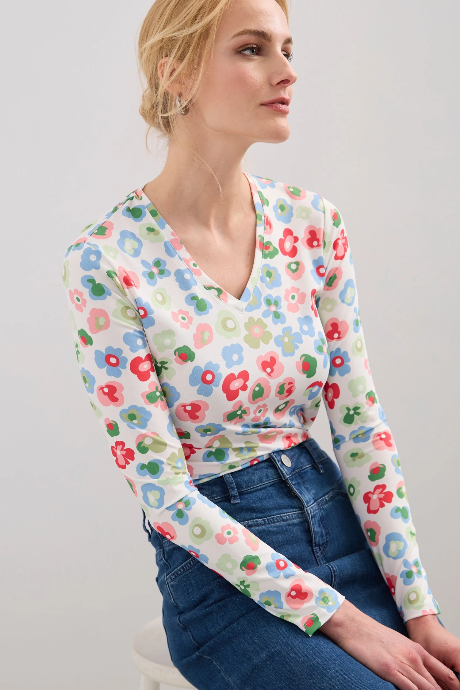Printed Long Sleeve V-neck T-shirt