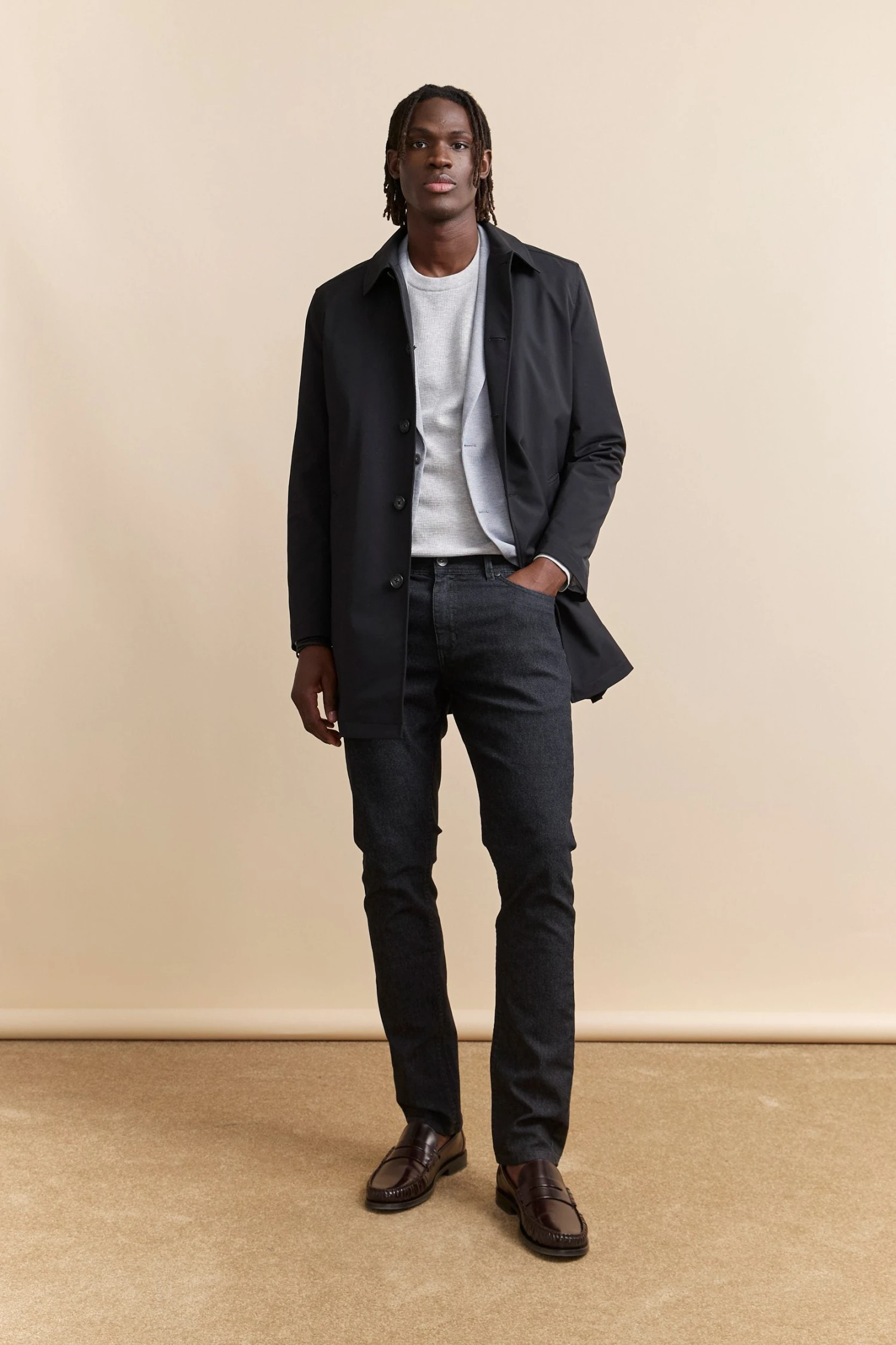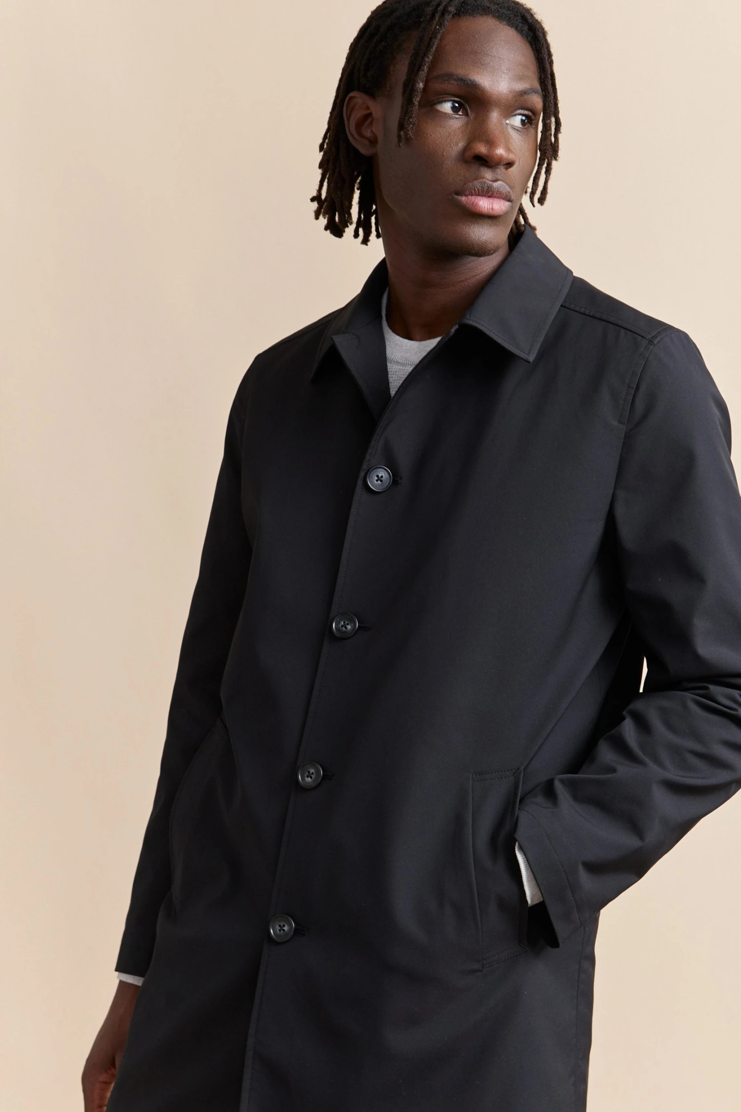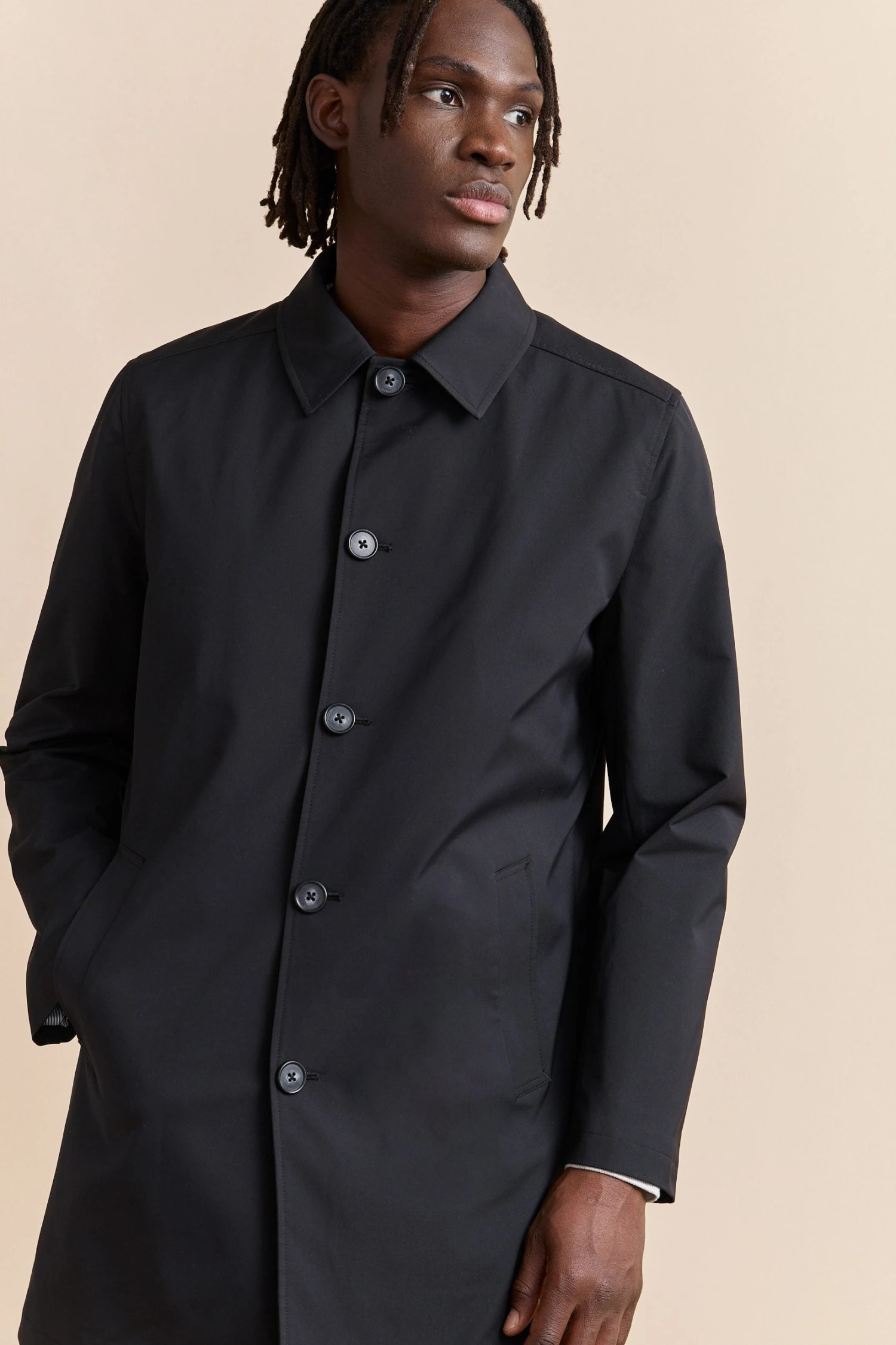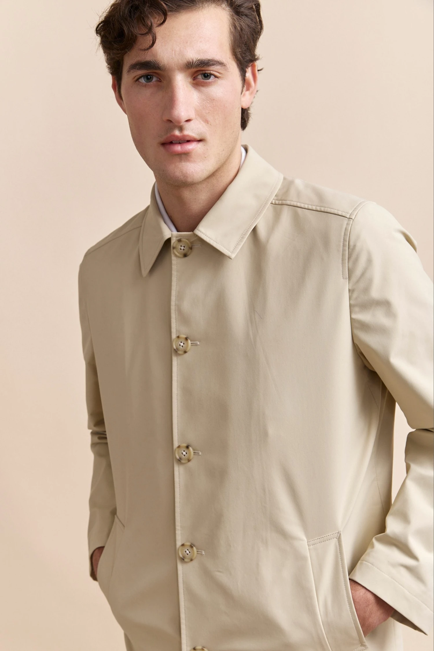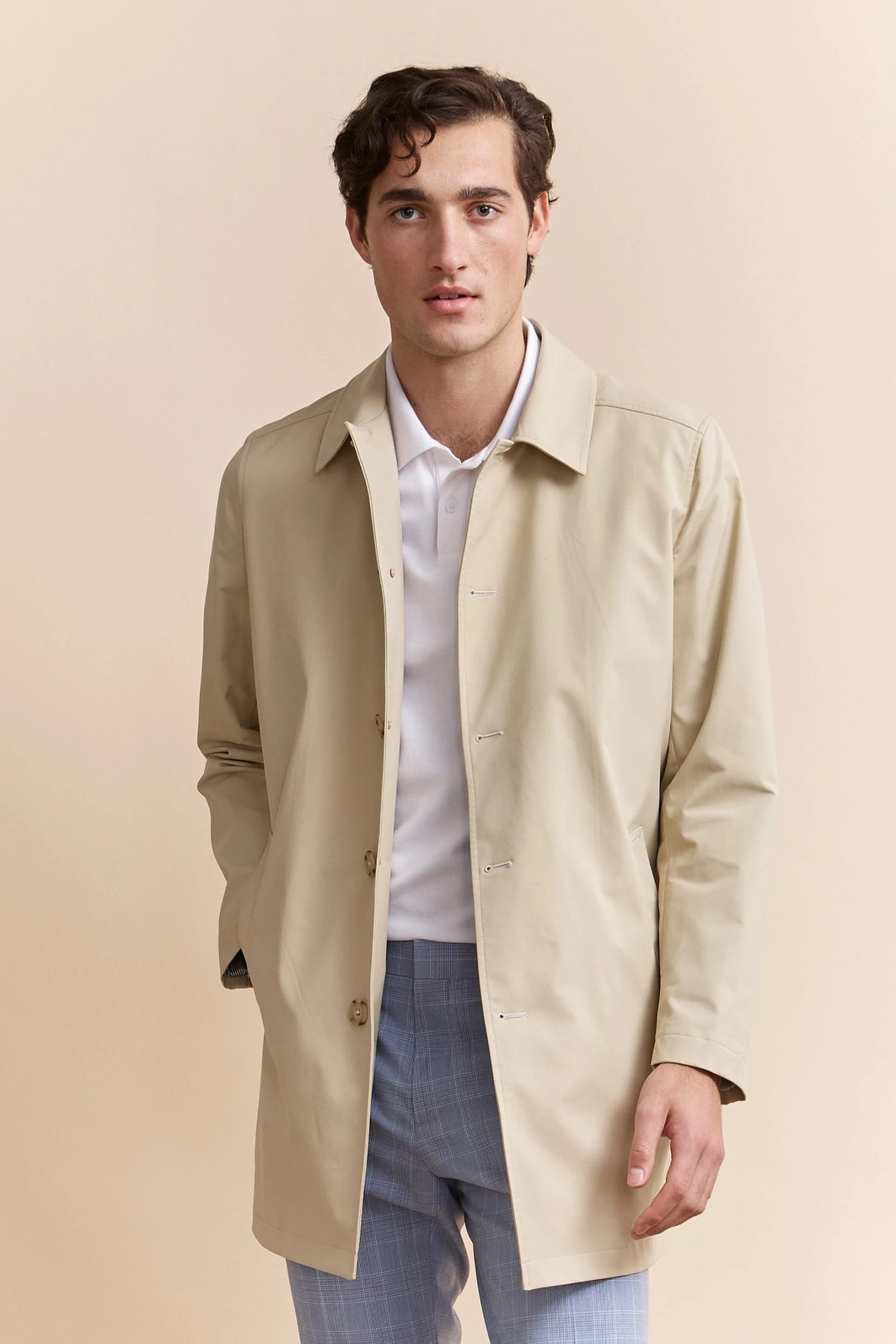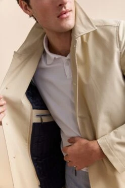 Timeless and versatile, this trench coat with a removable lining is designed to face the rain in style. Its sleek, modern design combined with high-quality, breathable fabric ensures the perfect balance of comfort and sophistication in any weather. Thanks to its water-repellent finish, raindrops bead off the fabric rather than soaking in, keeping you dry and polished. Adapt effortlessly to the seasons—remove the lining for lightweight wear on breezy spring days or keep it in for extra warmth during winter’s chill. With itst tailored fit, classic buttons, and deep pockets, this refined essential belongs in every well-curated wardrobe.