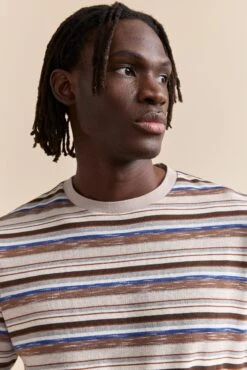 Make a statement with this striped rib collar t-shirt. Designed for the style-savvy trendsetter, the rich blend of colors adds a dash of vibrancy to your everyday look. Crafted from breathable fabric, it’s your go-to for comfort and flair. Perfect for pairing with your favorite jeans or layering under jackets for a chic ensemble.