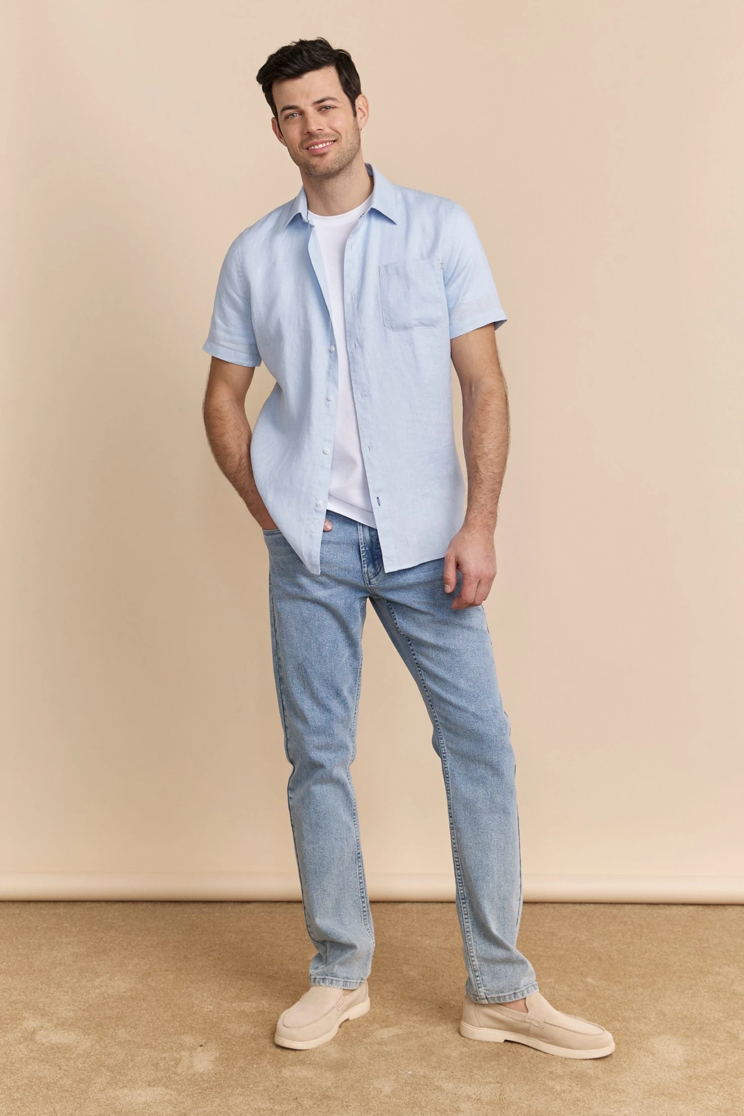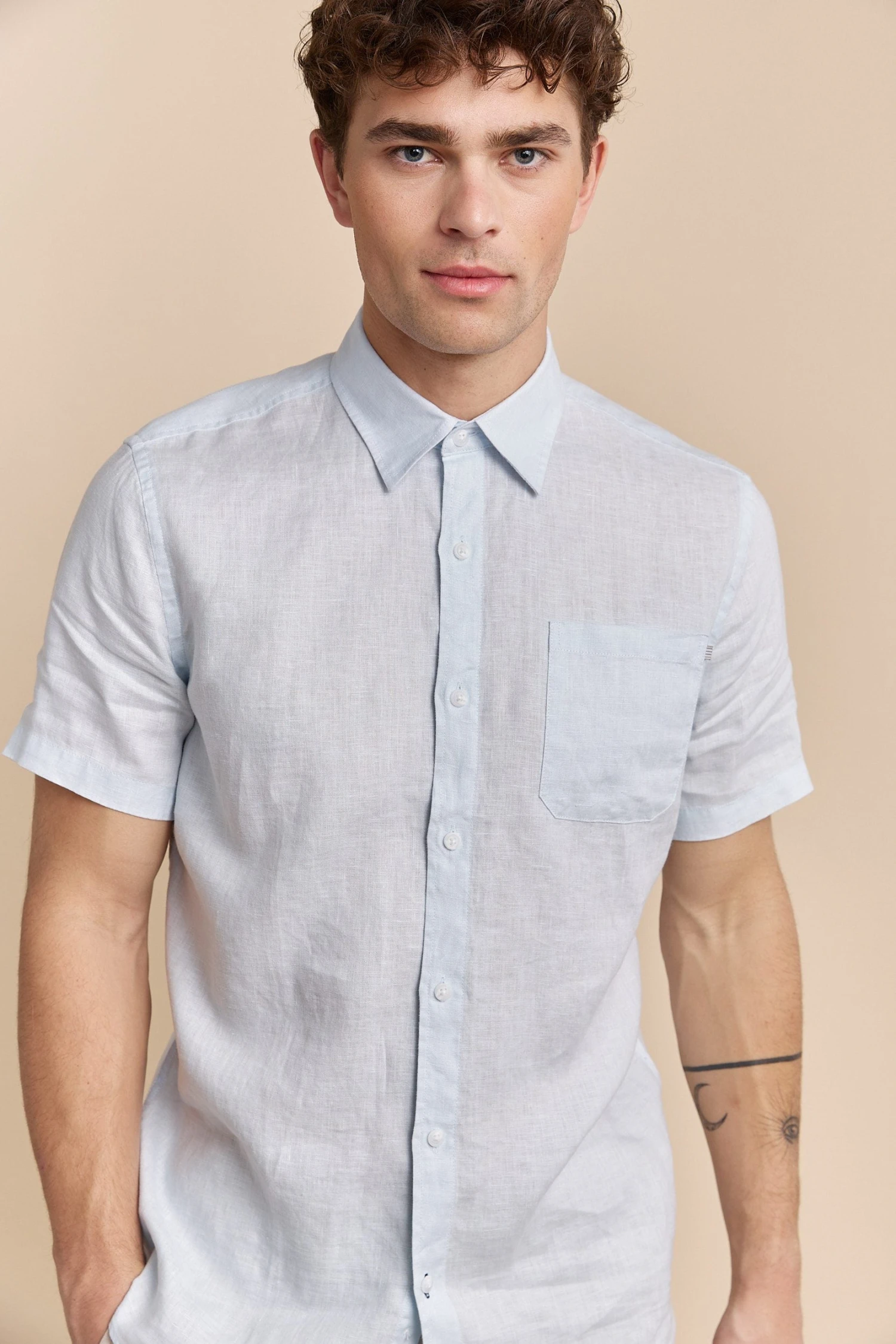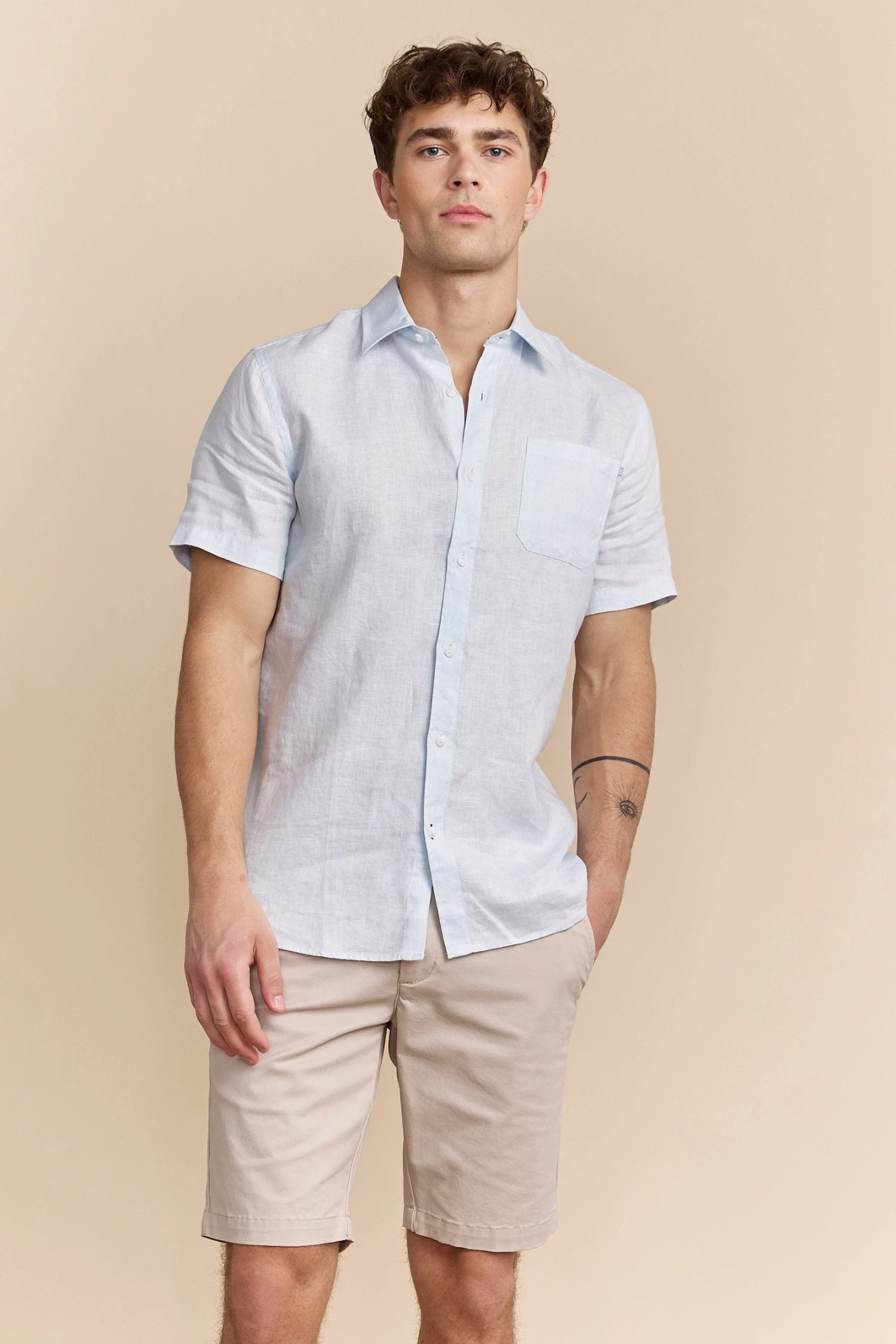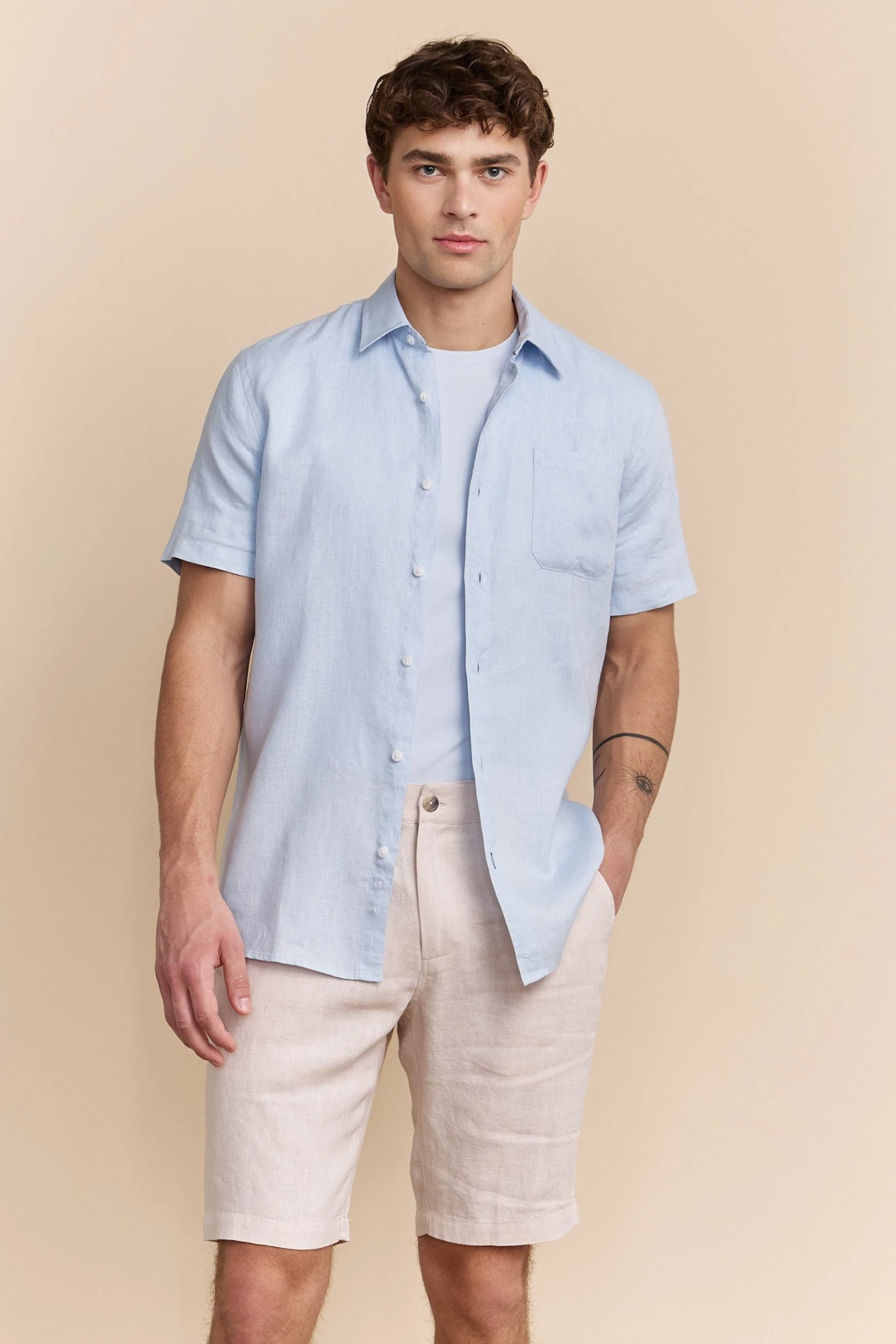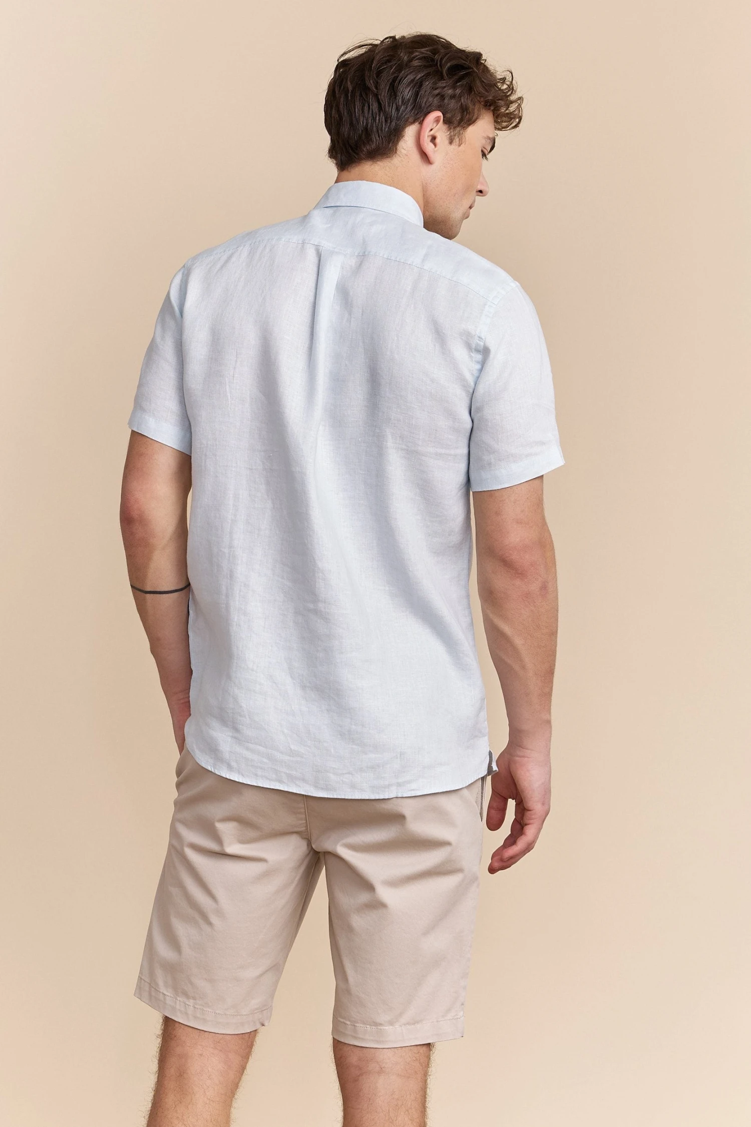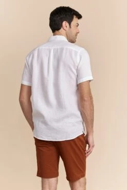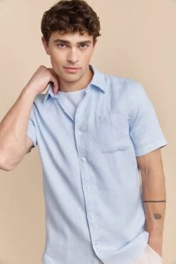 A sophisticated choice for those warm days, this semi-fitted linen shirt keeps you cool and stylish all at once. Crafted from breathable linen, it offers a relaxed yet polished look that’s perfect for both casual hangouts and seaside dining. The soft touch of this fabric against your skin ensures comfort, while the timeless design adds understated charm. Whether paired with shorts or tailored trousers, this shirt tells a story of laid-back elegance and refined taste.
