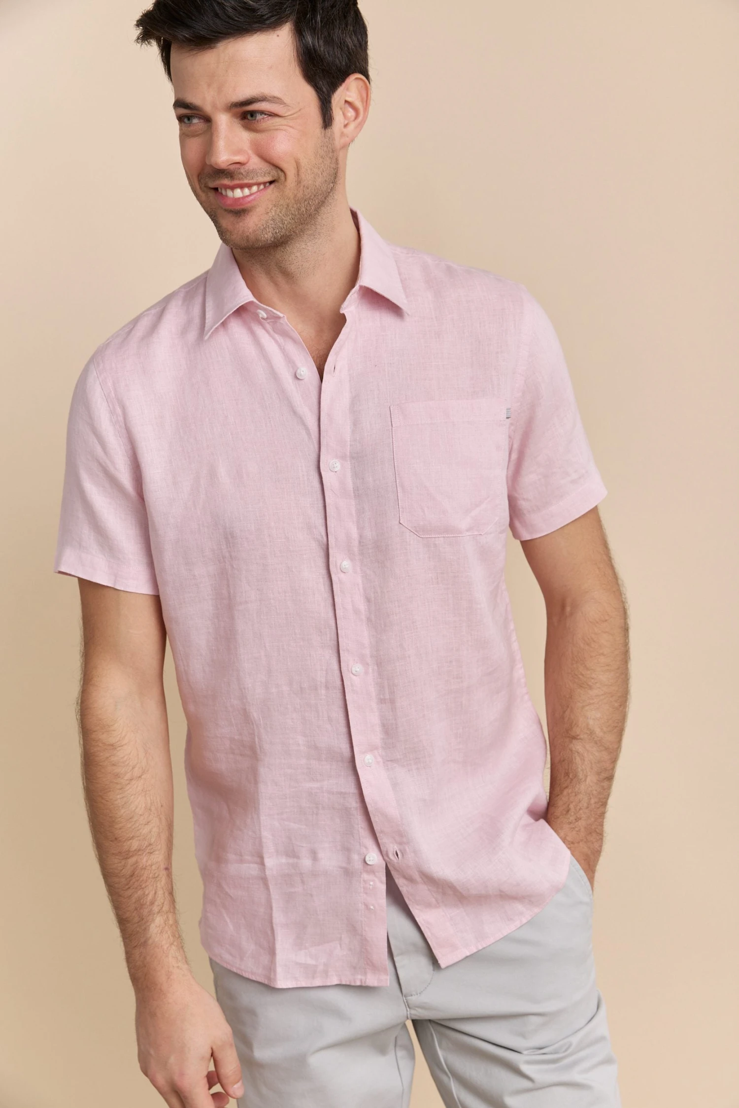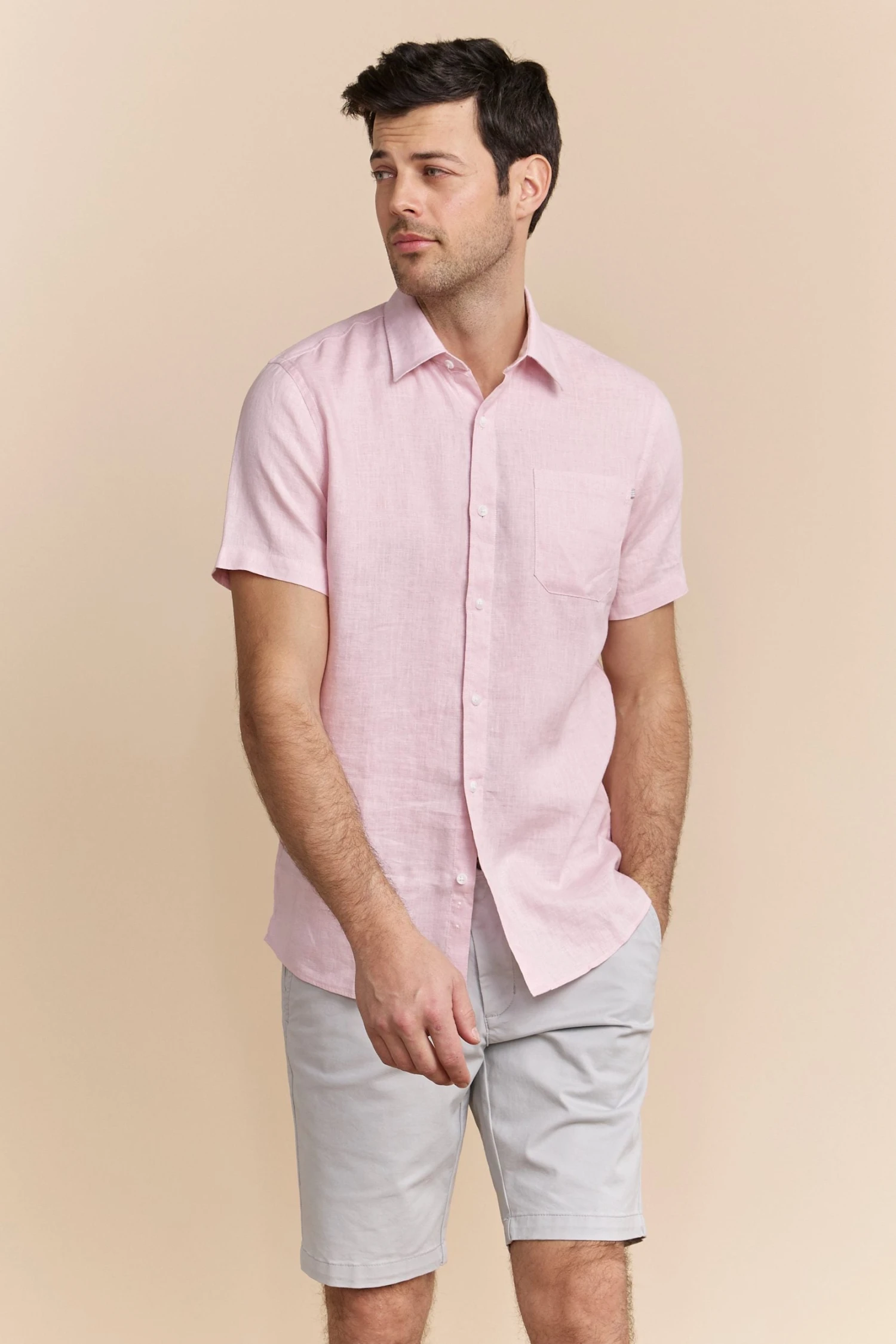 Semi-fitted Short Sleeve Linen Shirt
