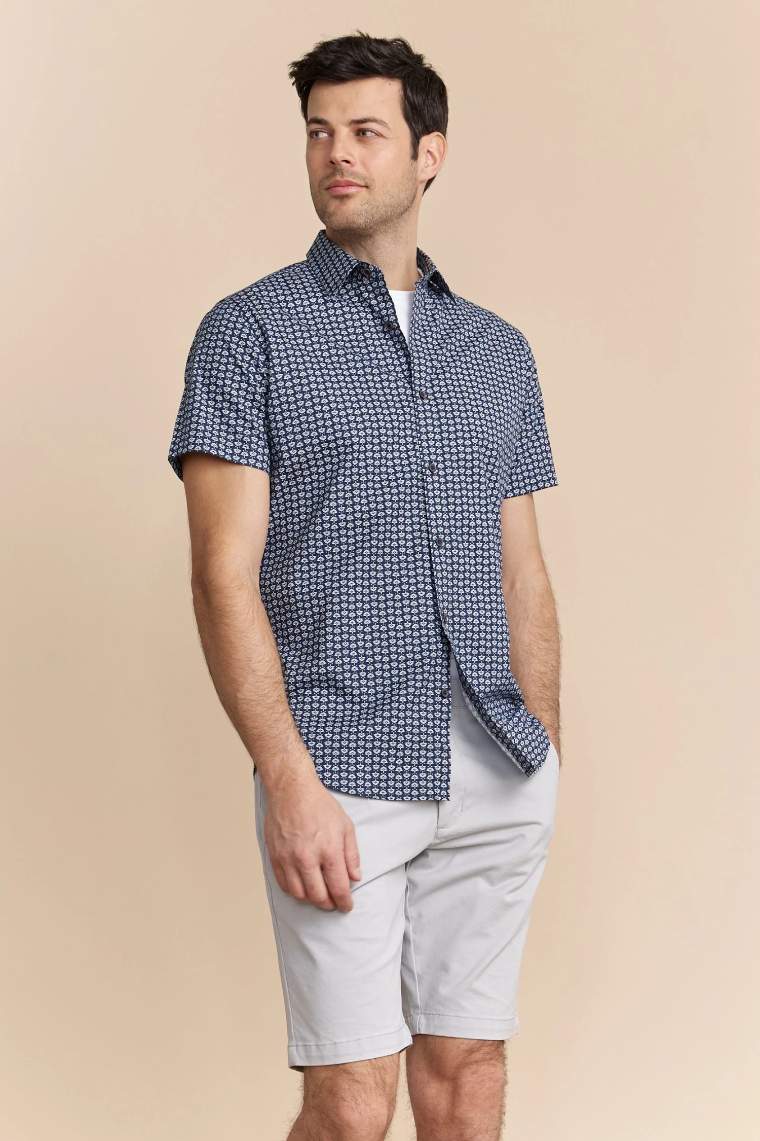 Crafted for comfort and style, this patterned short-sleeve shirt is perfect for any occasion! The stretch fabric provides a tailored fit that moves with you, offering both durability and ease. Pair it with chinos for a laid-back vibe.