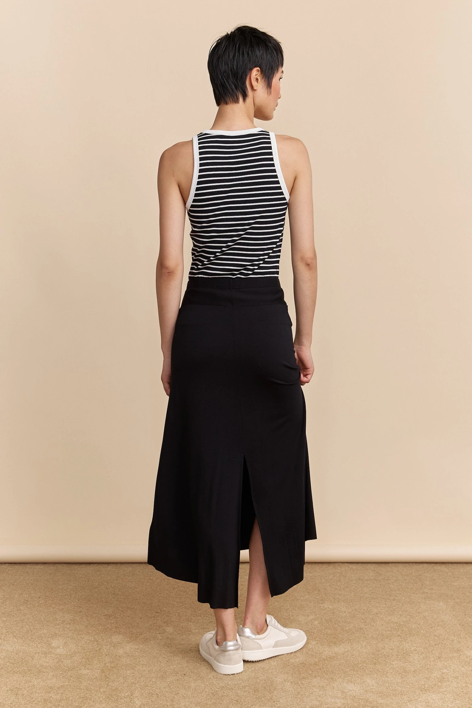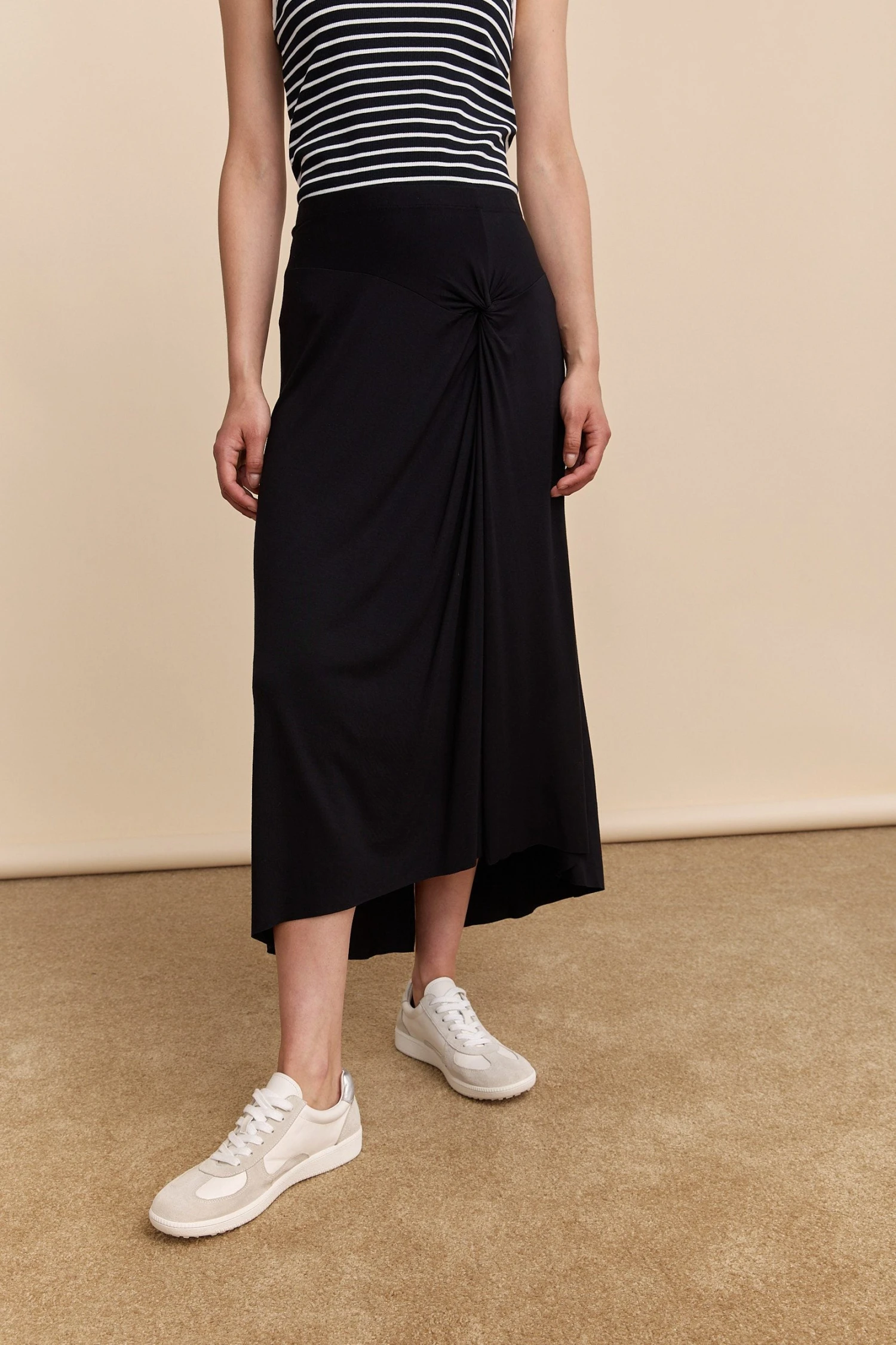 Easy to wear and effortlessly stylish, this long skirt features a twisted front detail and enhances the silhouette with its flattering cut and flowy fabric. Both elegant and comfortable, it’s a versatile wardrobe essential for everyday wear and beyond.