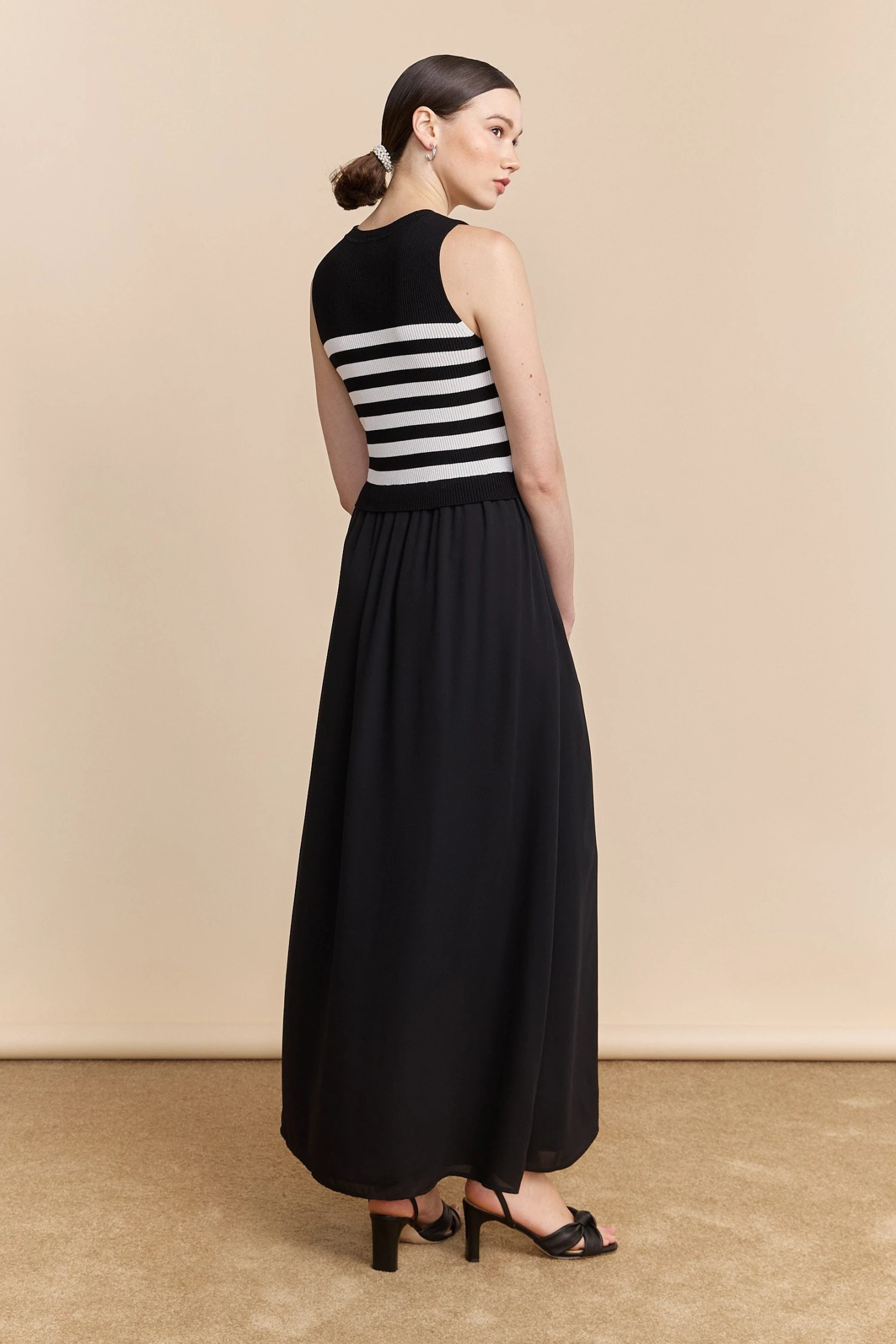 Unleash your sophisticated side with this striking sleeveless maxi dress! The chic black and white stripe design combines timeless elegance with modern flair. Made from soft, breathable fabric, it ensures comfort for all-day wear, while the side slit adds a hint of alluring movement. Ideal for those seeking a balance of style and comfort, this dress is perfect for any occasion.