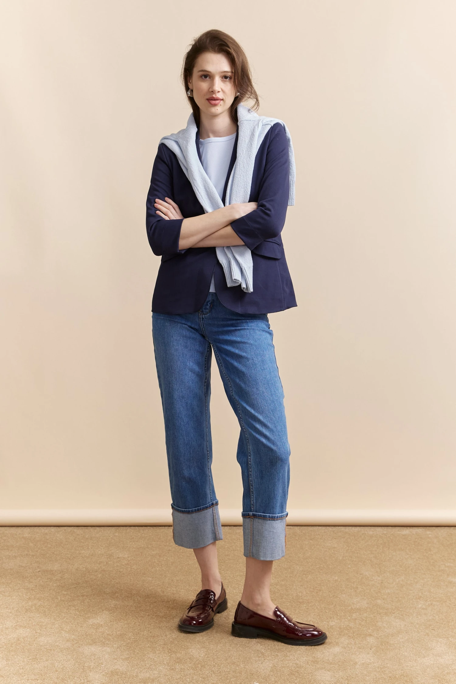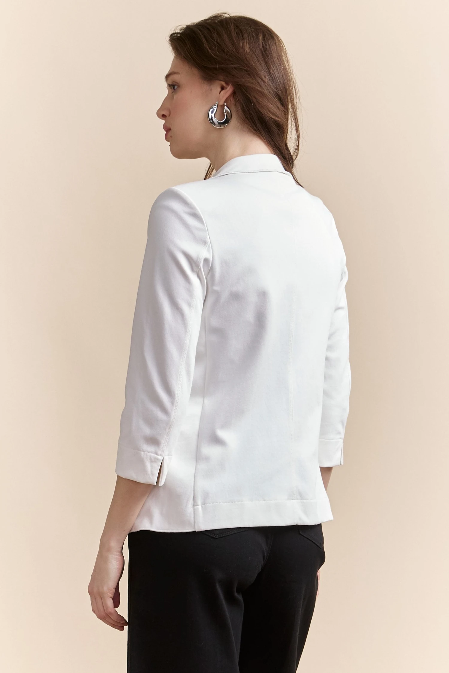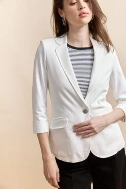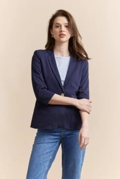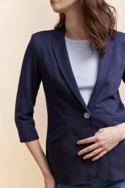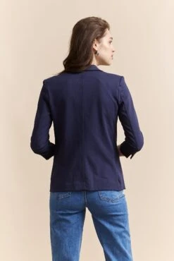 Meet your new go-to blazer—sleek and form-fitting, designed for the modern multitasker. Crafted with a gentle stretch fabric that conforms beautifully to your shape, this fitted blazer adds a touch of sophistication and comfort to any outfit. Ideal for elevating your everyday look, it’s the stylish companion for coffee meetings or gallery visits.