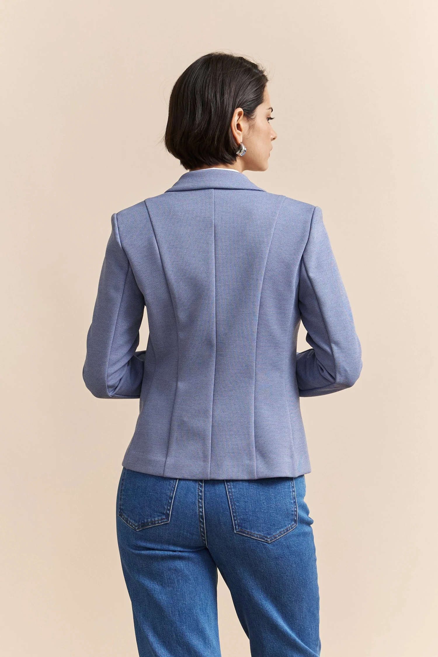 Meet your new go-to: a stretch fitted jacket that brings polish and comfort together. With its sleek silhouette and soft touch, this jacket smoothly transitions from the boardroom to after-hours. Its premium fabric ensures flexibility and breathability, making it perfect for conquering your day with confidence. Pair it with your favourite jeans for a casual flair, or complement it with tailored pants for a refined ensemble. The subtle detailing speaks sophistication, while the adaptable fit takes you wherever your plans unfold.