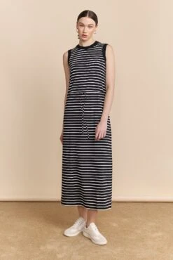 Discover effortless style with this striped jersey maxi dress! Crafted for both comfort and elegance, the lightweight fabric drapes beautifully, making it your ideal pick for sunny strolls or casual gatherings. The timeless stripes add a touch of chic sophistication, ensuring you stay on-trend all season long. Customizable with a waist tie for that perfect fit; pair with your favourite sneakers for a laid-back look.