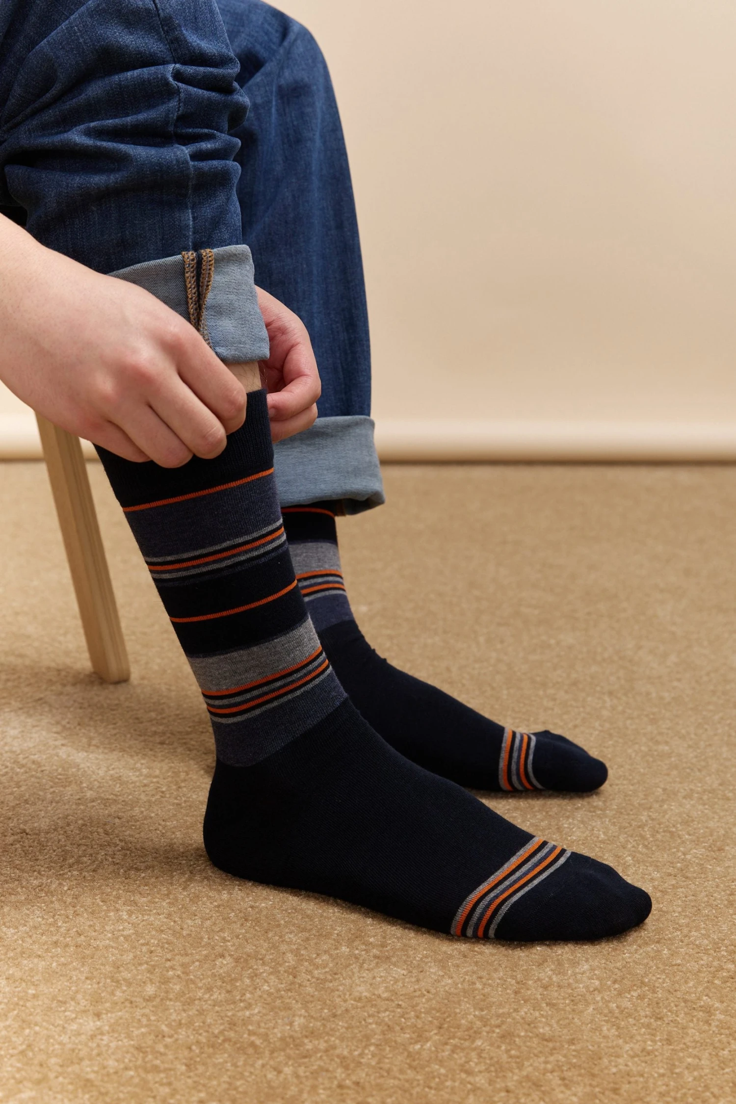 Indulge in the perfect blend of comfort and style with these timeless striped socks. Made from a soft, breathable material, these socks promise all-day comfort without compromising on elegance. The striking pattern adds a sophisticated touch to any outfit, making them ideal for both casual and dressy occasions. Let your feet feel the luxury they deserve!