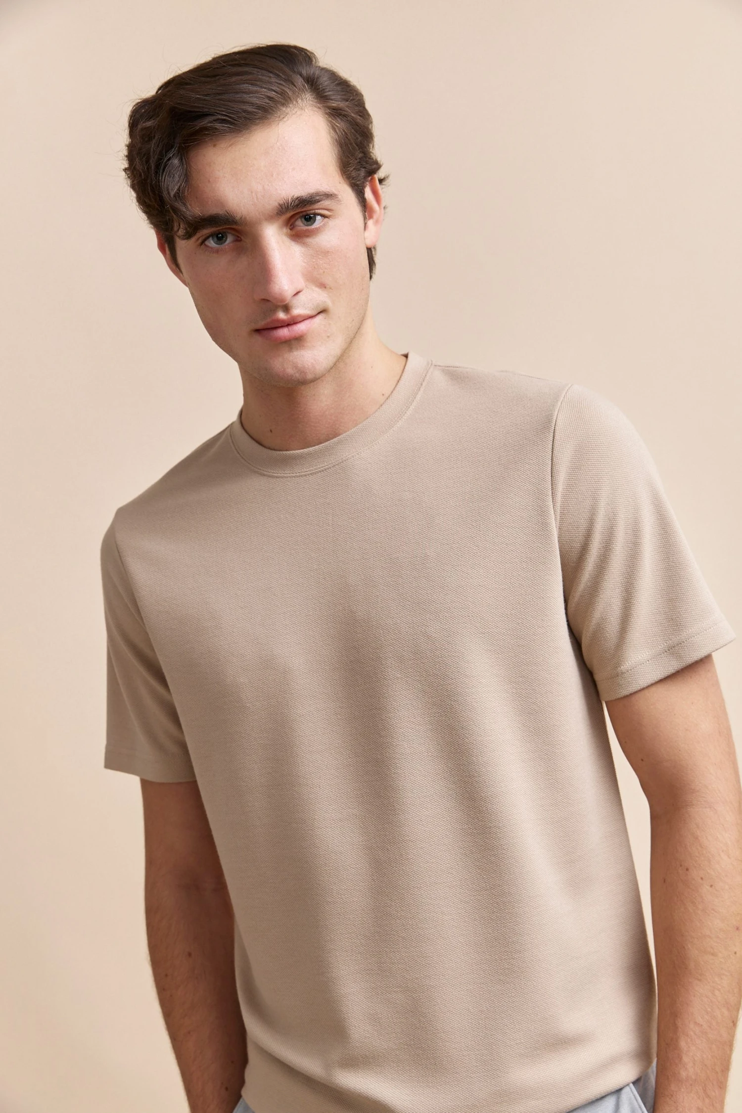 Discover timeless style in this textured crew neck tee. Tailored for the modern man, it brings comfort and sophistication to your everyday wardrobe. Crafted from premium materials, this t-shirt promises enduring softness and a perfect fit.
