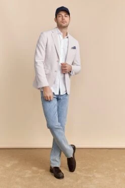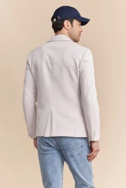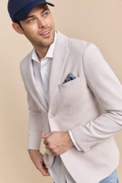 A stylish choice for the discerning gentleman! This textured knit extra-fitted blazer pairs cutting-edge tailoring with ultimate comfort. Perfect for the modern man, its refined fit and soft texture bring a touch of sophistication to any look.