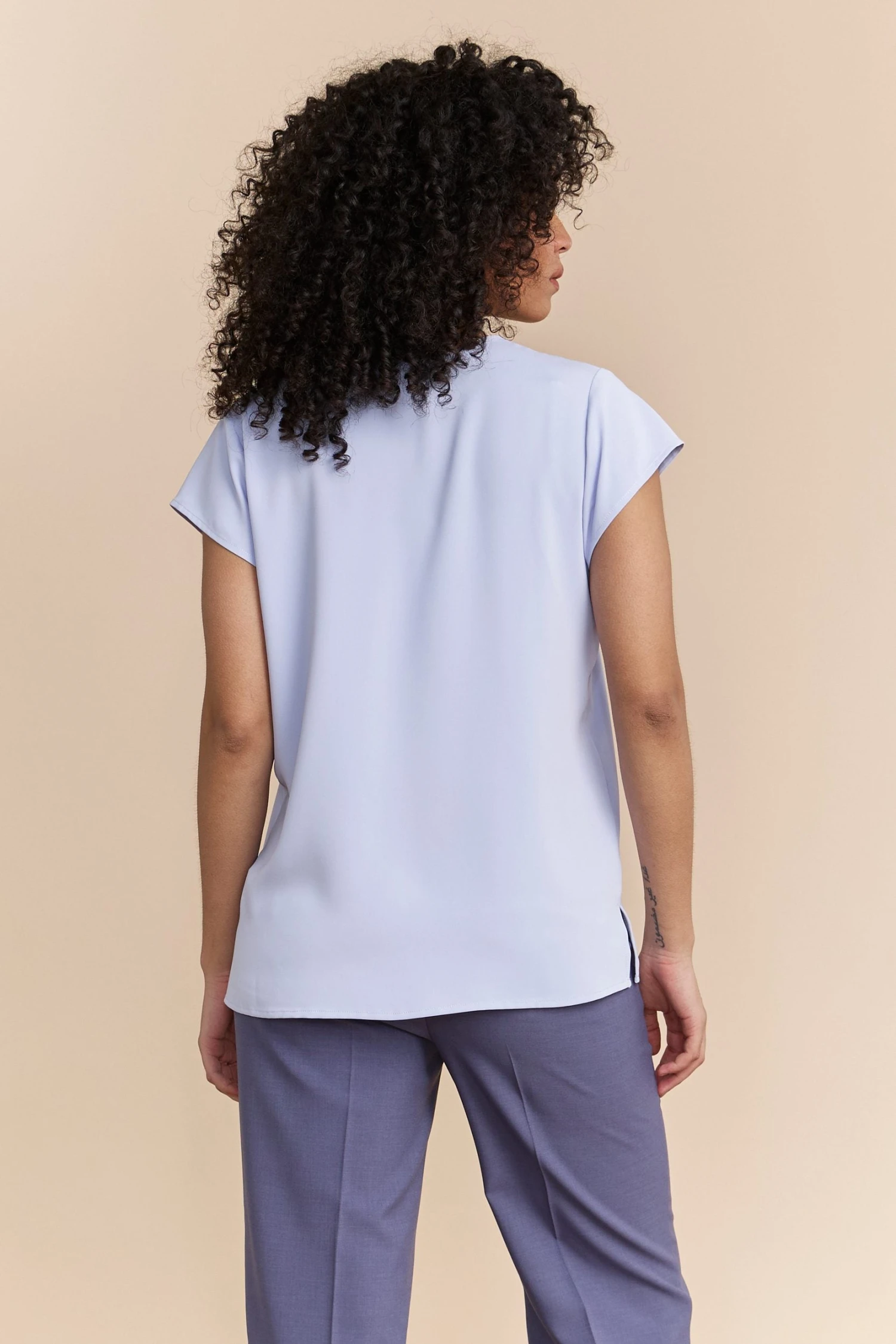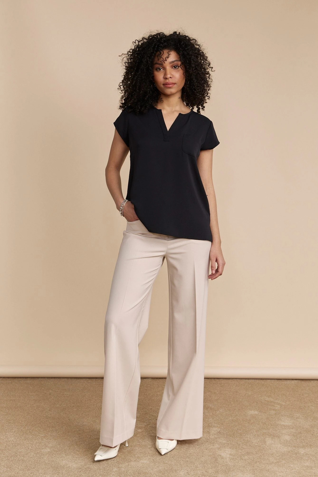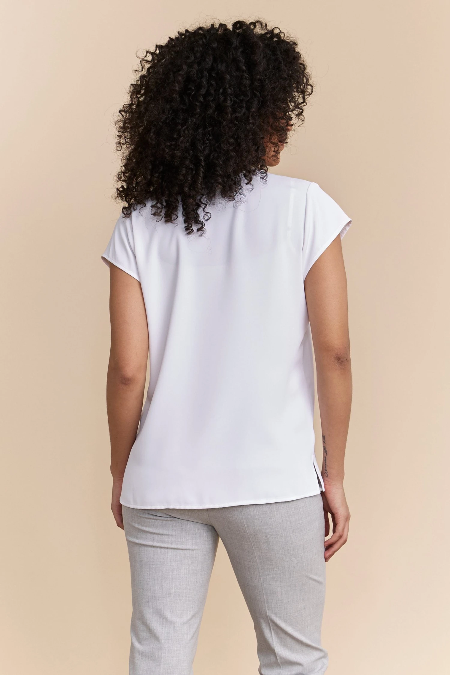 This short-sleeve top, both modern and timeless, is a must-have in any wardrobe with its distinctive charm. It suits both office days and casual outings alike. For a contemporary look, pair it with elegant wide-leg pants.