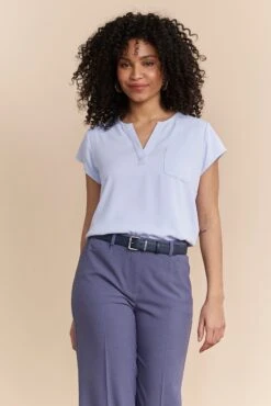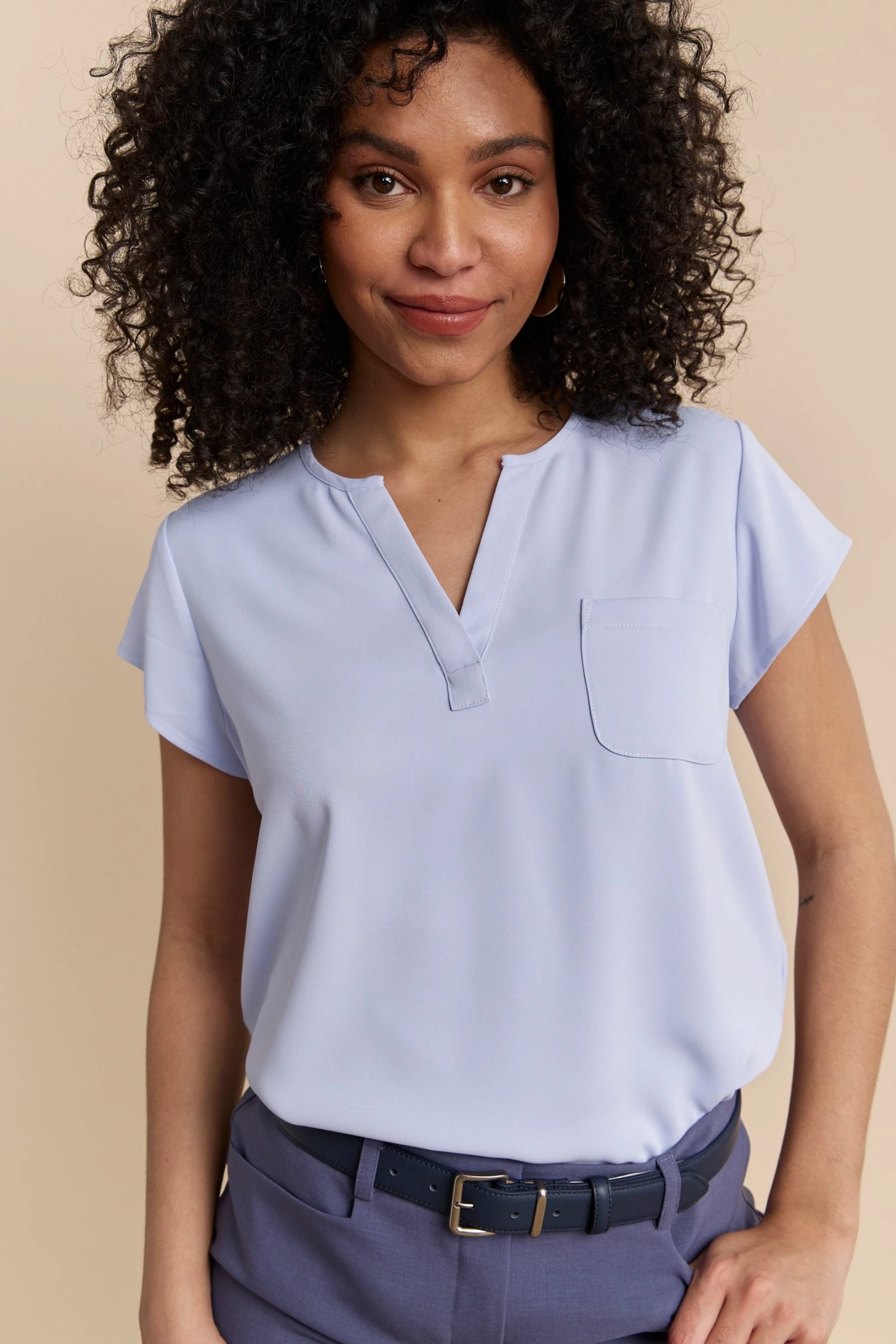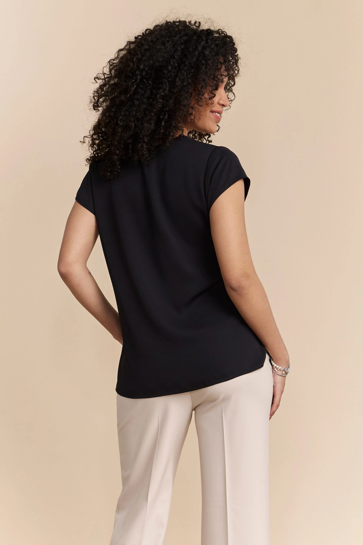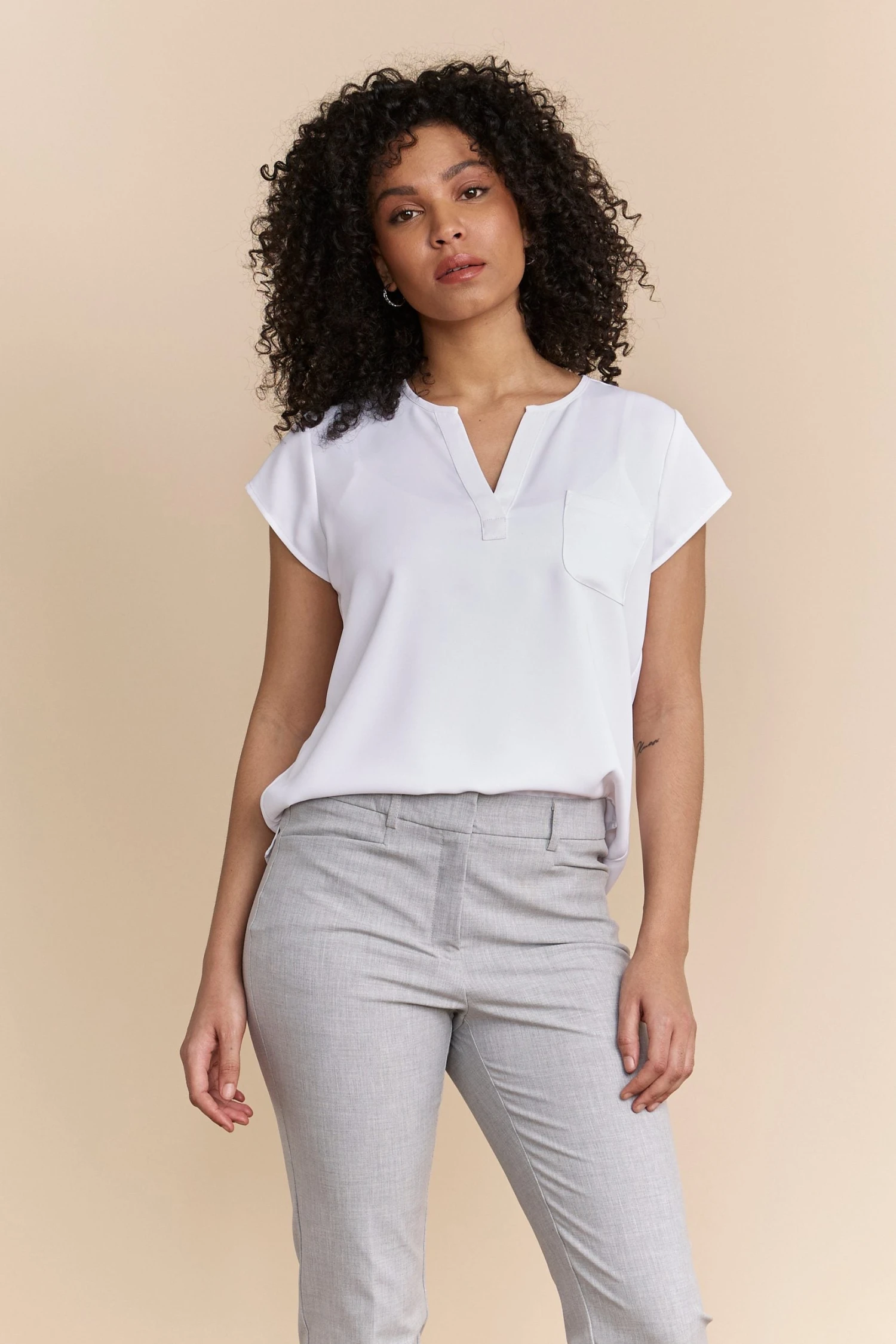 This short-sleeve top, both modern and timeless, is a must-have in any wardrobe with its distinctive charm. It suits both office days and casual outings alike. For a contemporary look, pair it with elegant wide-leg pants.