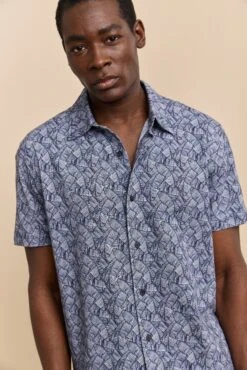 This cotton shirt features a subtle tropical leaf print, combining relaxed charm with modern refinement. Its soft, breathable fabric ensures all-day comfort, perfect for casual summer outings or travel.