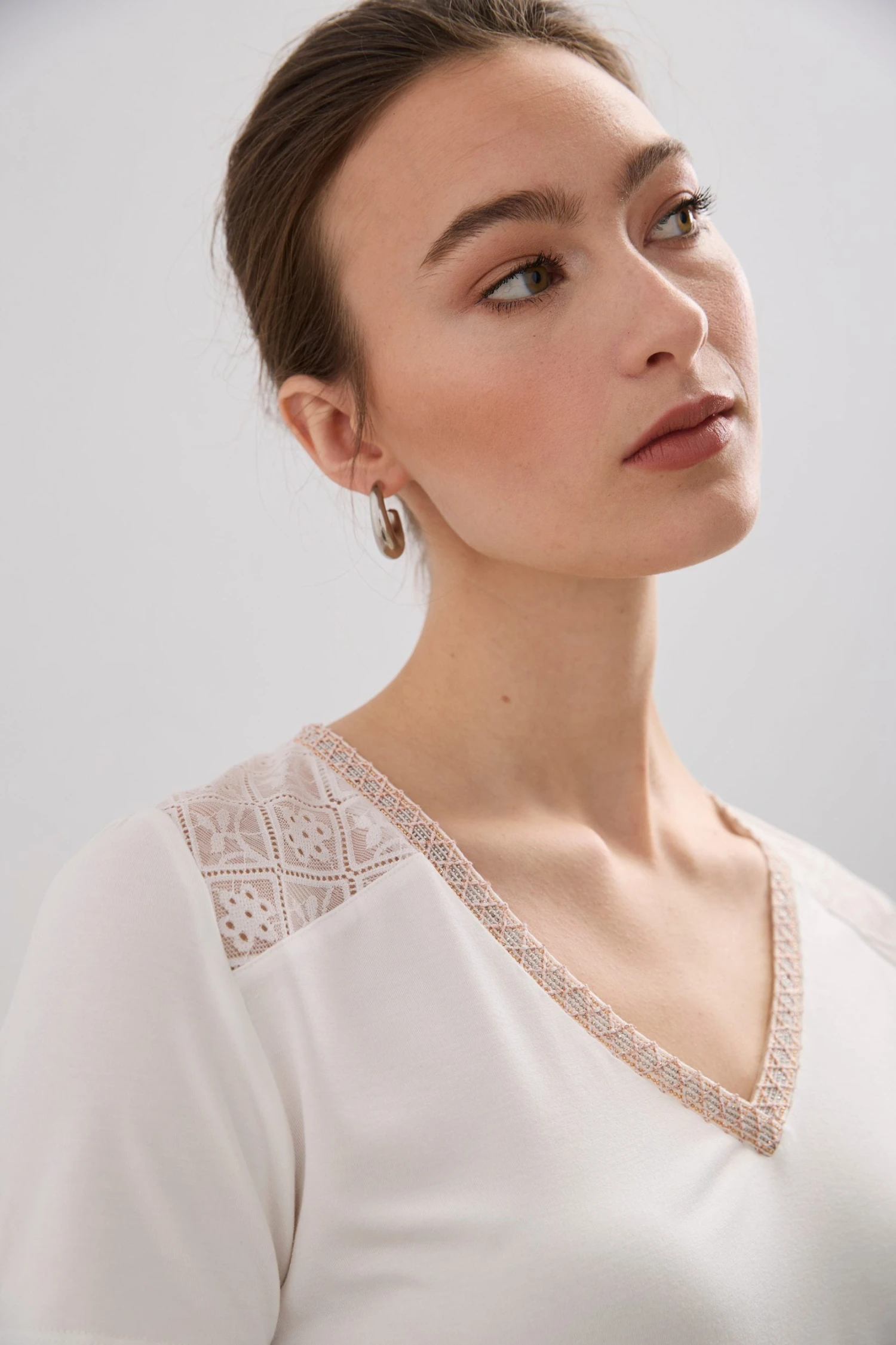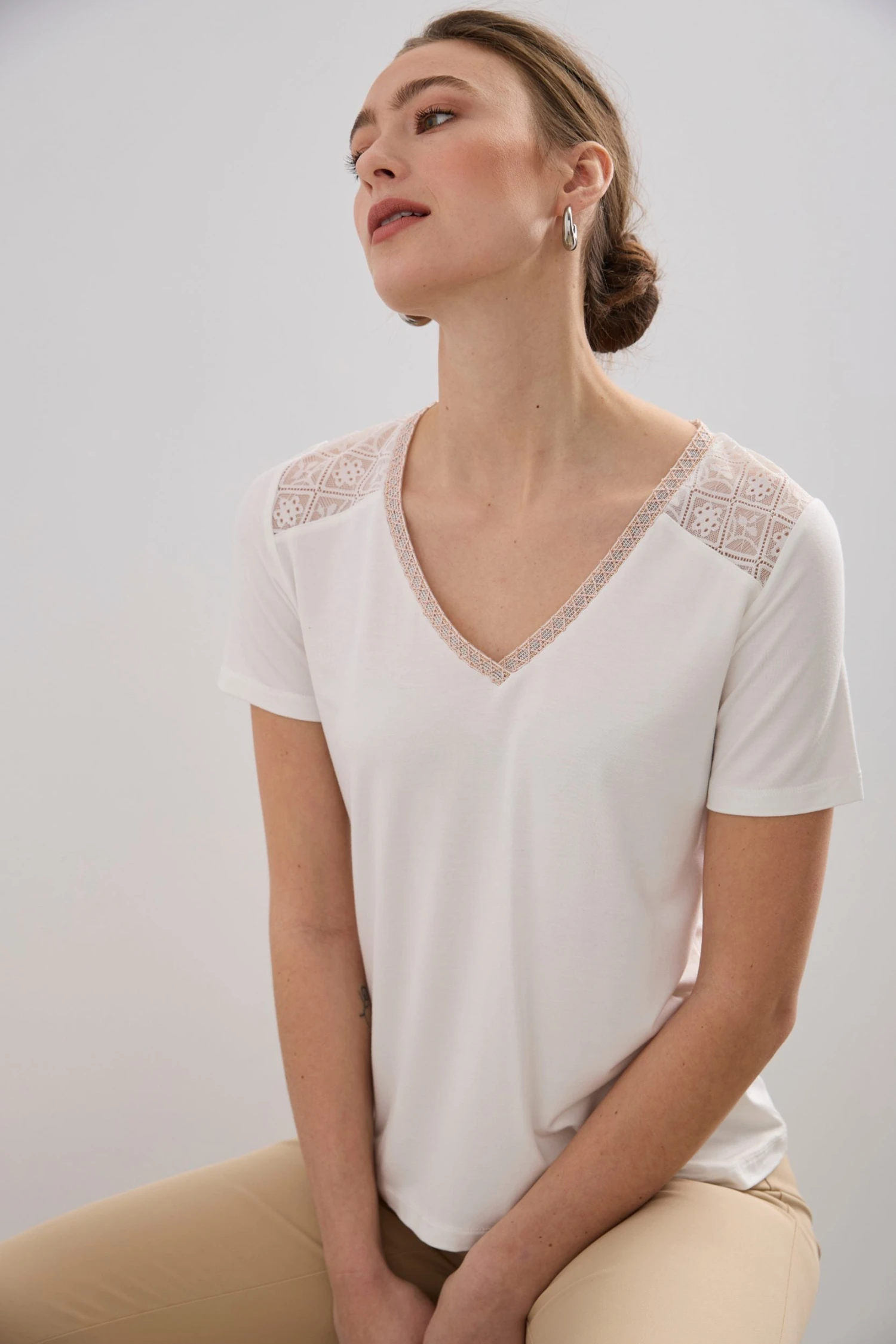Be the first to review “V Neck Lace Yoke T-shirt” Cancel reply