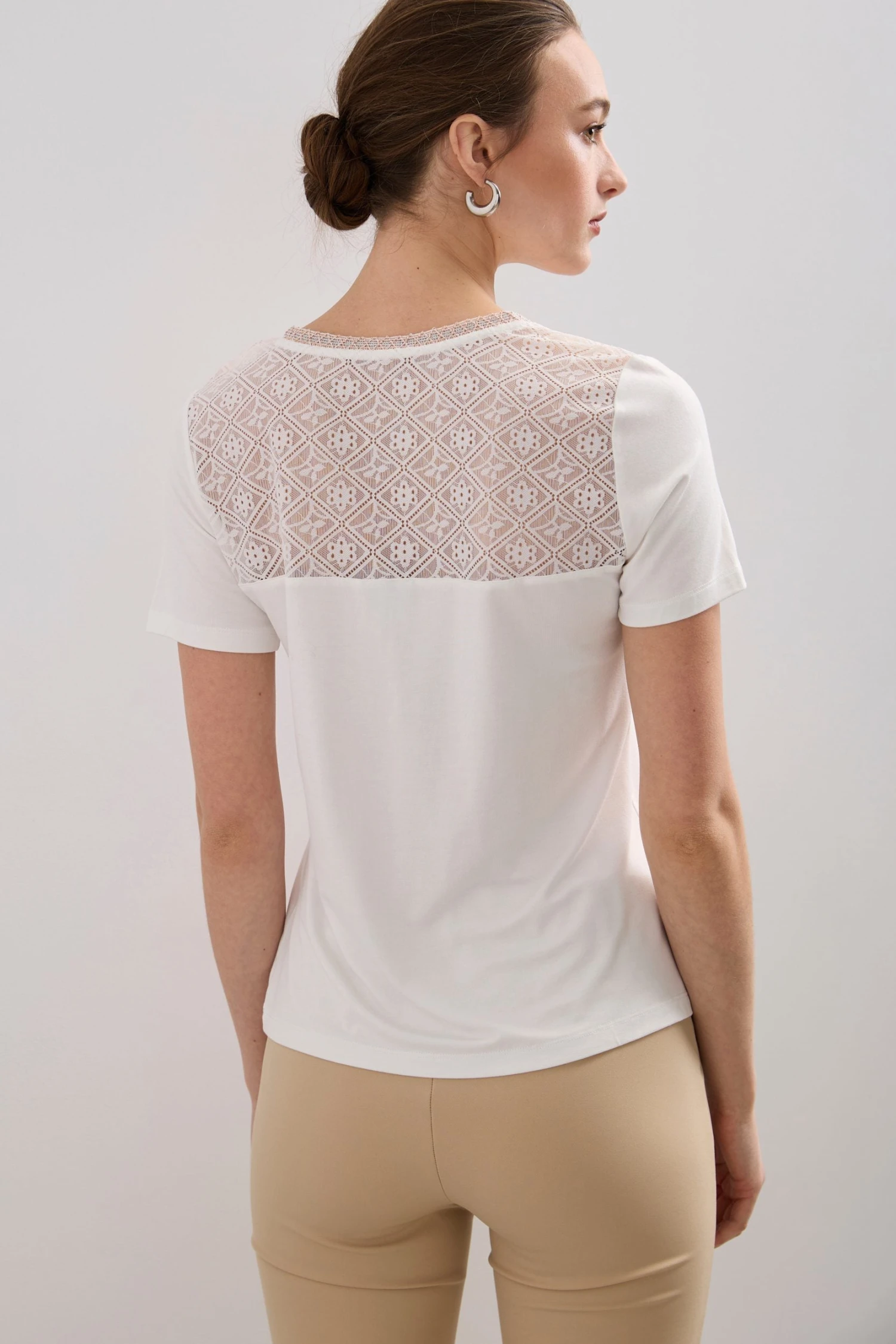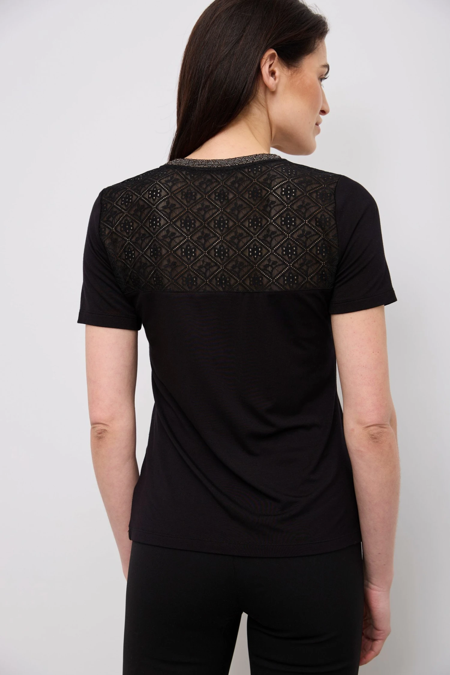 V Neck Lace Yoke T-shirt