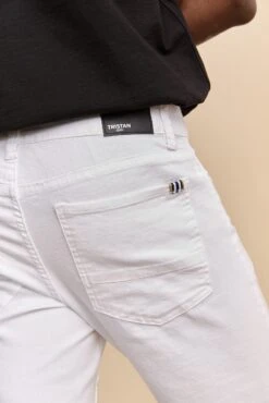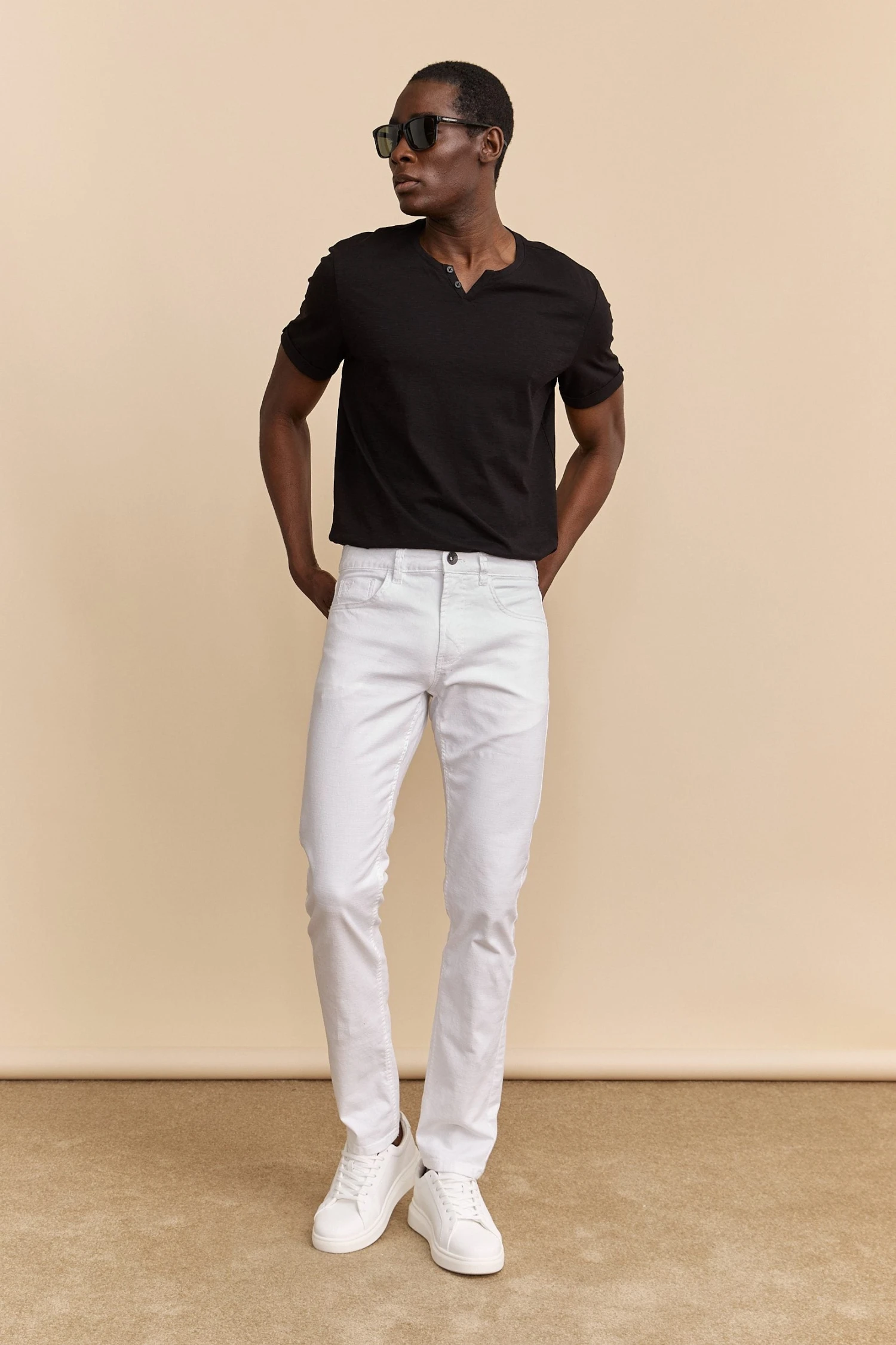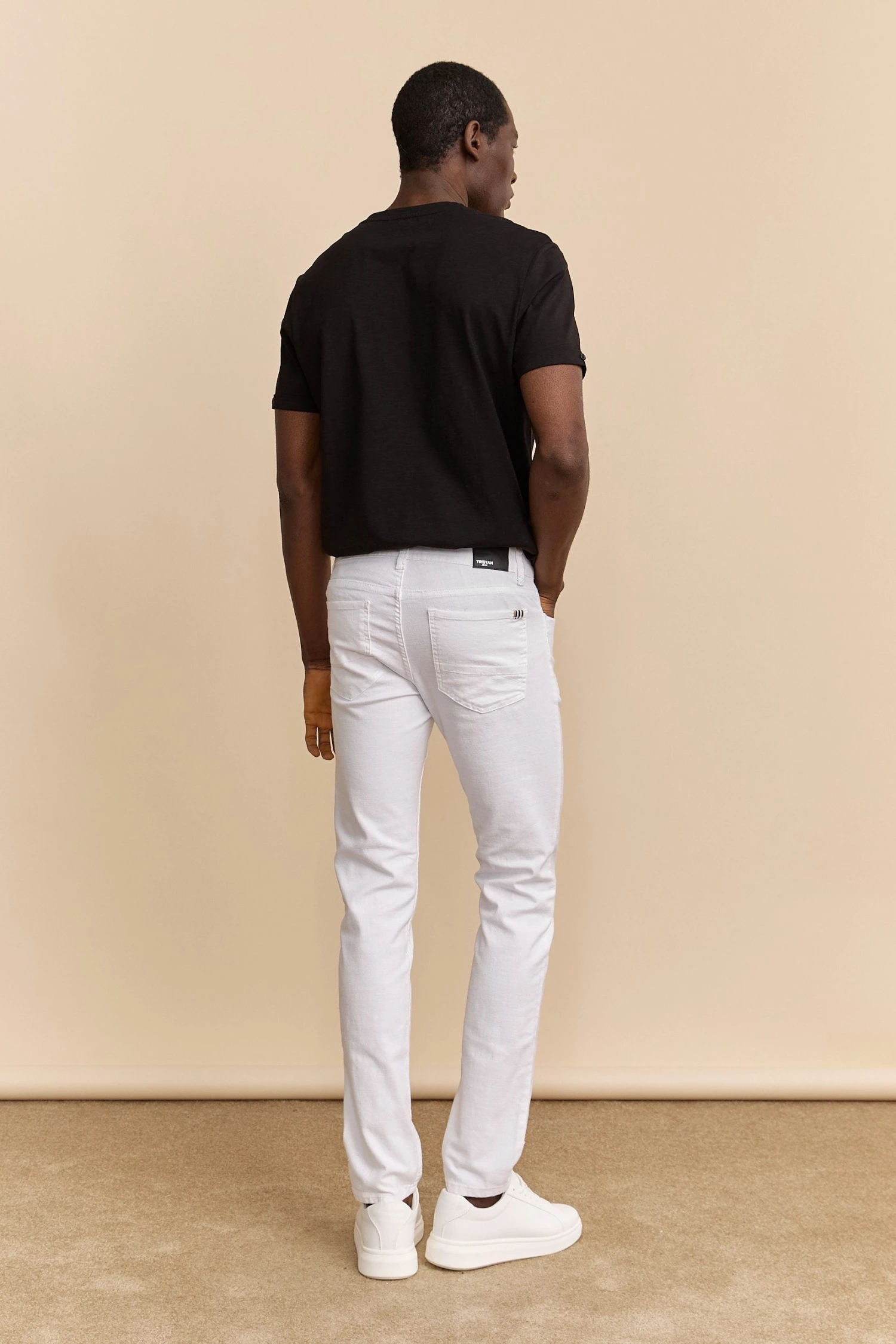Crafted from subtly textured fabric, these slim-fit white pants (with 5 pockets) offer a refined look suited for urban living. Versatile and easy to style, they pair just as well with a tailored shirt as with a more relaxed top. Designed with quality and comfort in mind, they ensure easy care and lasting wear.