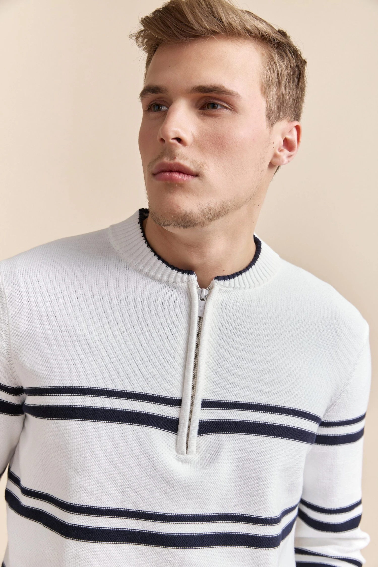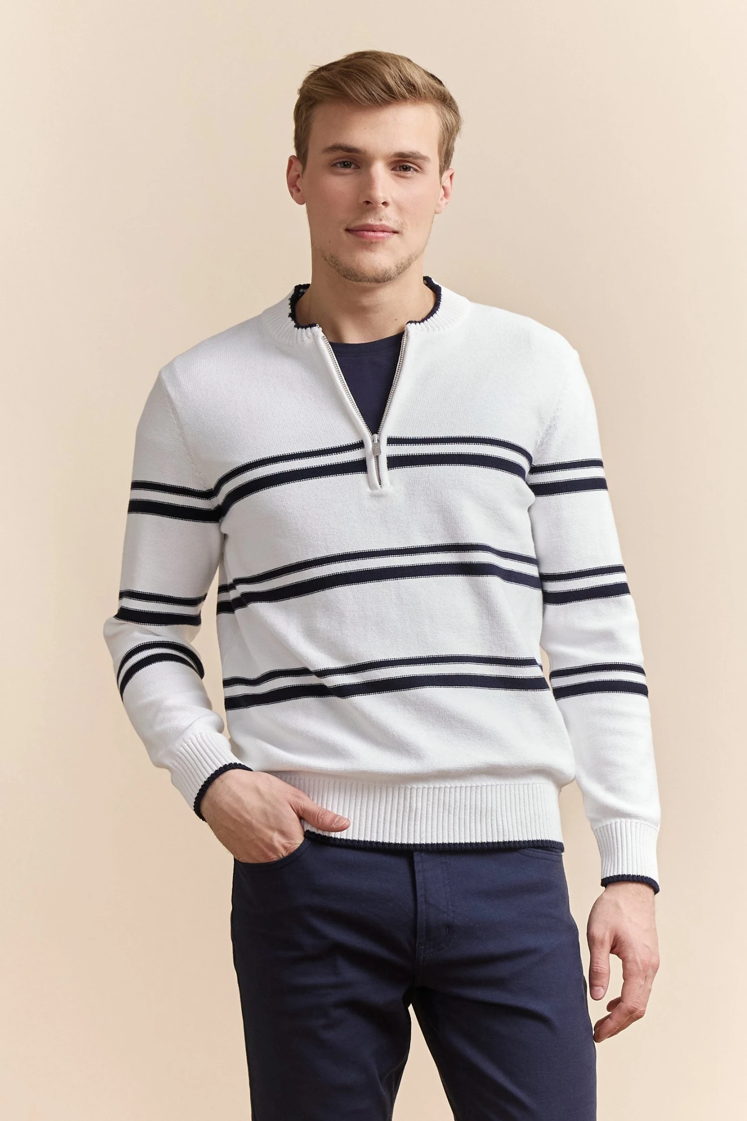 Sail into style! This zip collar sweater features chic nautical stripes that capture effortless coastal charm. Crafted from soft, breathable fabric, it guarantees comfort while enhancing your wardrobe with a touch of maritime sophistication. Perfect for your moments of relaxation or cool evenings.
