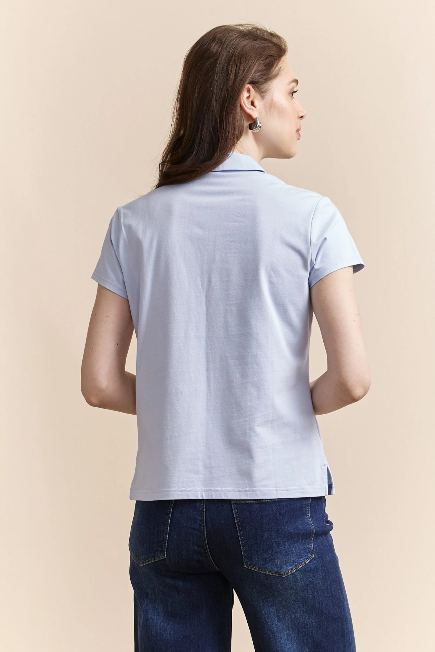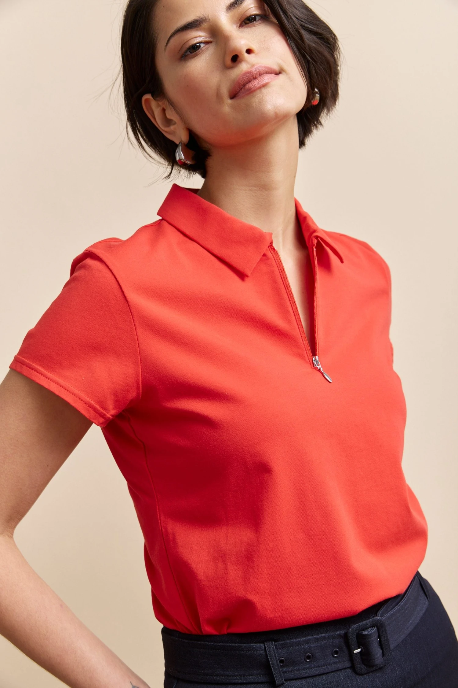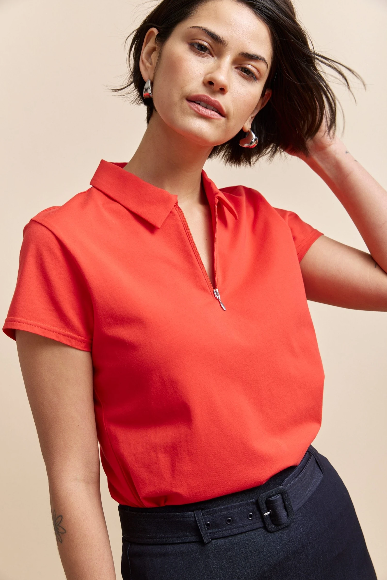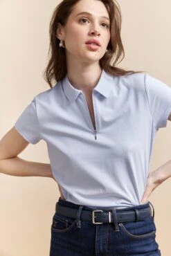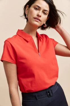 Add a hint of sophistication to your casual wardrobe with this zip-up polo collar T-shirt! Crafted from breathable fabric, it provides all-day comfort and a fit that flatters. Perfect for pairing with your favourite jeans or layered under a blazer.